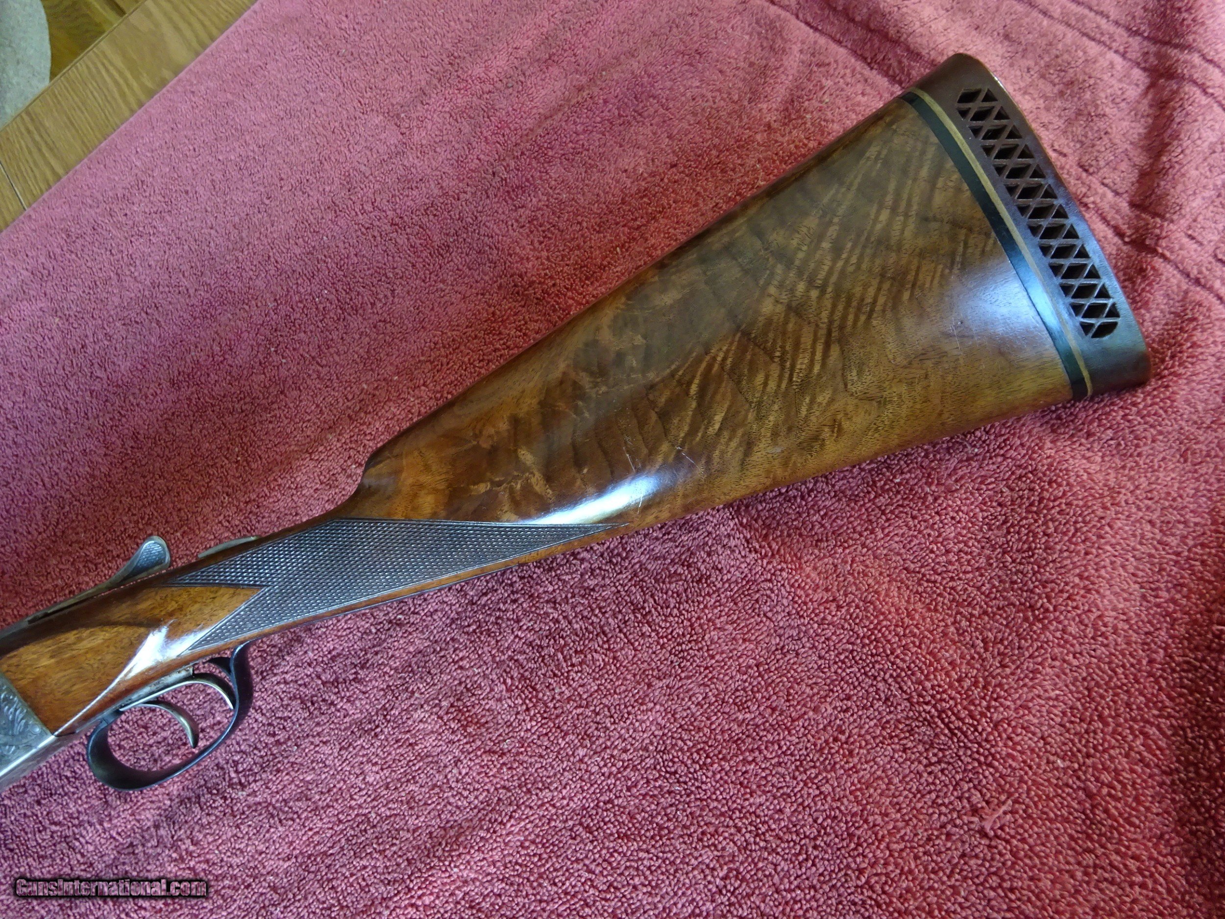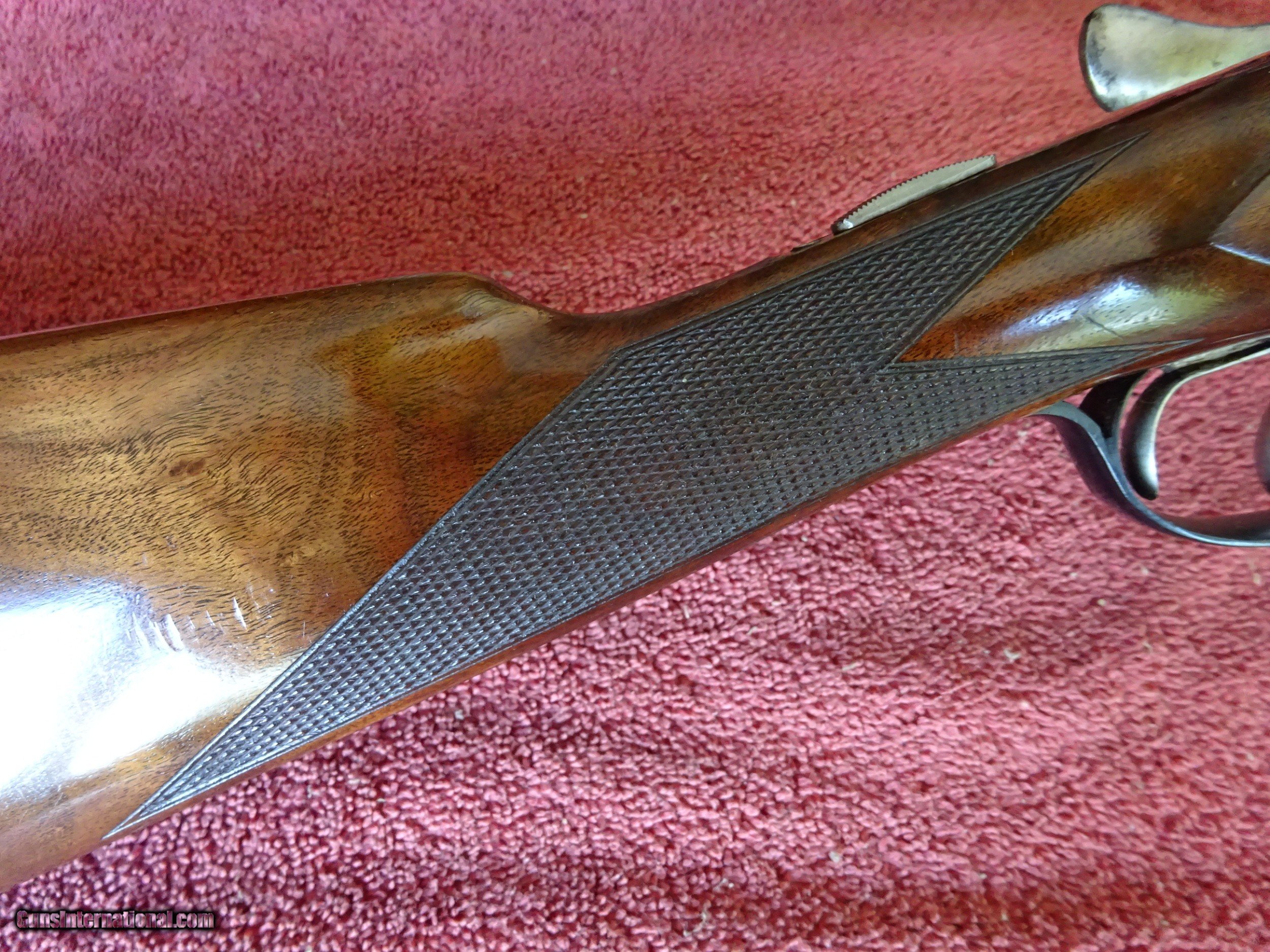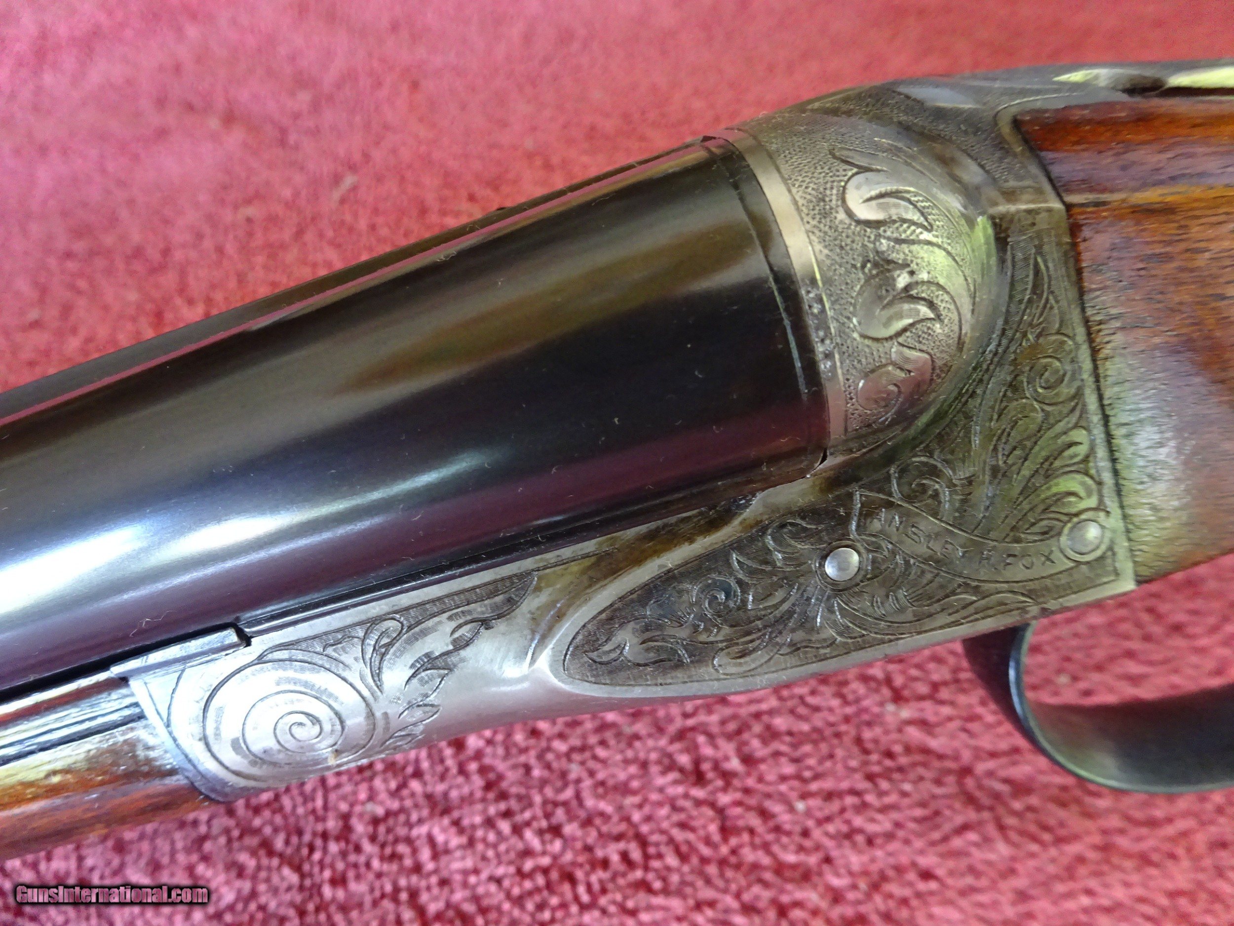 Description: ***INTERESTING HISTORY*** A H FOX A GRADE 16 GAUGE, 26" CHROMOX FLUID COMPRESSED STEEL BARRELS. IMCYL. AND FULL, 2 1/2" CHAMBERS, EXCELLENT BLUE, MIRROR BORES, NUMBER 4 WEIGHT, SINGLE BEAD SIGHT, BARRELS RING BEAUTIFULLY, AUTOMATIC EJECTORS. ATTRACTIVE DEEP CUT LATE STYLE ENGRAVING, GOOD CASE COLOR IN THE PROTECTED AREAS. EXCELLENT ENGRAVED SCREWS, TOP LEVER TO THE EXTREME RIGHT, TIGHT ON FACE. STRAIGHT GRIP STOCK, SPLINTER FOREARM, HIGHLY FIGURED WOOD, EXCELLENT CHECKERING AND FINISH. DIMENSIONS - 1 1/2" X 2 1/2" X 14 3/8", 6 POUNDS EVEN. AT ONE TIME THE GUN HAD SOME TYPE OF REAR SIGHT. THERE ARE TWO PLUG SCREWS AT THE REAR OF THE RIB. THE PAD HAS HARDENED WITH AGE AND SHOULD BE REPLACED WITH A JOSTAM OR SILVERS TYPE. THE TRIGGERGUARD IS FACTORY ENGRAVED "HENRY C. BUTCHER". INTERESTING HISTORY - MR. BUTCHER WAS WITH CBS NEWS IN THE 1930s AND IS CREDITED WITH COINING THE PHRASE "FIRESIDE CHAT" FOR FDR's WEEKLY RADIO TALK TO THE NATION. HE ALSO WAS AN ADVISOR TO EISENHOWER DURING WWII. THIS IS A WONDERFUL HANDLING LITTLE FOX MADE IN 1917 WITH AN INTERESTING HISTORY. $5500.00 + $60.00 Insured shipping to an FFL address. Layaway is available. See all Pats gun listings on this site! We also have hundreds of pieces of ORIGINAL gun company advertising & memorabilia available for sale on our site SPORTINGCOLLECTIBLES. We have no reprints or reproductions. Email for more information. SOLD Curio/Relic: Yes |