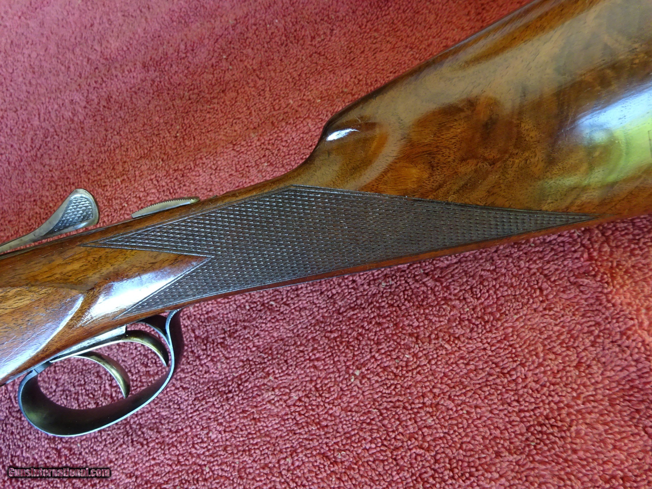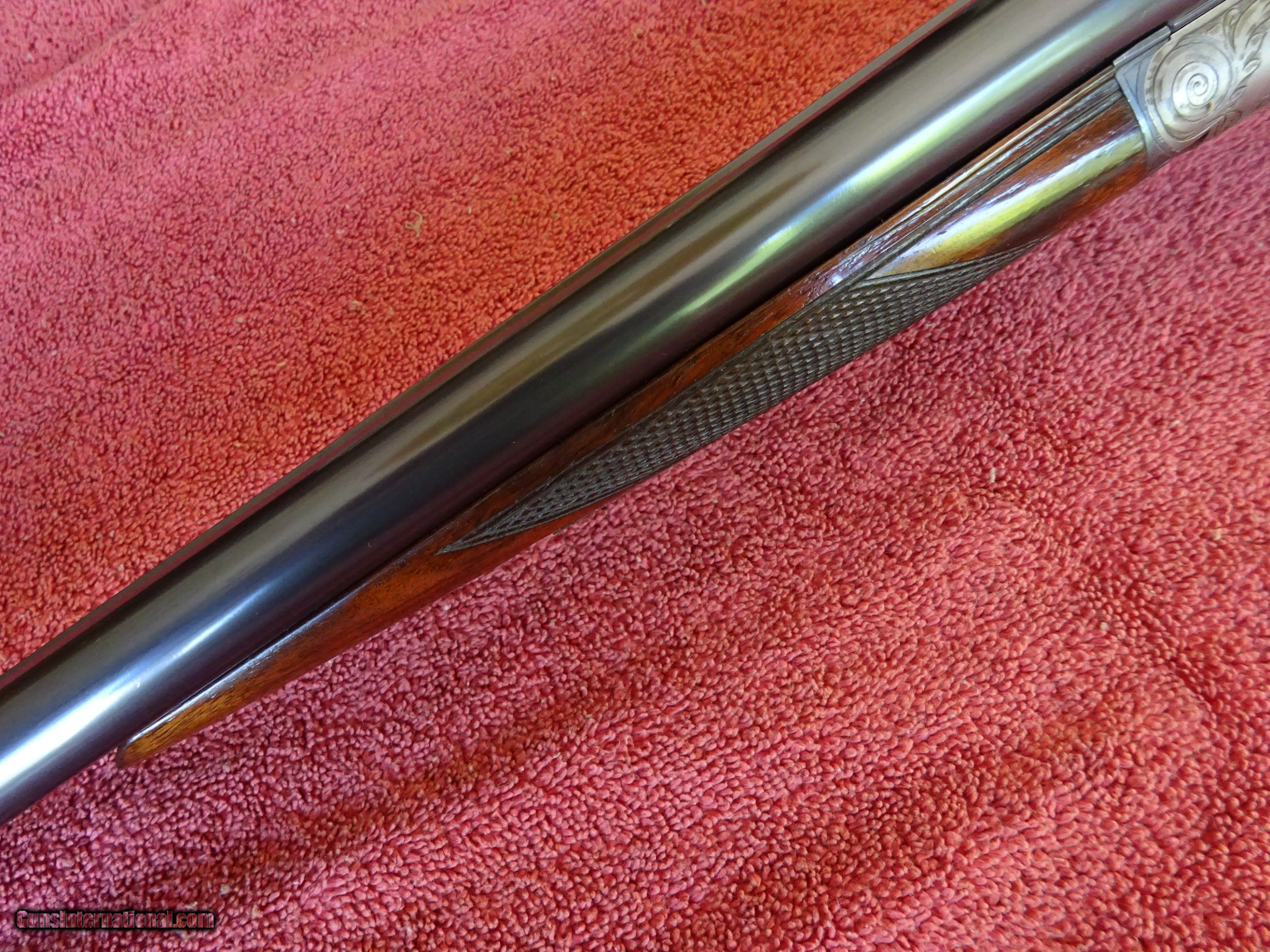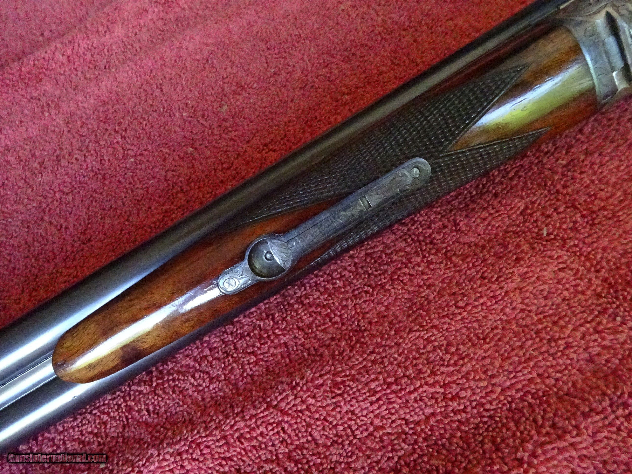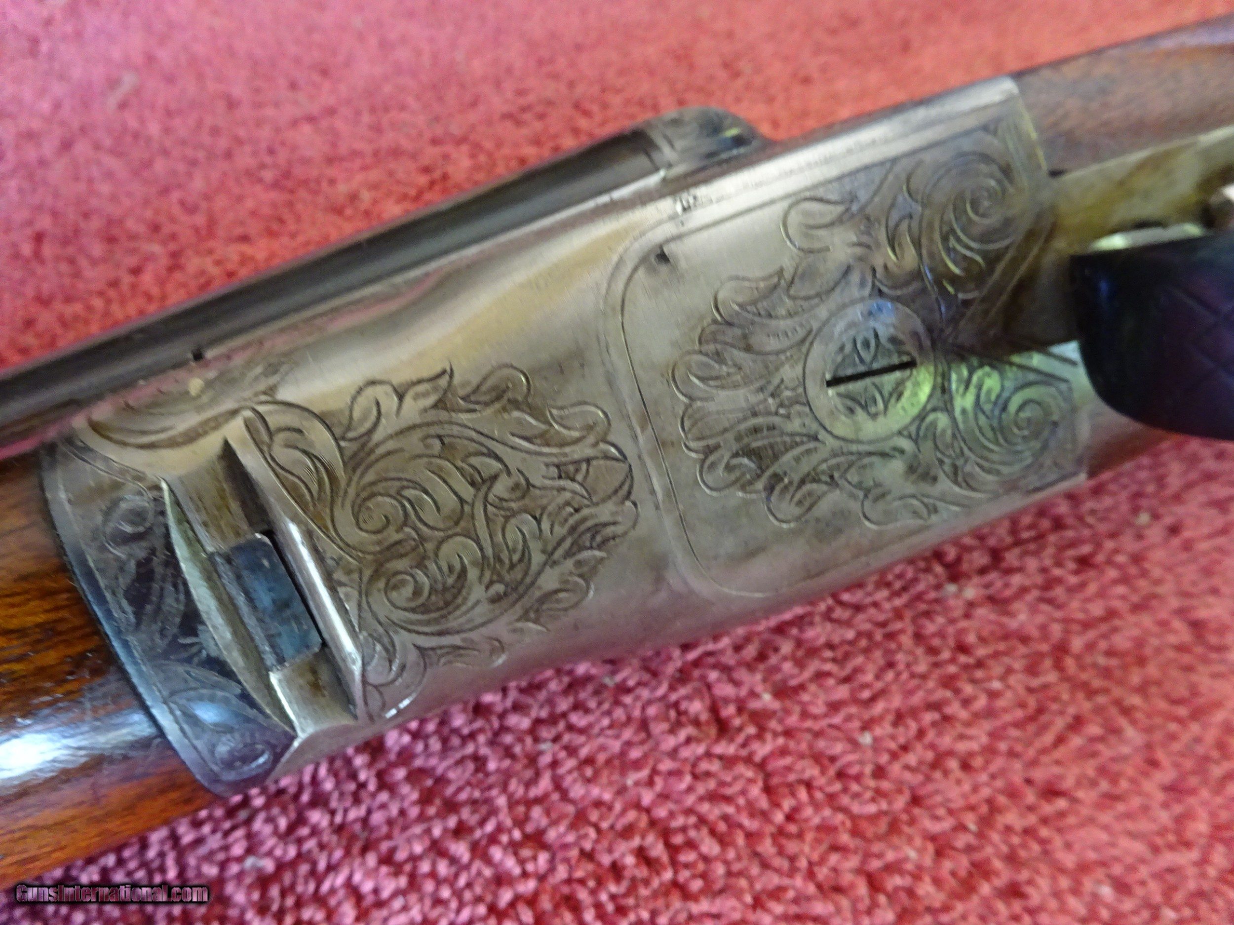 Description: ***INTERESTING HISTORY*** A H FOX A GRADE 16 GAUGE, 26" CHROMOX FLUID COMPRESSED STEEL BARRELS. IMCYL. AND FULL, 2 1/2" CHAMBERS, EXCELLENT BLUE, MIRROR BORES, NUMBER 4 WEIGHT, SINGLE BEAD SIGHT, BARRELS RING BEAUTIFULLY, AUTOMATIC EJECTORS. ATTRACTIVE DEEP CUT LATE STYLE ENGRAVING, GOOD CASE COLOR IN THE PROTECTED AREAS. EXCELLENT ENGRAVED SCREWS, TOP LEVER TO THE EXTREME RIGHT, TIGHT ON FACE. STRAIGHT GRIP STOCK, SPLINTER FOREARM, HIGHLY FIGURED WOOD, EXCELLENT CHECKERING AND FINISH. DIMENSIONS - 1 1/2" X 2 1/2" X 14 3/8", 6 POUNDS EVEN. AT ONE TIME THE GUN HAD SOME TYPE OF REAR SIGHT. THERE ARE TWO PLUG SCREWS AT THE REAR OF THE RIB. THE PAD HAS HARDENED WITH AGE AND SHOULD BE REPLACED WITH A JOSTAM OR SILVERS TYPE. THE TRIGGERGUARD IS FACTORY ENGRAVED "HENRY C. BUTCHER". INTERESTING HISTORY - MR. BUTCHER WAS WITH CBS NEWS IN THE 1930s AND IS CREDITED WITH COINING THE PHRASE "FIRESIDE CHAT" FOR FDR's WEEKLY RADIO TALK TO THE NATION. HE ALSO WAS AN ADVISOR TO EISENHOWER DURING WWII. THIS IS A WONDERFUL HANDLING LITTLE FOX MADE IN 1917 WITH AN INTERESTING HISTORY. $5500.00 + $60.00 Insured shipping to an FFL address. Layaway is available. See all Pats gun listings on this site! We also have hundreds of pieces of ORIGINAL gun company advertising & memorabilia available for sale on our site SPORTINGCOLLECTIBLES. We have no reprints or reproductions. Email for more information. SOLD Curio/Relic: Yes |