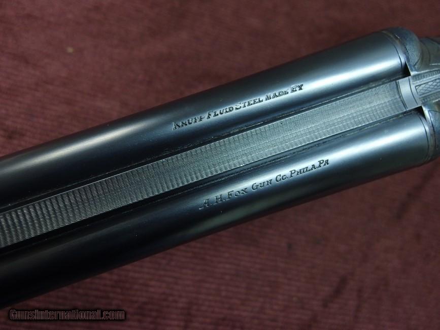 Description: ***SALE PENDING***A.H. Fox A-Grade 20ga., made in Philadelphia, PA; Serial range 201xxx; 28-inch, Imp. Cyl. / Imp. Mod.; Krupp Steel barrels; double triggers; extractor; 2 1/2-inch chambers; professionally restored; 14 7/8-inch LOP wih vintage style Hawkins pad; 2 3/4-in. DAH; 1 3/8-in. DAC; weighs 5 lbs. 11ou.; excellent condition. VISA/MC/DISCOVER/AMEX(add 3%); money orders, checks; $50shp. SOLD Curio/Relic: Yes Manufacturer: A.H. Fox Model: A Grade Gauge Info: 20 |