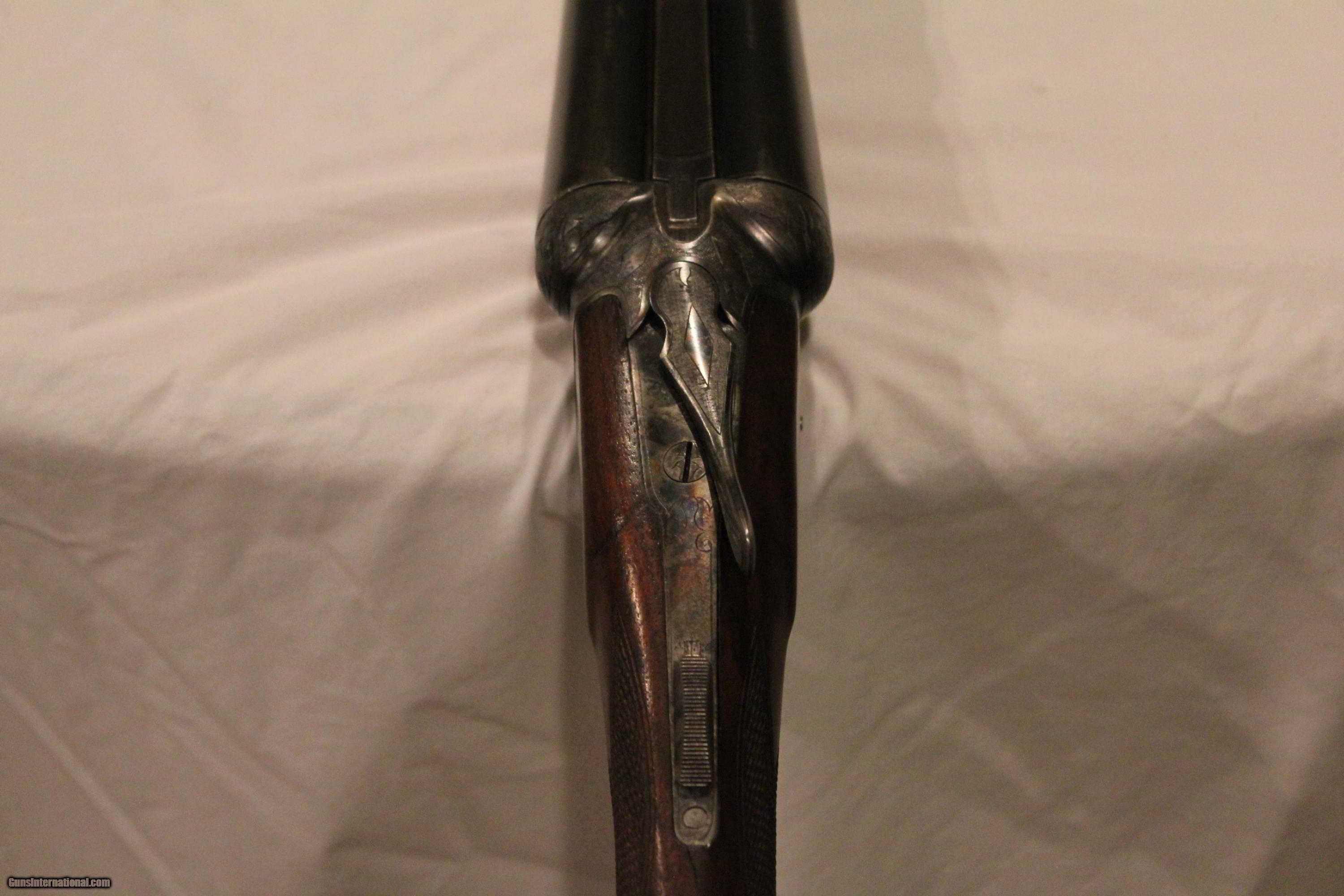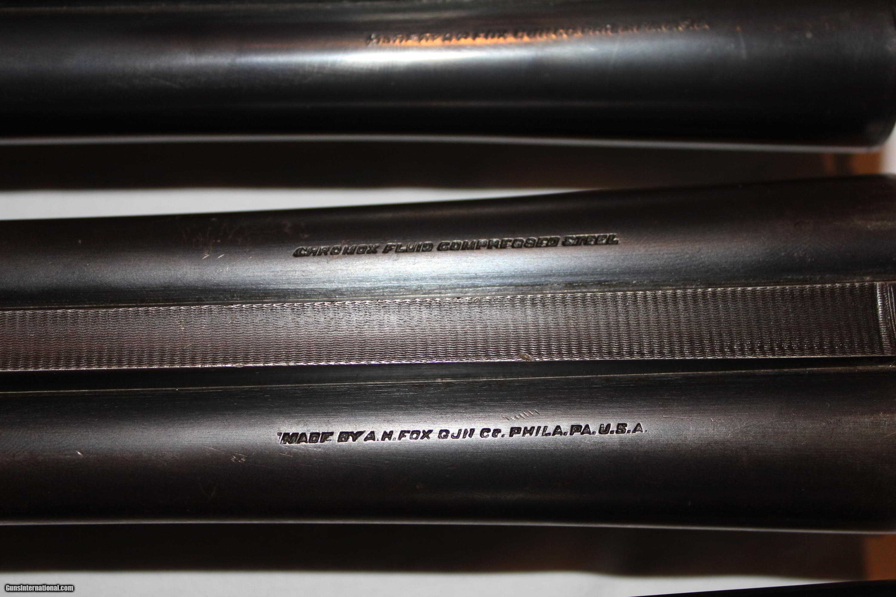 Description: Up for sale is a A.H Fox A grade shotgun non ejector. The serial number puts the date of manufacture to about 1923. This is a factory three barrel set. Based on the way the sets of barrels are numbered I would say that it was originally shipped with one barrel than sent back to have the other two added. All three sets have the same markings and are Chromox steel. All sets have 2 ¾ inch chambers. The barrel that was used the most based on the bluing is the 28 inch long choked improved cylinder and improved cylinder the bluing wear is about 90 % the spot that shows the most is around the forearm where your hands would grip the barrels this barrel is a No. 3 factory weight. The 26inch barrels are choked Cylinder in the right and modified in the left barrel there is no stamping to give a factory barrel weight sometimes they where polished off at the factory. Based on the actual weight that is 3 pounds 13 ounces based on factory records this would be a No. 1 the bluing is about 97% . The third set measures 29.5 inches is choked full and full there is no factory weight number stamped. Based on the actual weight that is 4 pounds 5 ounces this would also be a No.1 the bluing is about 97%. Each set of barrels has it’s own forearms that are numbered to the barrels. The wood is in great shape the L.O.P from the front trigger to the Hawkens pad is 14.5 inches the checkering is crisp there is some handling marks on the stock but nothing major. Each of the three forearms are free of any dings or dents and the checkering is crisp. Case colors on the metal work are strong on all the surfaces the receiver irons even have great case color the engraving is sharp this is a superb example of a very rare gun. There is some unique engraving on the water table perhaps the original owners name when it was sent in for service or the extra barrels. On the 29.5 inch barrels the bead is broke off I have a replacement bead made out of Mammoth ivory that will go with the gun and on the 26 inch barrel the mead bead was filed down why I do not know but I also have one to replace it . The replacement mid bead is made out of Ivory color plastic. The gun was went over by Glen Baker of Woodcock Hill in Benton PA, it was completely disassembled cleaned and oiled. There was a problem with one triggers when pulled it would not fire so he replaced any parts that where necessary and this fine double has a clean bill of health. This service was not cheap I wanted to get things done the right way. All of the info on choke and chamber measurements where taken with a Galazan choke and chamber gage and the barrel weight info was taken from the book written by McIntosh. This is a chance to own a rare gun and would make a great addition to your Fox collection. The buyer pays insurance and shipping costs. Feel free to email me with any questions.Must ship to FFL I will also ship to a valid C/R license holder. Thanks for looking. SOLD Curio/Relic: Yes Manufacturer: A H FOX Model: A Bore: 12 ga Chambers: 2 3/4 Ejectors: no Condition: excellent Metal Condition: excellent Wood Condition: excellent Bore Condition: bright and shiny |