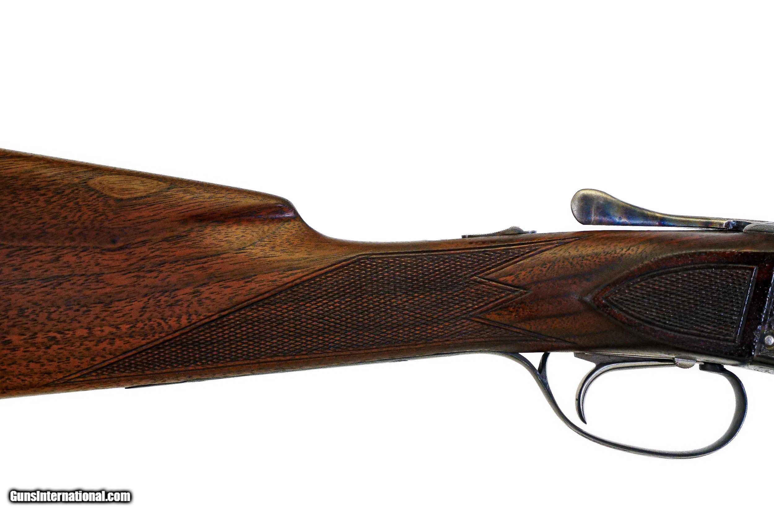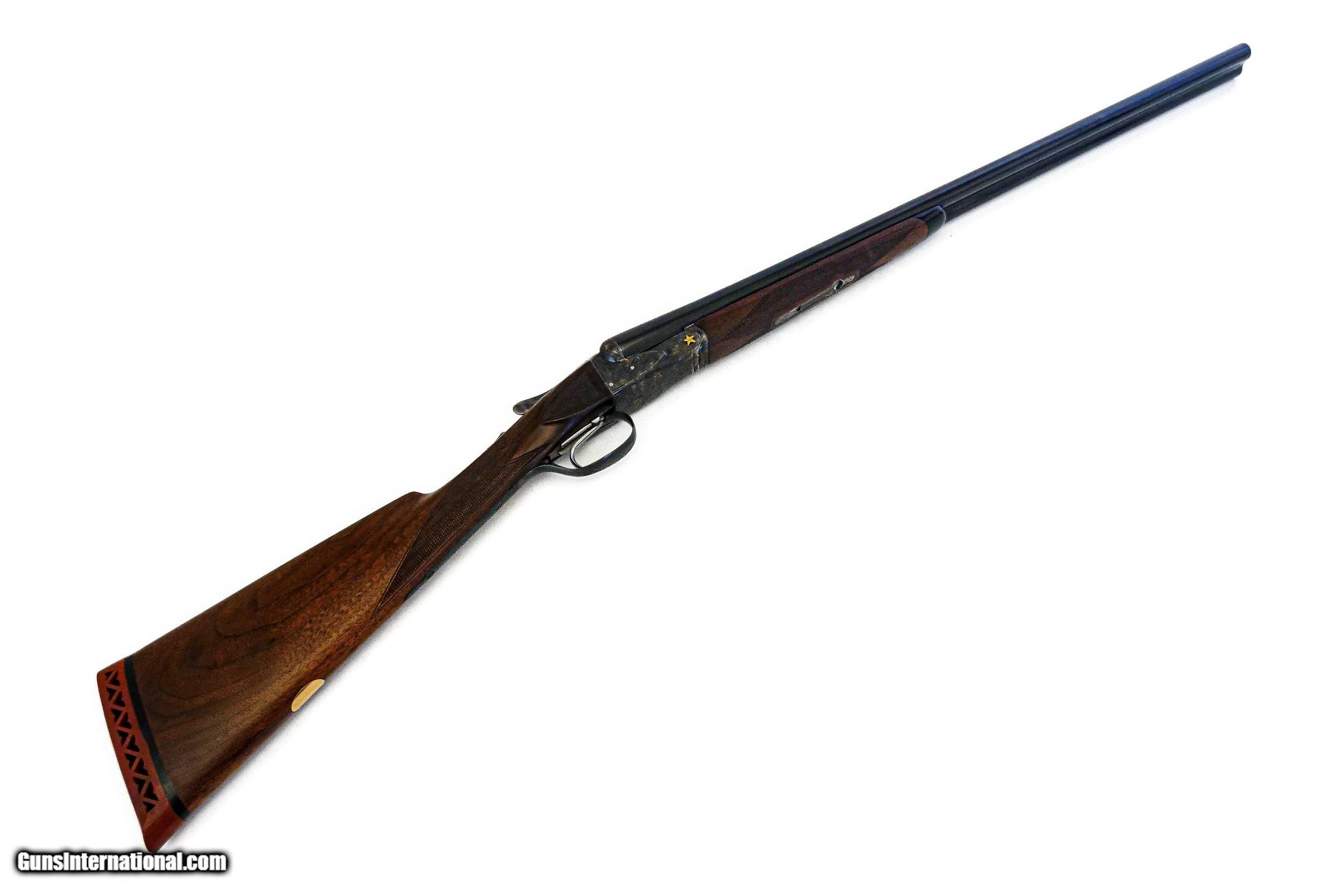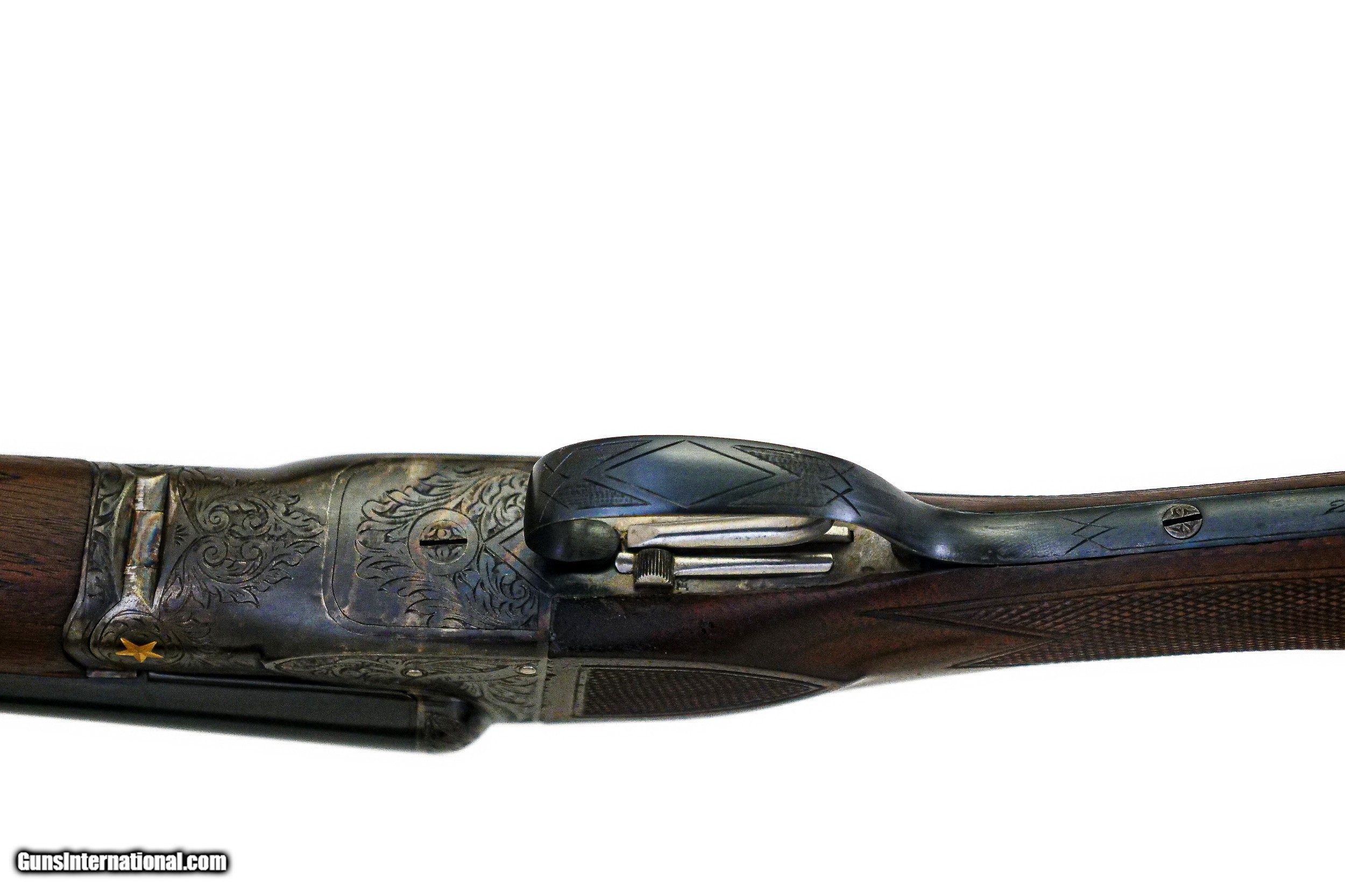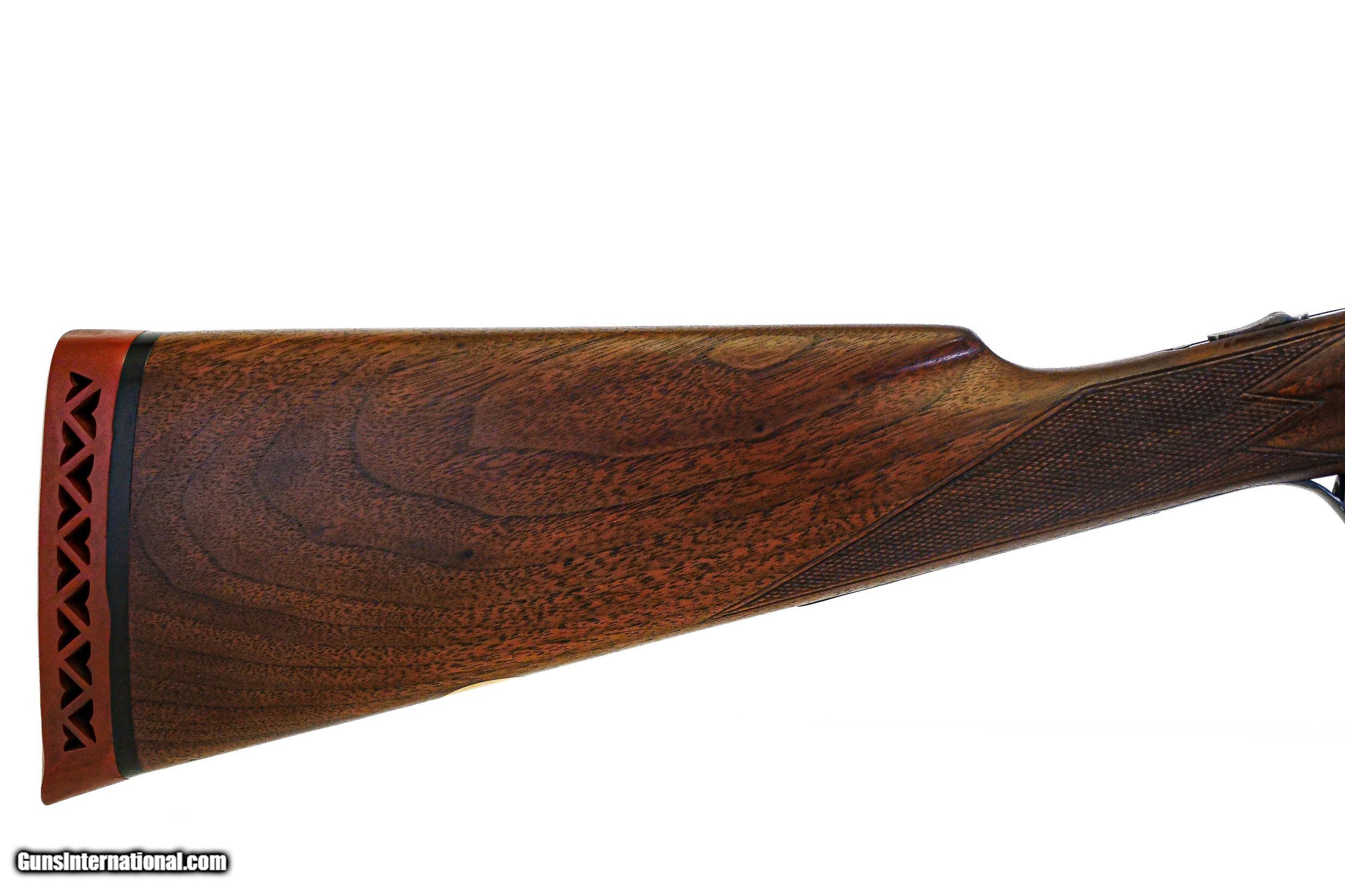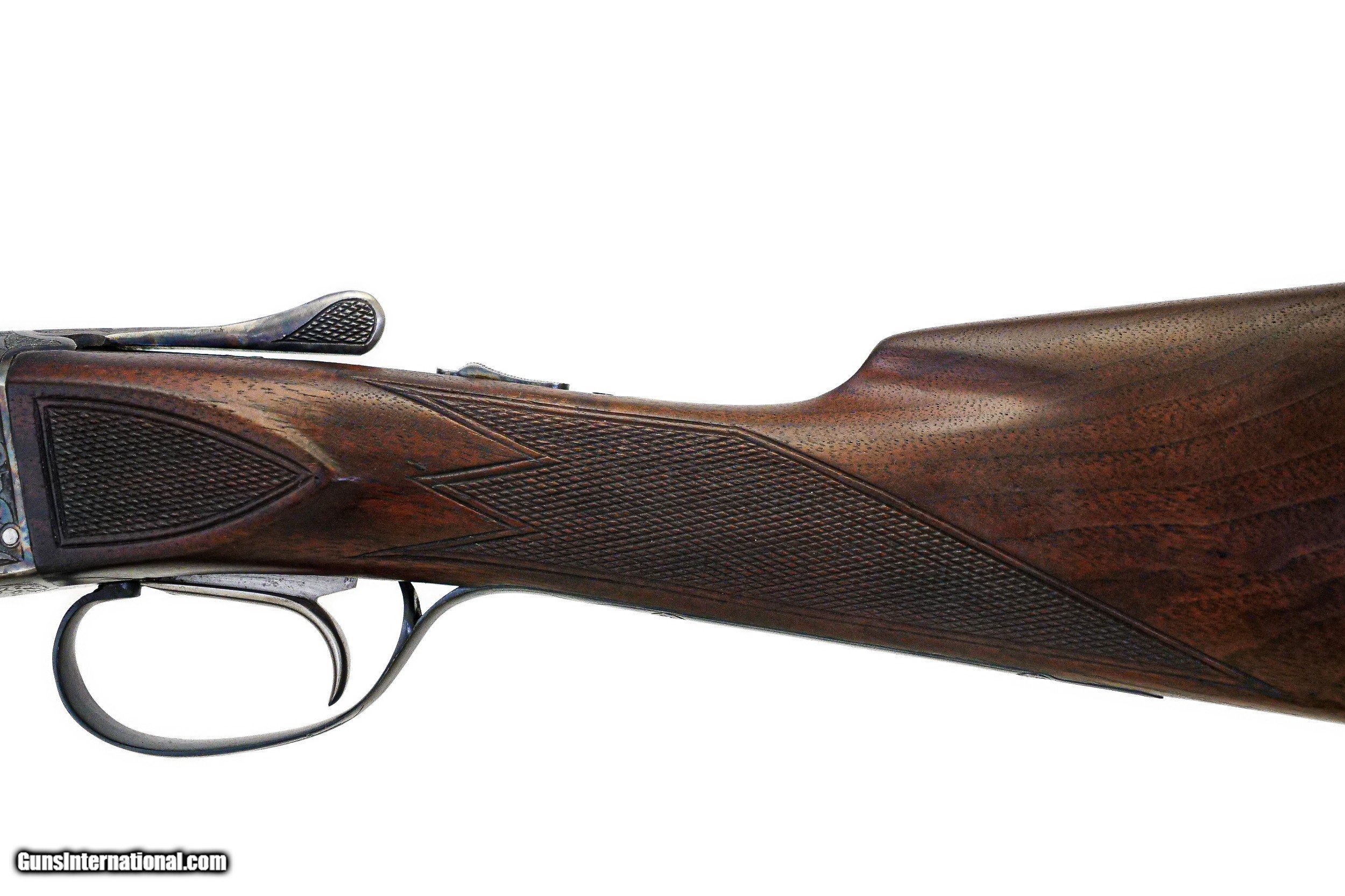 Description: A.H. Fox - AE Grade, 20ga. 26" Barrels Choked CYL/MOD. Barrels choked Cylinder and Modified, this is one of the last guns made, automatic ejectors, straight grip, splinter forend, Hawkins pad, 13 5/8” LOP to factory single selective trigger, 2 ¾” chambers, twin ivory sights, deep late style A grade engraving with factory gold inlayed star on hinge pin, checkered side panels, 100% original, late case coloring, 100% everything everywhere, a very late gun that is in like-new condition. Inv: 51713 6 lbs. 3 oz. $8,750.00 CT Shotgun/Galazan maintains the largest inventory of A.H. Fox Shotguns. We have handled, many of the highest-grade guns that have ever came to market. We are also the sole manufacturer of the A.H. FOX shotguns. Nobody knows A.H Fox shotguns more than we do, We also inspect and check all the guns that we sell and carry a full line of cases and accessories. SOLD |