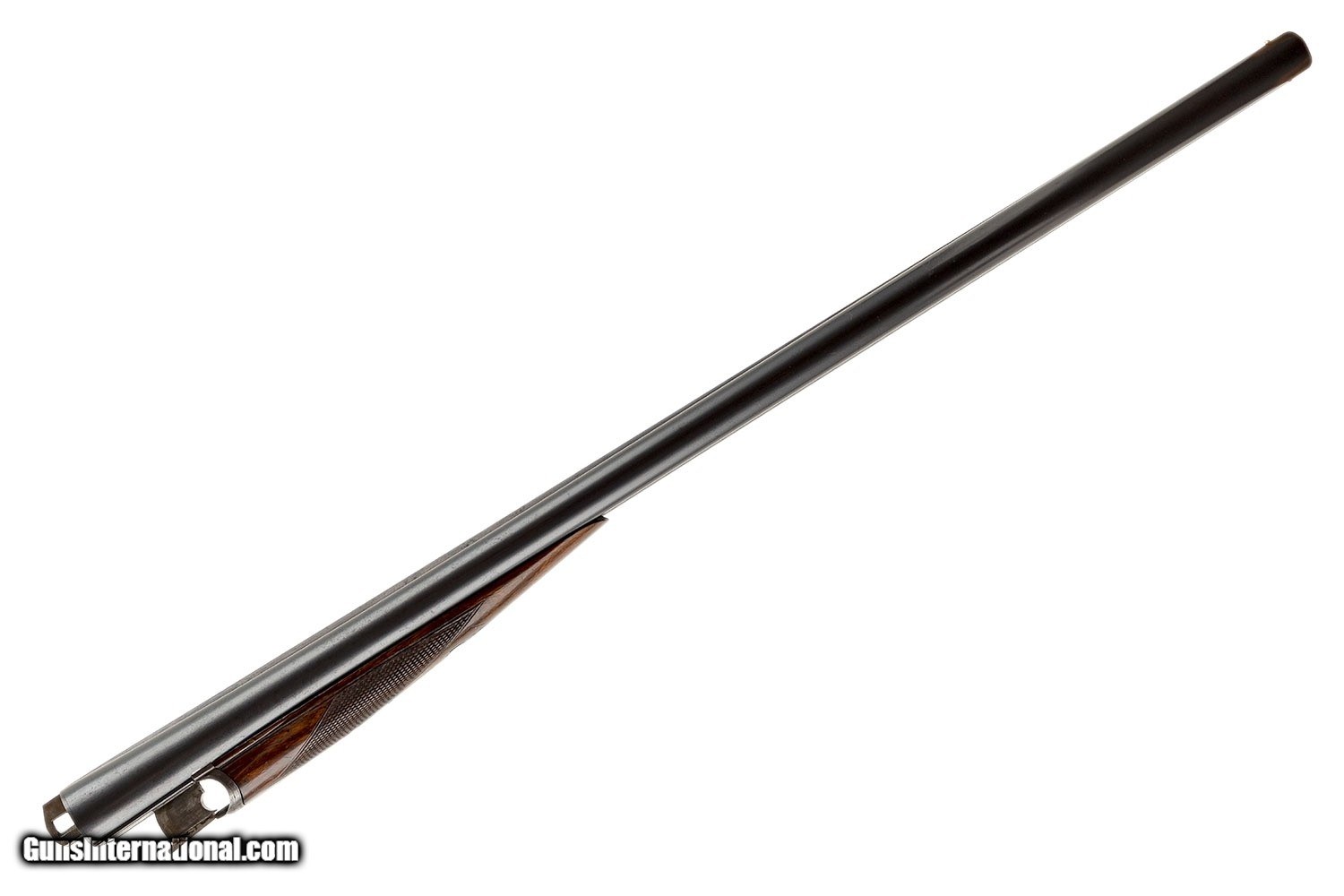 Description: SN# 16XXX 26" SOLID RIB BARRELS (.035 AND .035 CONSTRICTIONS) 2 3/4" CHAMBERS 30" SOLID RIB BARRELS (.002 AND .019 CONSTRICTIONS) 2 3/4" CHAMBERS DOUBLE TRIGGER EJECTORS 2 SPLINTER FOREARMS PISTOL GRIP BUTT PLATE GOOD HONEST ORIGINAL CONDITION WITH SOME HANDLING SMALL REPAIR ON TOP RIGHT NEAR RECEIVER CHIP ON LEFT SIDE OF TOP TANG NO CRACKS THAT HAVE RUN ALL THE WAY THROUGH GUN LOCKS UP TIGHT BORES ARE BRIGHT AND SHINY W/ NO DINGS OR DENTS 6LBS 8 OZ W/ 26" BARRELS 7LBS 6 OZ W/ 30" BARRELS 2 3/4" DAH 1 5/8" DAC 14" LOP SOLD |