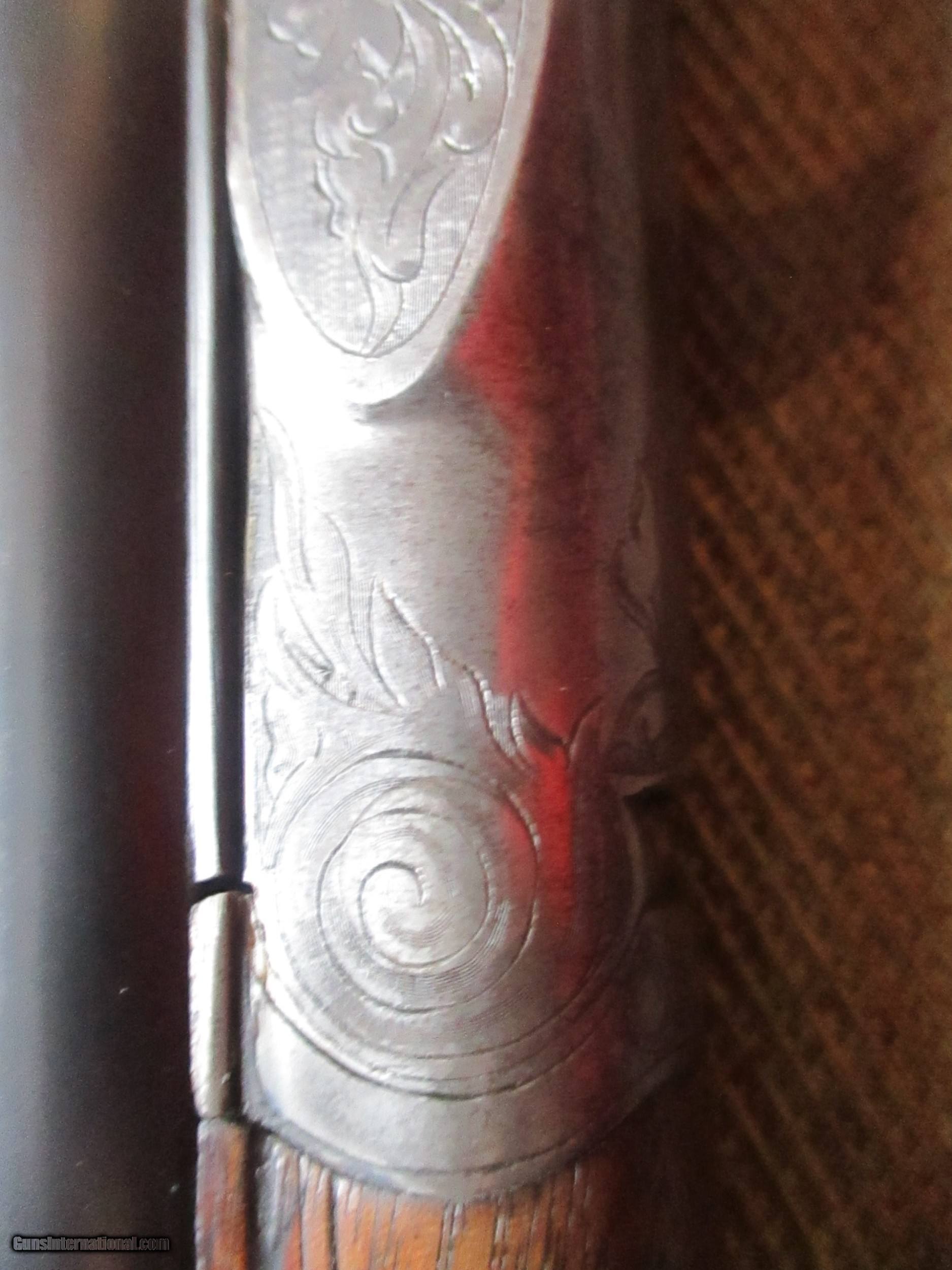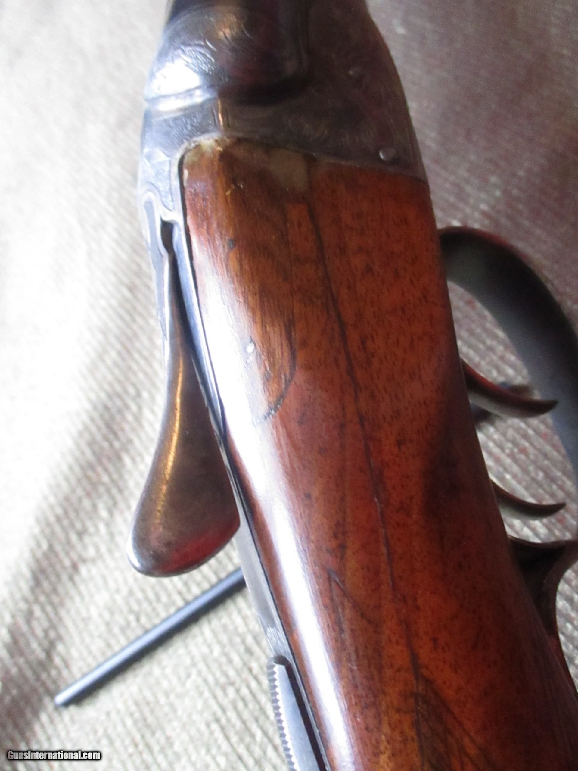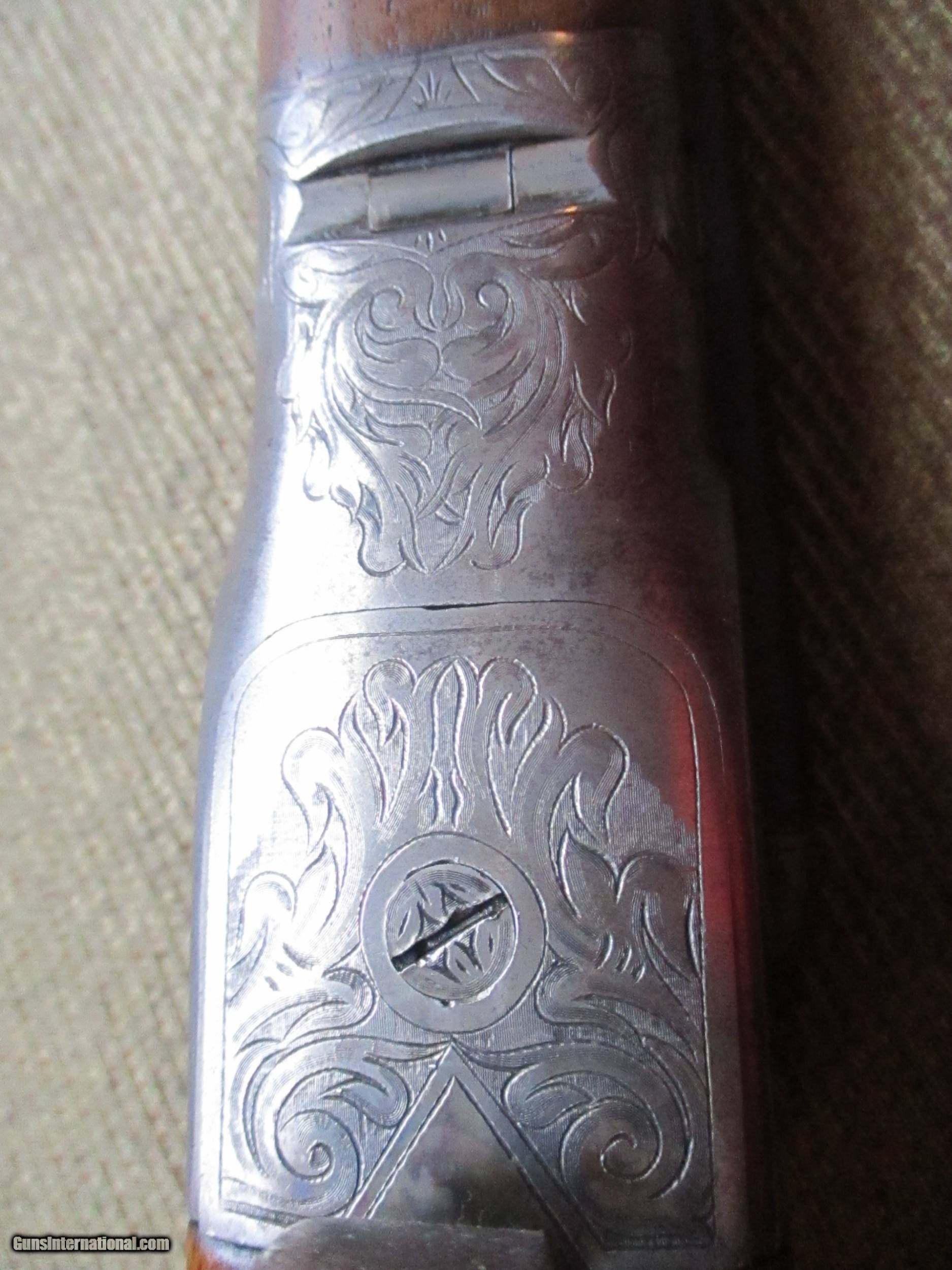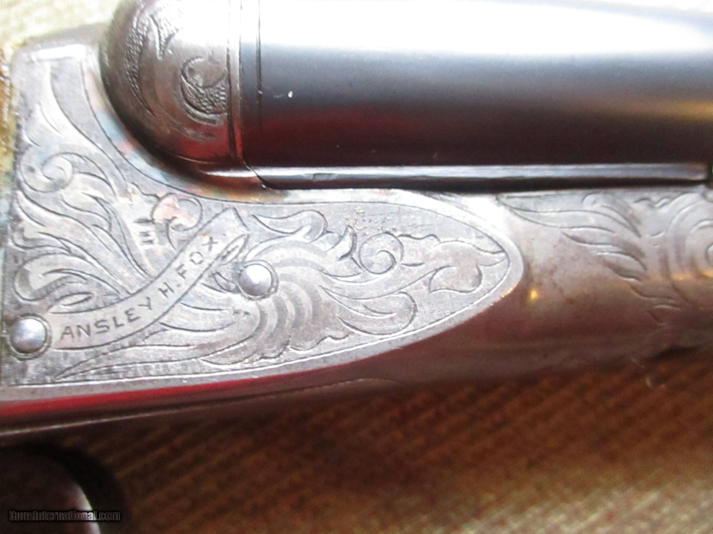 Description: 28" choked F/M, double triggers, extractor,, fully engraved bwith Fox banner, release far right, (shot little), select American checkered walnut, rt. side panel only a fair repair, can be repaired to liking, 98% bblblue, 30% to 35% original CC, tight bas new, so: SOLD |