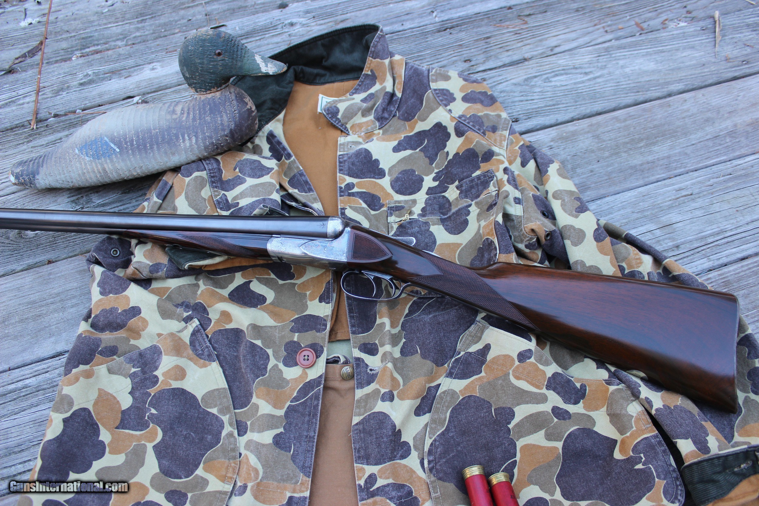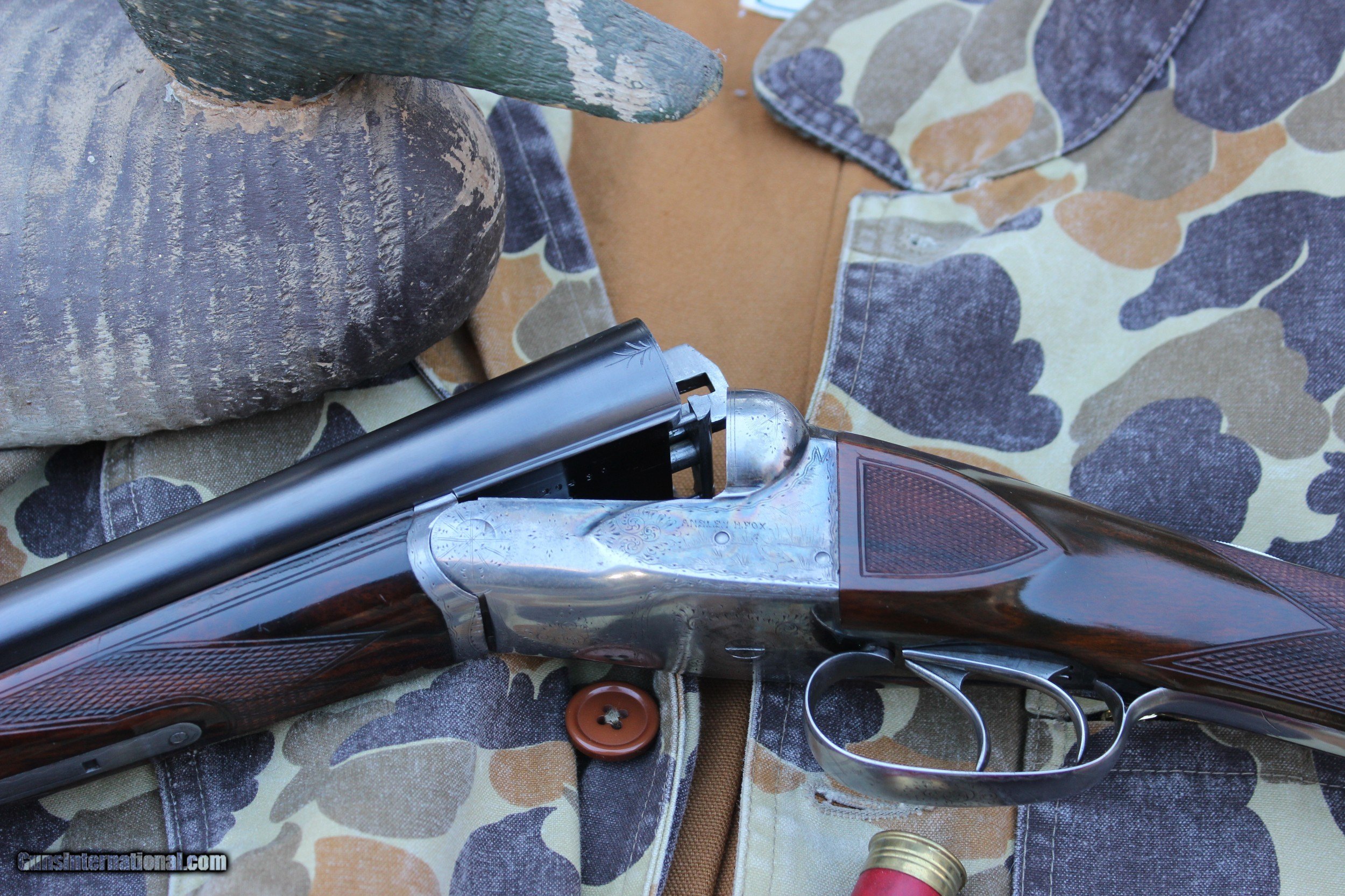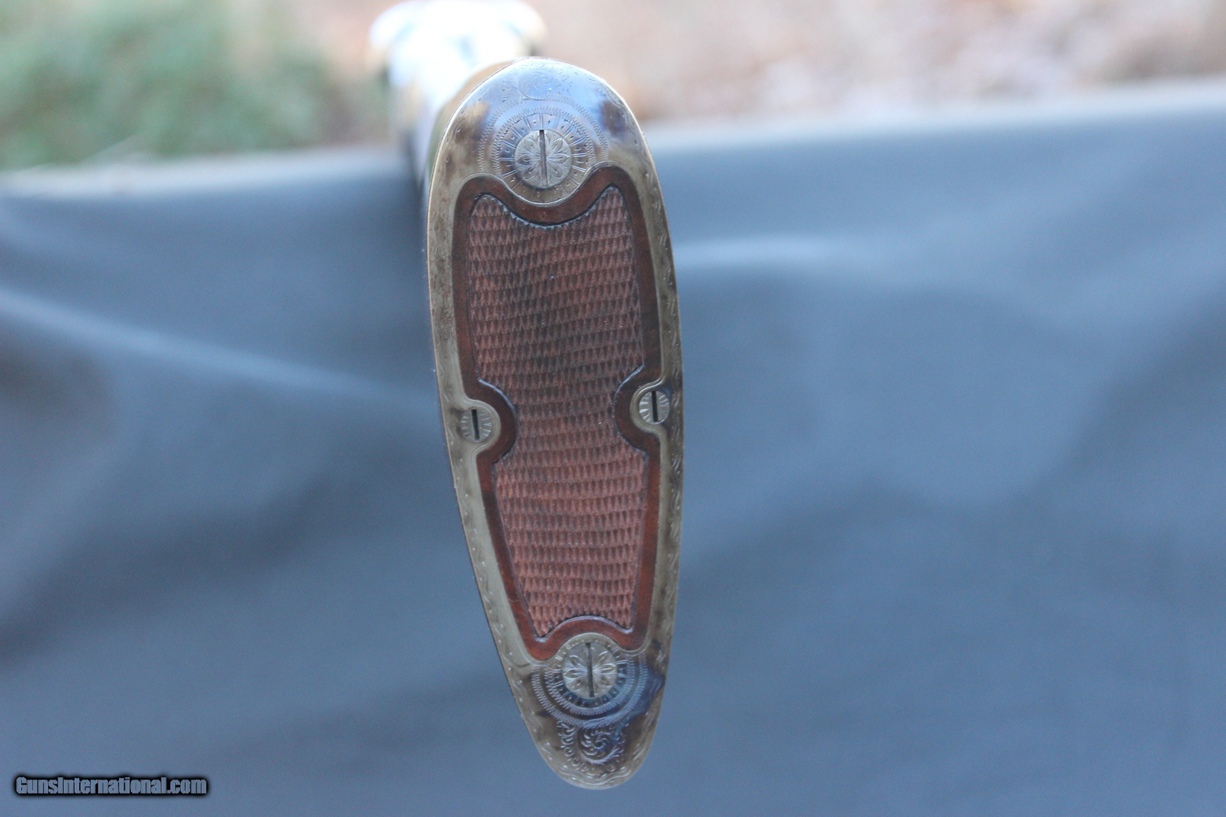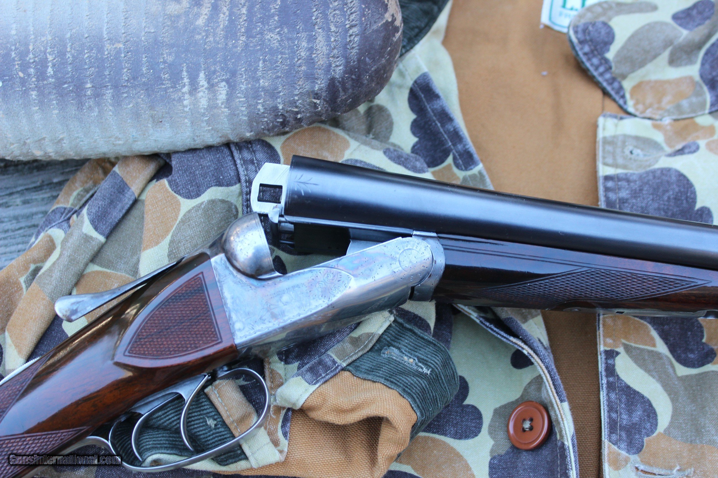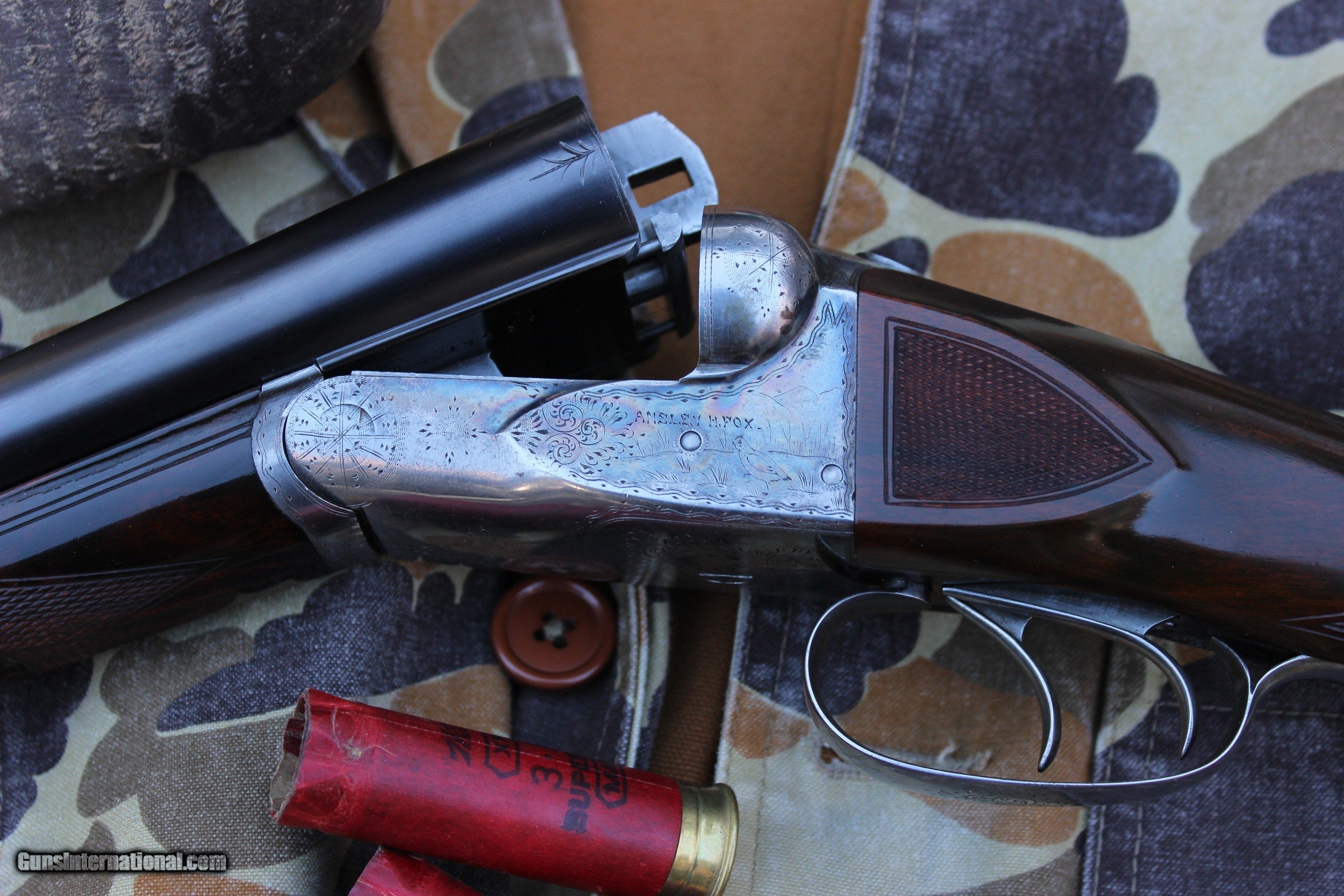 Description: AH. Fox B Grade Fox B Grade S/N 19439 date of mfg. 1912. Fine scroll work with Quail & Woodcock engraving scene. I believe this to be the last of several B grade motifs of the first-generation engraving styles. 30” Krupp steel extractor Barrels with Ivory beads. Choked Right, IC. Left IMP. Mod. Straight grip, Splinter fore end. Chambers are 2 ¾”. The gun was restocked in the early 1990’s with a very nice piece of French walnut as the original. Albeit with modern and shoot-able dimensions. Added was a very tasteful Skeleton butt plate. For the collector folks the original straight grip stock with the original replacement pad is included. Stock Dimensions: 1 3/8” DAC, X 2 ¼” DAH, X 14 7/8” LOP. Gun weight is 7lbs even. This gun is balanced perfectly. It swings and handles like a London Best grade. It is from an earlier A.H Fox era where the fit and finish is VERY evident compared to the later models. This is a desirable collectable Fox from a production era where the quality is unmatched in the later guns. This is the Hallmark of the Ansley Fox years. Note much case color is still left. Also note the gracefully cut trigger spoons, and the doubled rolled trigger guard edges. Also note the delicately cut and formed top lever. These appealing features did not survive in later production guns. The buyer assumes shipping & insurance fees. 3-day standard inspection period. Offers considered. $5,695.00 SOLD Curio/Relic: Yes Shotgun Gauge: 12 Gauge Manufacturer: A.H. Fox Model: B Grade Serial Number: 19439 Barrel Length: 30 Chambers: 2 3/4 Ejectors: none Condition: 100% Metal Condition: 100% Wood Condition: 100% Bore Condition: 100% Barrels: Krupp Steel Action: Top Action Break Triggers: double Stock Comb: 1 3/8 Stock Heel: 2 1/4 Stock Cast: None Butt Pad: Skeleton type LOP: 14 7/8 Rib: Matted Finish: Oli Weight: 7# even Sights: Ivory bead Manufacture Date: 1912 Choke Left: IMP. MOD Choke Right: ICYL. Engraving: Fox B grade Extras: None Case: None |