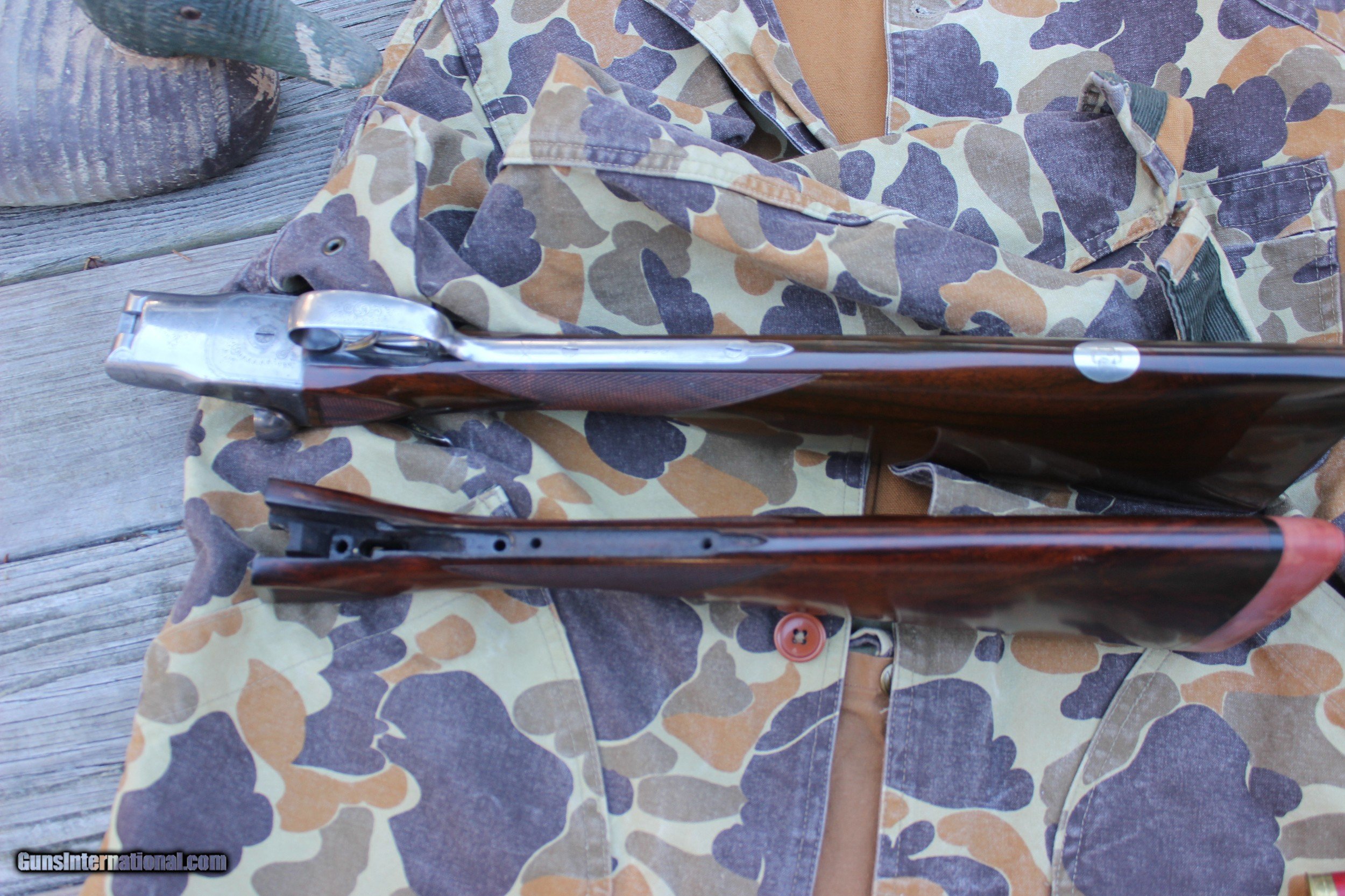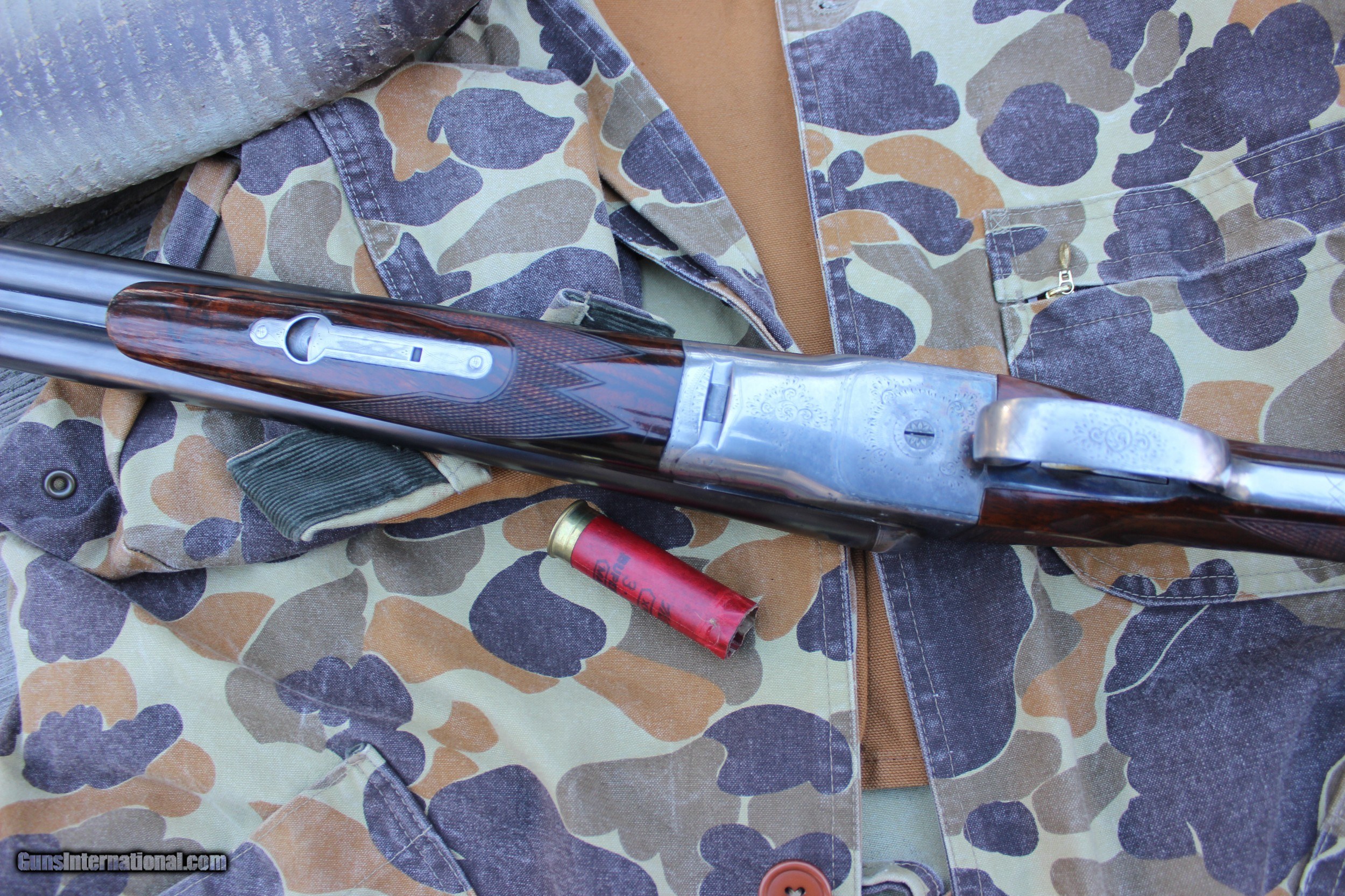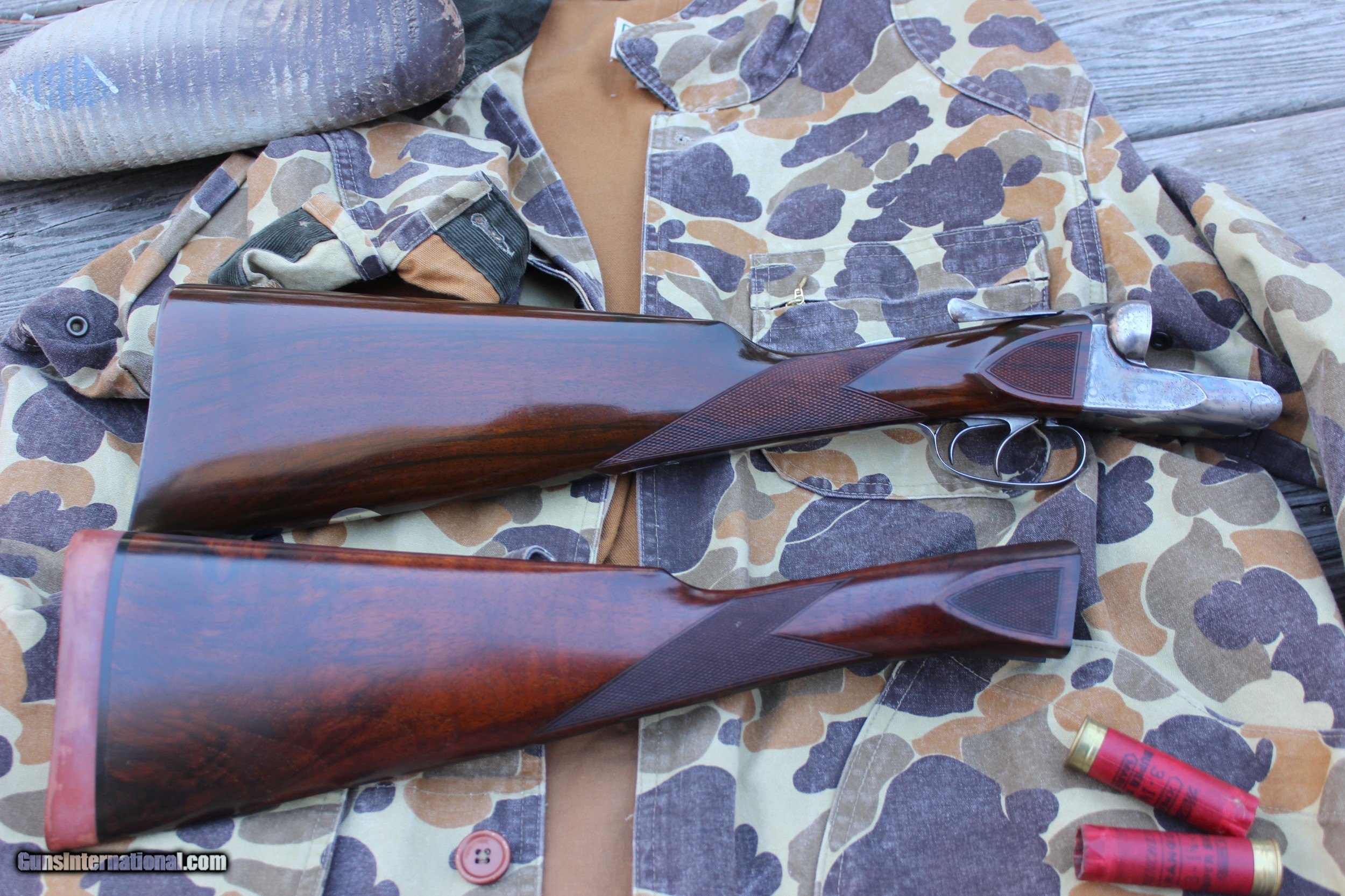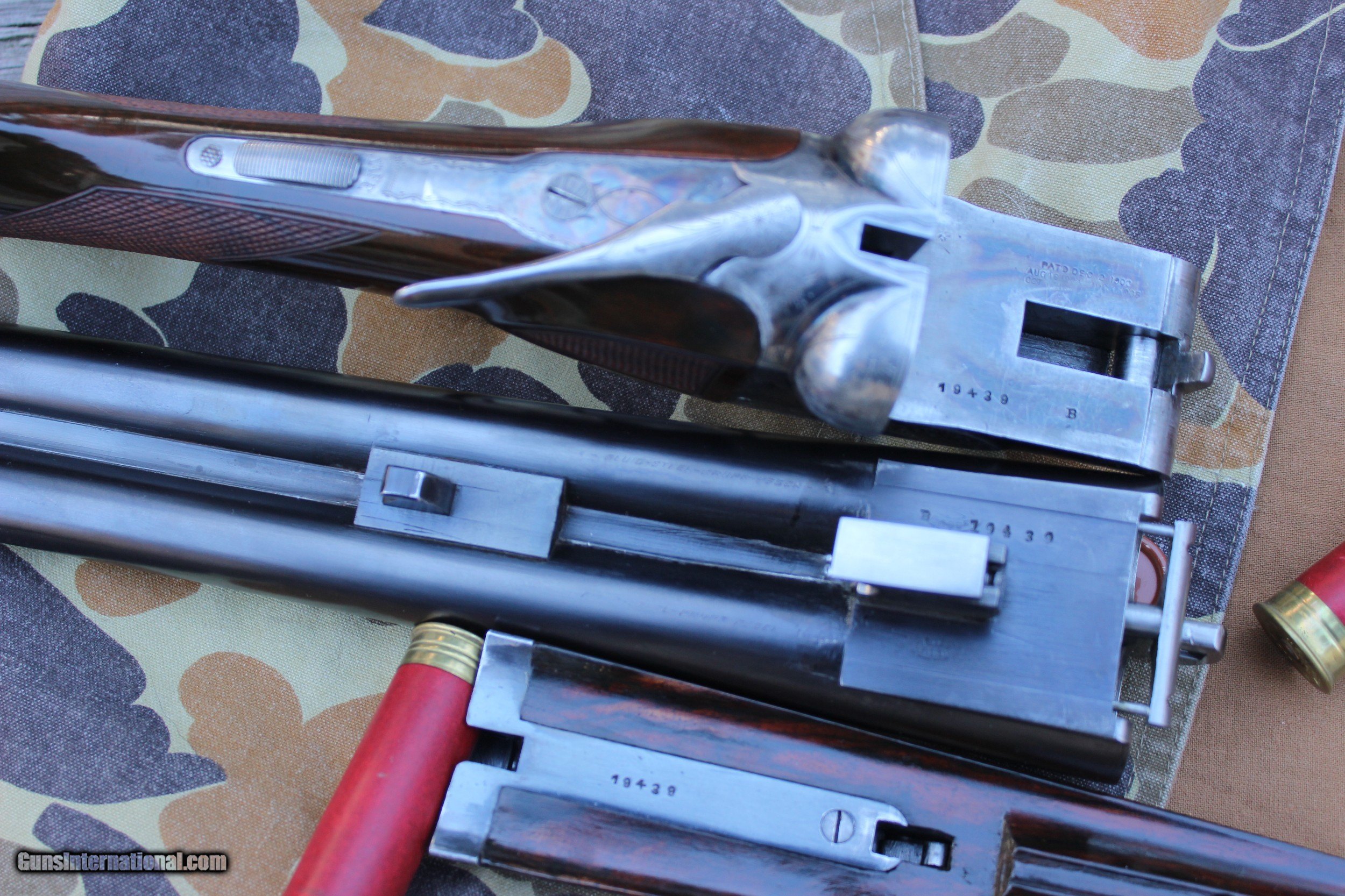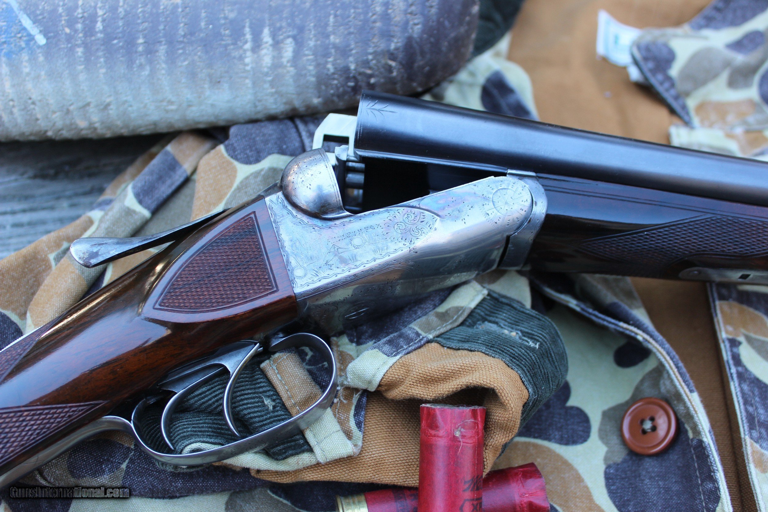 Description: AH. Fox B Grade Fox B Grade S/N 19439 date of mfg. 1912. Fine scroll work with Quail & Woodcock engraving scene. I believe this to be the last of several B grade motifs of the first-generation engraving styles. 30” Krupp steel extractor Barrels with Ivory beads. Choked Right, IC. Left IMP. Mod. Straight grip, Splinter fore end. Chambers are 2 ¾”. The gun was restocked in the early 1990’s with a very nice piece of French walnut as the original. Albeit with modern and shoot-able dimensions. Added was a very tasteful Skeleton butt plate. For the collector folks the original straight grip stock with the original replacement pad is included. Stock Dimensions: 1 3/8” DAC, X 2 ¼” DAH, X 14 7/8” LOP. Gun weight is 7lbs even. This gun is balanced perfectly. It swings and handles like a London Best grade. It is from an earlier A.H Fox era where the fit and finish is VERY evident compared to the later models. This is a desirable collectable Fox from a production era where the quality is unmatched in the later guns. This is the Hallmark of the Ansley Fox years. Note much case color is still left. Also note the gracefully cut trigger spoons, and the doubled rolled trigger guard edges. Also note the delicately cut and formed top lever. These appealing features did not survive in later production guns. The buyer assumes shipping & insurance fees. 3-day standard inspection period. Offers considered. $5,695.00 SOLD Curio/Relic: Yes Shotgun Gauge: 12 Gauge Manufacturer: A.H. Fox Model: B Grade Serial Number: 19439 Barrel Length: 30 Chambers: 2 3/4 Ejectors: none Condition: 100% Metal Condition: 100% Wood Condition: 100% Bore Condition: 100% Barrels: Krupp Steel Action: Top Action Break Triggers: double Stock Comb: 1 3/8 Stock Heel: 2 1/4 Stock Cast: None Butt Pad: Skeleton type LOP: 14 7/8 Rib: Matted Finish: Oli Weight: 7# even Sights: Ivory bead Manufacture Date: 1912 Choke Left: IMP. MOD Choke Right: ICYL. Engraving: Fox B grade Extras: None Case: None |