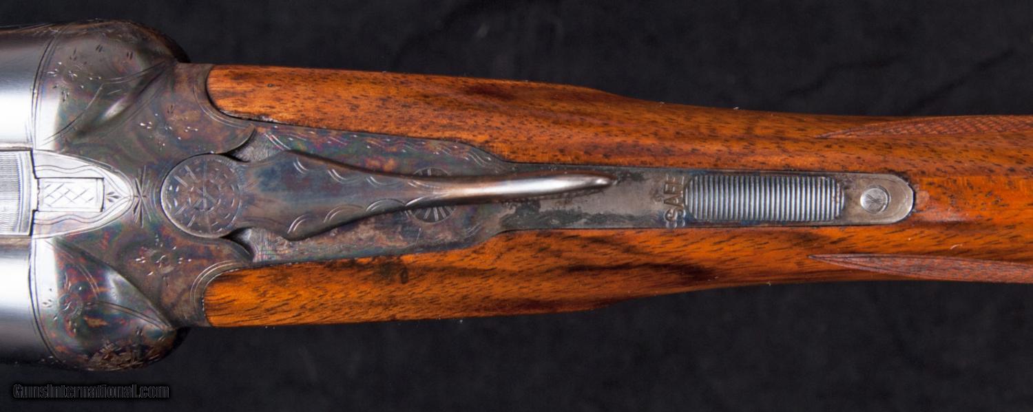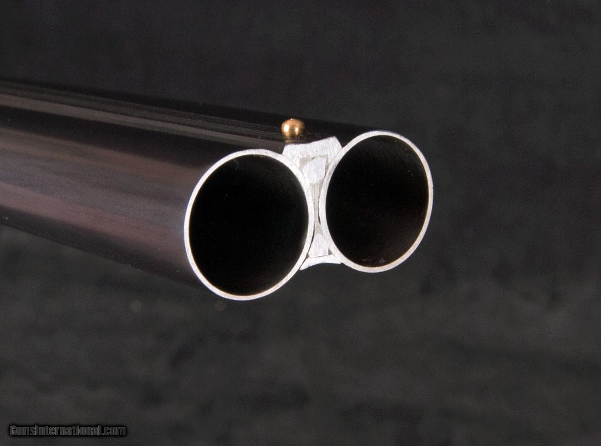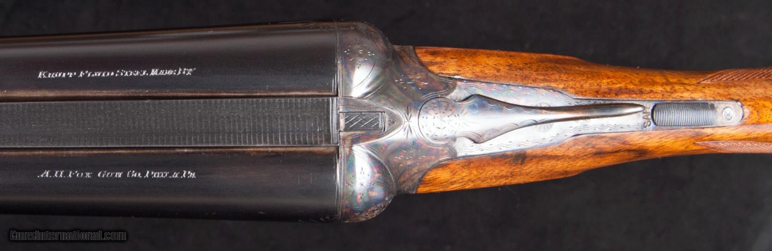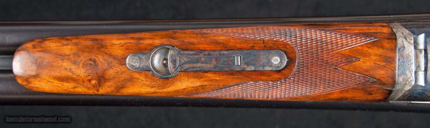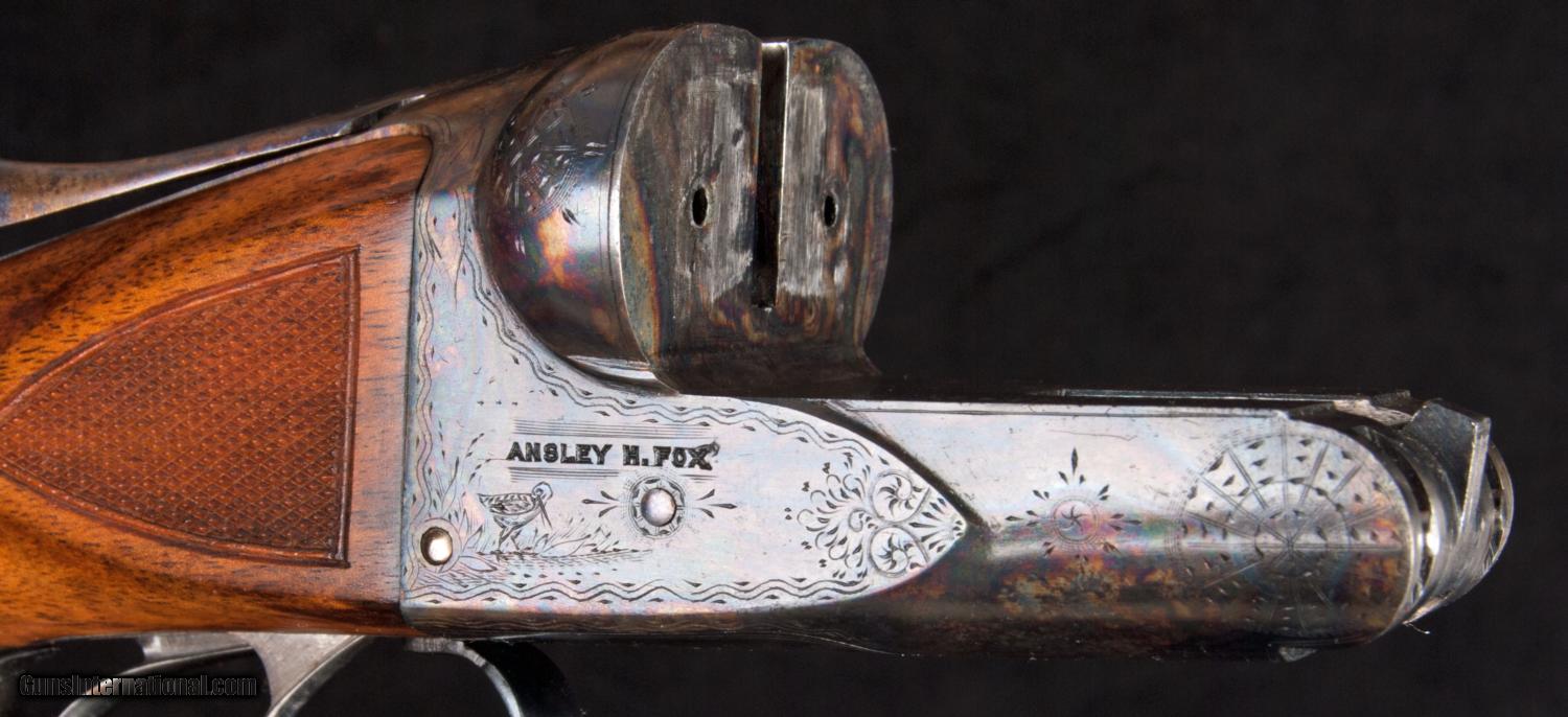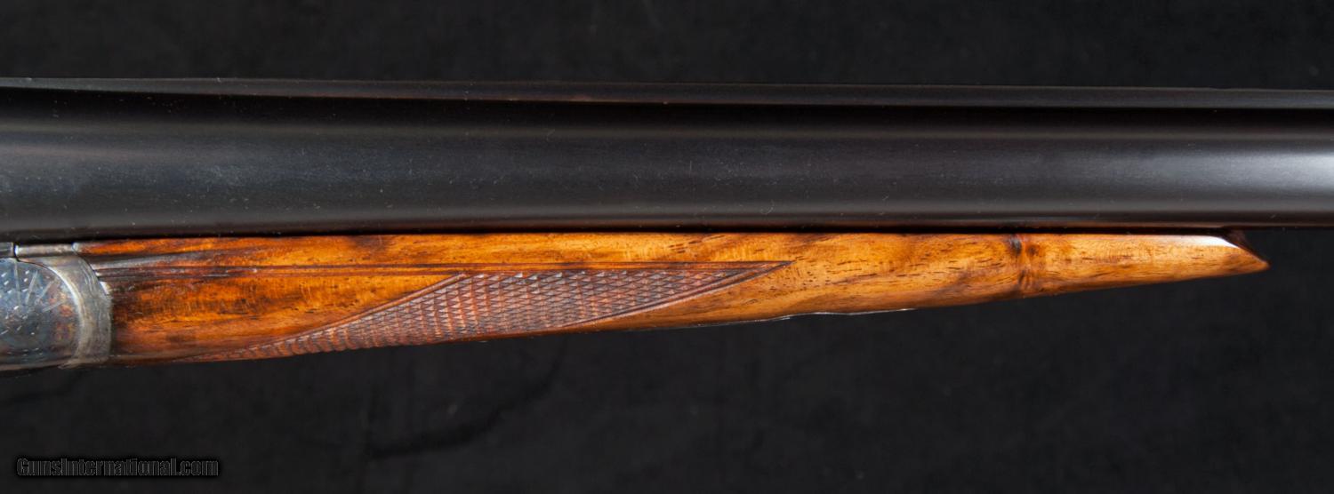 Description: A.H. Fox BE Grade 12 Gauge SxS Shotgun LIGHTWEIGHT, 6LBS 11OZ FIELD GUN! General Specs: Fox, Year 1910, 12 Gauge, 6lbs 11oz, Side by Side Serial Number: 16830 Certain guns just make an impression. Finding a vintage American double in 12 gauge that weighs 6 3/4lbs. is a start. Now, add a correct restoration so the gun looks like it just left the factory and you have one heck of a gorgeous bird and clays gun. This fine Fox, sn16830 built in 1910, is configured just as it left the factory right down to the chokes. There just isn’t any doubt in my mind. The early A.H. Fox guns were the best of them all. The internal parts are highly polished by the factory just as they did on their high grade guns. Ansley was still at the helm and everything had to live up to “The Finest Gun in the World” slogan. The wood is original to the gun and is better than most B Grades you will ever see. We have a copy of the original order card and the gun is "as shipped", with the exception of the restoration. The Fox B Grade was the first model to be phased out in 1918, so there are not a lot of them out there, especially with ejectors. With the great stock dimensions, light weight, and quick pointing characteristics this is a gun you will cherish in the field for decades. The fact that it will increase in value as you enjoy its use is a real bonus! The 28" Krupp steel, #3 weight barrels are in excellent condition, with 100% rust blue, clear lettering and engraving, reinforced forend lug for heavier loads, factory choked at .006/.018 (shown as Cylinder/Mod on the order card but measure SK/M in today's venacular), minimum barrel wall thickness 28 thou right, 25 thou left, mirror bores, 2 3/4" chambers, tight ribs, no dents, tight on breech face and hinge pin like a new gun. The action has the fine English scroll with birds on the right and left side known as the "early style" B engraving. It is elegant and clear and the style chosen by Ansley Fox to represent this level of gun. The case color has been restored to 99%, screws are excellent, lever is well right of center, the action was stripped and cleaned internally during the restoration, double triggers are crisp with pulls of 4.25 right trigger, 4.75 left trigger, which is just about perfect for hunting, trigger guared 100% blue, ejectors strong and timed, all in excellent mechanical order with a 30 day shooting warranty. The wood is original to the gun and has nice figure both sides, which is hard to find in a B Grade. B Grade wood usually only had figure on one side, plain on the other, or it would have been used for C Grade guns. Wood is nicely restored French walnut, with expertly recut checkering, no splits or cracks, 14 1/8" LOP to factory butt plate, 2 5/8" drop at heel, 1 5/8" drop at nose of comb, neutral cast for good modern dimensions, and good wood to metal fit. We can bend the stock to your dimensions for an added $200 within 21 days of purchase. The combination of features found in this gun are very difficult to find. If you want a 12ga. gun you can carry all day, one that is lighter than almost all Parker 16ga. guns and Model 21 20ga. guns, that handle like a fine English double and can handle the loads we want to shoot at pheasants and long western birds, this is your gun. Nicely restored guns are selling extremely well in today's marketplace, as modern shooter/collectors want guns that look nice and have the protective finishes intended by the maker. Don't let this one get away! Barrels Barrel Length: 28" Chokes: .006/.018 Bores: excellent Bore Diameter: .732/.741 Wall Thickness: .028/.025 % Blue: 100% Chambers: 2 3/4" Ribs: tight Sights: single Action Action: tight, way right of center Ejectors or Extractors: ejectors Case Color: 100% Screws: excellent Engraving: clear excellent. Early B Trigger Type: double, crisp Trigger Guard Color: 100% Stock Type: capped pistol grip/splinter forend LOP: 14 1/8" LOP To End Of Wood: 13 7/8" DAH: 2 5/8" DAC: 1 5/8" Cast: 0 Checkering Condition: perfect Butt Treatment: factory plate There are more photos upon request. We offer a 30 day mechanical warranty on this fine shotgun. Call us for full details. PLEASE SEE MY OTHER FINE VINTAGE FIREARMS. Just open one of my ads and click on the line that says “see all items from this seller” and a very nice list of fine sporting and collectible arms will appear. I have many more fine sxs shotguns not yet listed. Thanks for looking! We employ a full time gunsmith on premises and can perform alterations to suit your needs within a few weeks of purchase. Payment Methods: Money Order, Certified Check, Personal Check, Wire Transfer Inspection Period / Return Policy: Three Days from the date the item was received. Sales Tax: 6% Michigan Only Shipping & Insurance: Ground $45.00 We ship internationally! Item Condition: Used Requires FFL?: Yes If you have any questions about this item or payment, please email or call us directly, at #616-292-6240.Thanks! Vintage Firearms, Inc SOLD Curio/Relic: Yes |