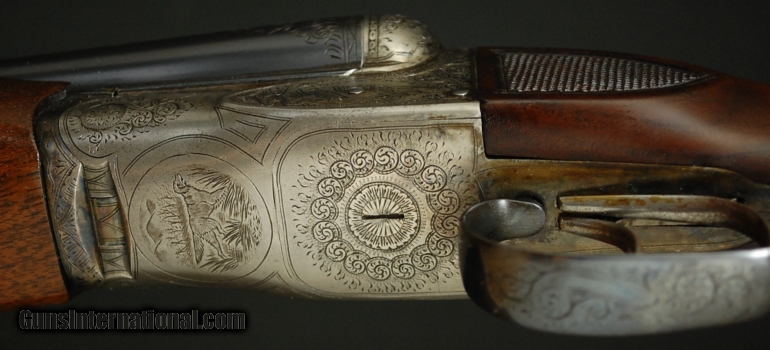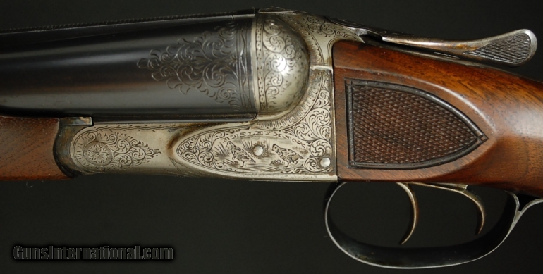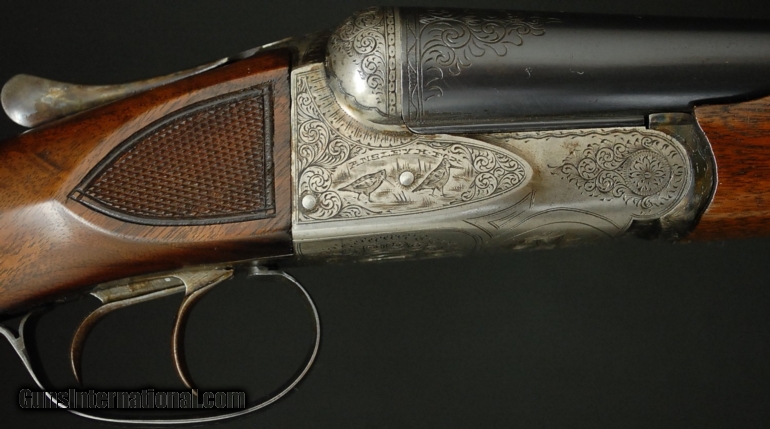 Description: A.H. Fox – CE 12ga. 28” barrels choked M/F, beautiful American black walnut pistol grip stock, beavertail forend, double trigger, solid rib, automatic ejectors, automatic safety, hard butt plate, checkered side panels, phenomenal extremely sharp CE engraving pattern, bright case colors still showing the forearm, the gun remains in excellent original condition, a beautiful A.H. Fox shotgun, available for immediate delivery.