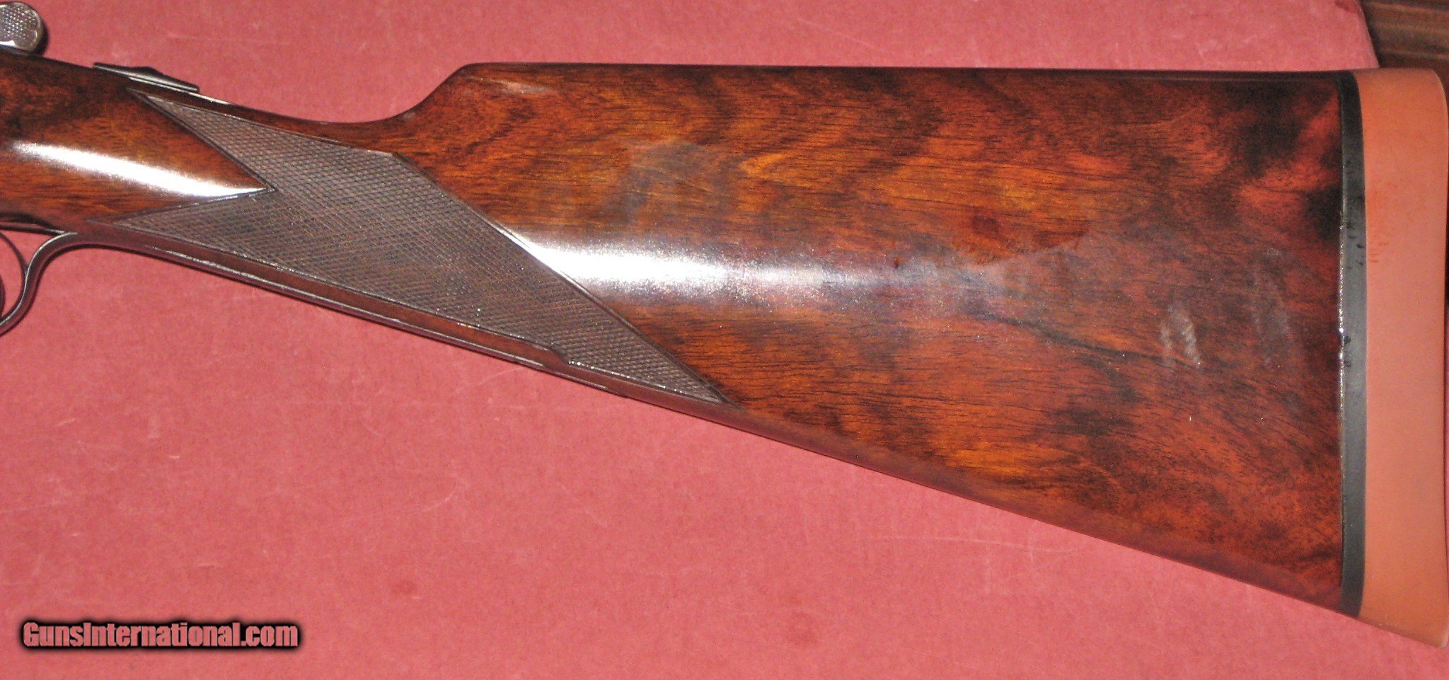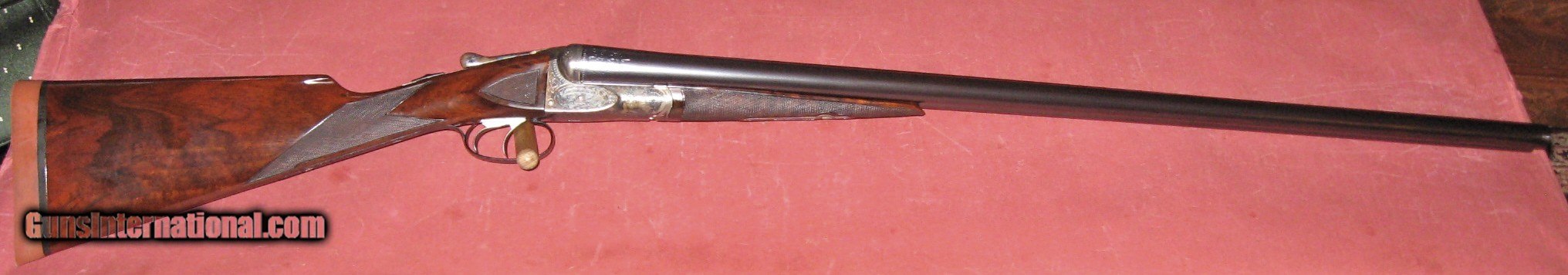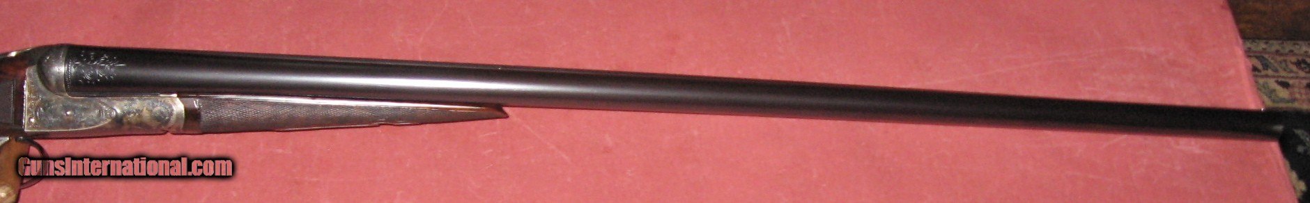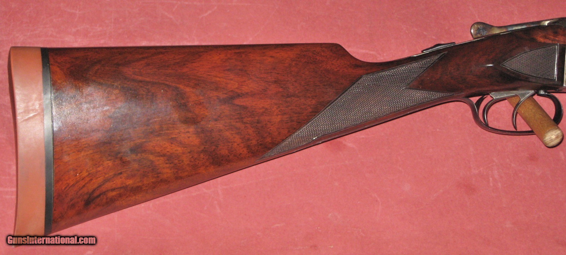 Description: A.H.Fox CE grade 12 gauge built in 1909.This gun has 30" Krupp steel barrels choked full .038" and full .038".It has a straight grip stock with a 141/8" LOP over a Silvers pad as called out in the factory letter.The gun has been restored to like new condition by Bill Schwarx and Brad Bachelder.Receipts from both for work done come with the gun.The gun retains 100% case colors,blue,and wood finish.The gun weighs 7-8 and balances on the hinge.A great dove,duck,pheasant,or live pigeon gun.C&R eligible. SOLD Curio/Relic: Yes Manufacturer: A.H.Fox (Philadelphia) Model: CE Serial Number: 11758 Chambers: 23/4 Ejectors: yes Metal Condition: mint (restored) Wood Condition: mint (restored) Bore Condition: mint Barrel Type: Krupp steel Action: double barrel Triggers: double Stock Dimensions: 141/8"x11/2"x21/8 Butt Pad: Silvers factory pad Weight: 7-8 Manufacture Date: 1909 Choke Left: full Choke Right: full |