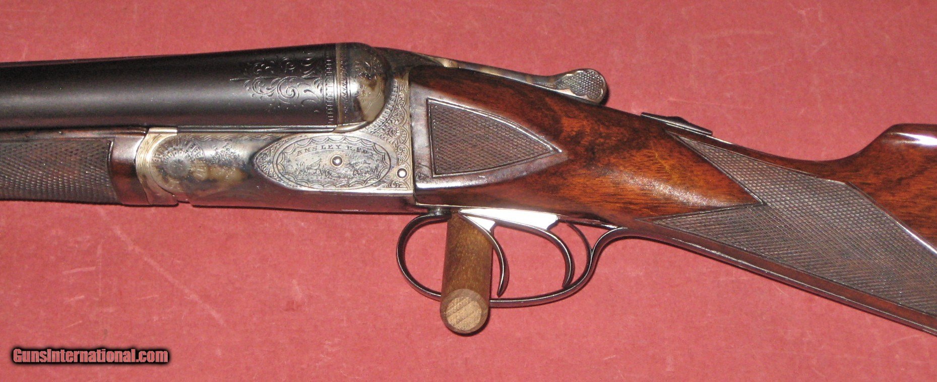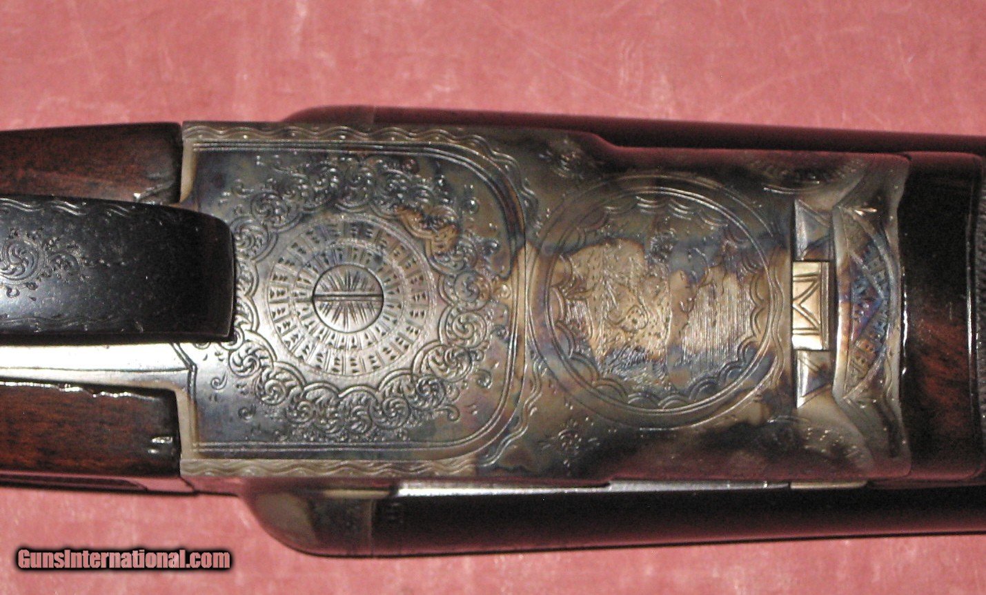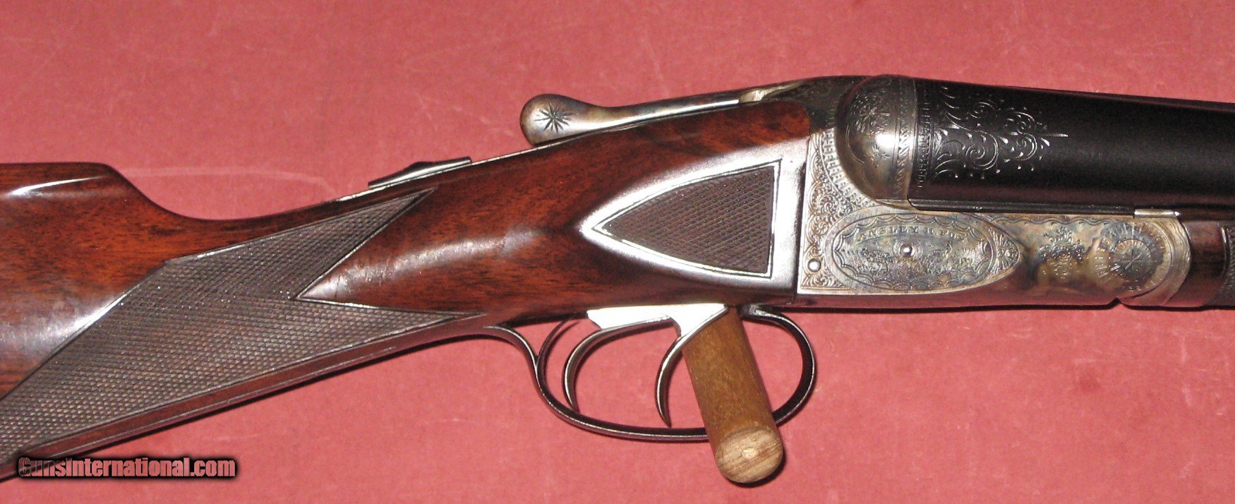 Description: A.H.Fox CE grade 12 gauge built in 1909.This gun has 30" Krupp steel barrels choked full .038" and full .038".It has a straight grip stock with a 141/8" LOP over a Silvers pad as called out in the factory letter.The gun has been restored to like new condition by Bill Schwarx and Brad Bachelder.Receipts from both for work done come with the gun.The gun retains 100% case colors,blue,and wood finish.The gun weighs 7-8 and balances on the hinge.A great dove,duck,pheasant,or live pigeon gun.C&R eligible. SOLD Curio/Relic: Yes Manufacturer: A.H.Fox (Philadelphia) Model: CE Serial Number: 11758 Chambers: 23/4 Ejectors: yes Metal Condition: mint (restored) Wood Condition: mint (restored) Bore Condition: mint Barrel Type: Krupp steel Action: double barrel Triggers: double Stock Dimensions: 141/8"x11/2"x21/8 Butt Pad: Silvers factory pad Weight: 7-8 Manufacture Date: 1909 Choke Left: full Choke Right: full |