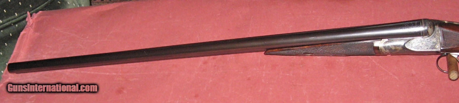 Description: A.H.Fox 12 gauge CE grade built in 1909.This gun has 30" #2 weight Krupp steel barrels choked full and full.The gun has a ighly figured straight grip stock with 141/8"LOP over a Silvers pad.The gun has been completely restored by Bill Schwarz and Brad Bachelder.It retains 100% of the case colors,100% of the barrel blue,and 100% of the wood finish.The ejectors are prefectly timed and were rebuilt by Bachelder when the gun was restored.The gun weighs 7-8.The engraving is outstanding and is sharp and very detailed.this would make a great live pigeon gunduck or pheasant gun, or a clays gun for vintage shootses with a factory letter and receipts from Schwarz and Bachelder.C&R eliglble. SOLD Curio/Relic: Yes Manufacturer: A.H.Fox (Phildelphia) Model: CE Serial Number: 11758 Chambers: 23/4 Ejectors: yes Metal Condition: mint (restored) Wood Condition: mint (restored) Bore Condition: excellent Barrel Type: Krupp Steel Action: double barrel Triggers: Double Stock Dimensions: 141/8"x11/2"x21/8 Butt Pad: solid pad Weight: 7-8 Manufacture Date: 1909 Choke Left: full .038 Choke Right: full .038 |