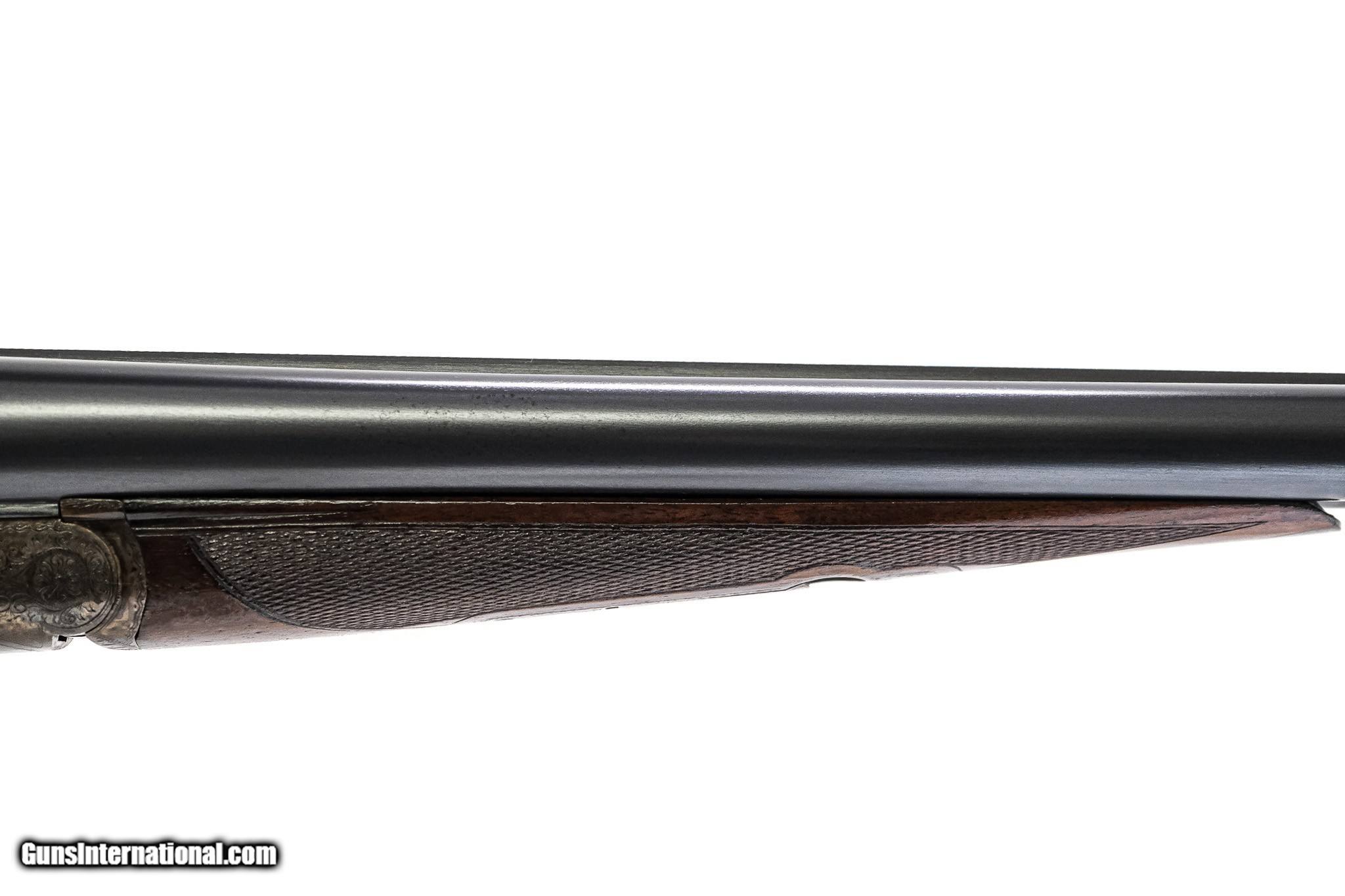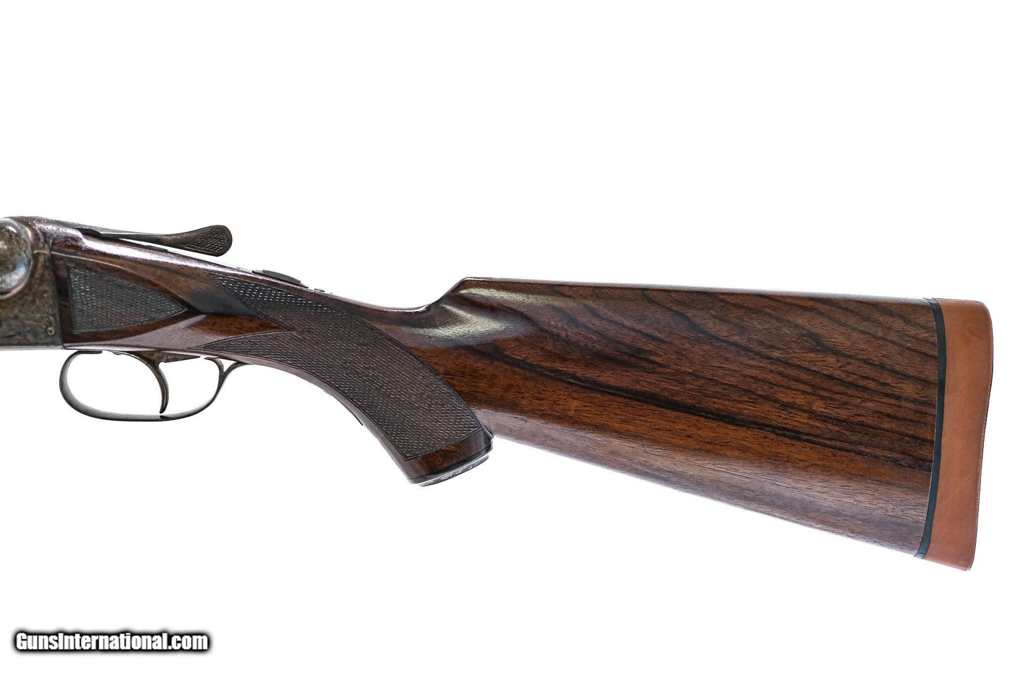 Description: A.H. Fox - CE Grade, SxS, 12ga. 28" Chromox Steel Barrels Choked F/M. Collector quality, made in Philadelphia (PA), pistol grip, pad, splinter forend, this gun retains 99.9% of the original case colored hardening, not refinished, over 80% of it on the trigger guard, 99% barrel blue, engraving so sharp you’d cut your hand on it, magnificently figured walnut, checkered side panels, Kautzy Single selective trigger, automatic ejector. This gun comes form the Dan Tauber collection. Letter from Roe S. Clark, the barrels still have the Damascus scene on it, outstanding gun with the letter! Inv: 72221 7 lbs. 3 oz. 14 ¼" x 2 7/8" x 1 11/16" $10,250.00 SOLD |