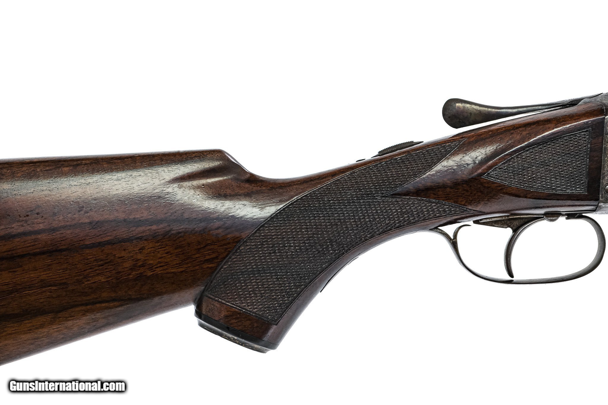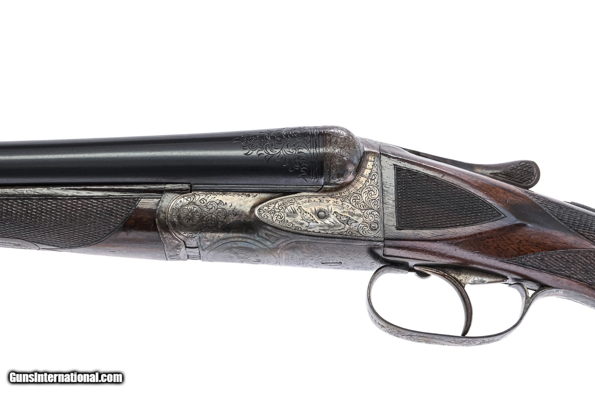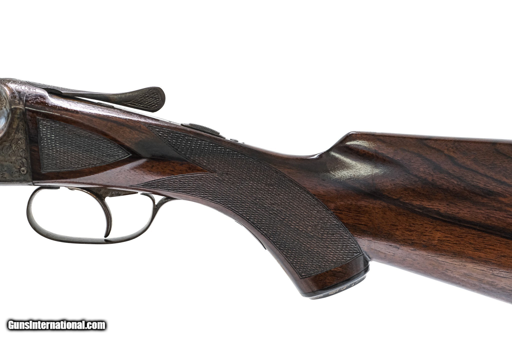 Description: A.H. Fox - CE Grade, SxS, 12ga. 28" Chromox Steel Barrels Choked F/M. Collector quality, made in Philadelphia (PA), pistol grip, pad, splinter forend, this gun retains 99.9% of the original case colored hardening, not refinished, over 80% of it on the trigger guard, 99% barrel blue, engraving so sharp you’d cut your hand on it, magnificently figured walnut, checkered side panels, Kautzy Single selective trigger, automatic ejector. This gun comes form the Dan Tauber collection. Letter from Roe S. Clark, the barrels still have the Damascus scene on it, outstanding gun with the letter! Inv: 72221 7 lbs. 3 oz. 14 ¼" x 2 7/8" x 1 11/16" $10,250.00 SOLD |
