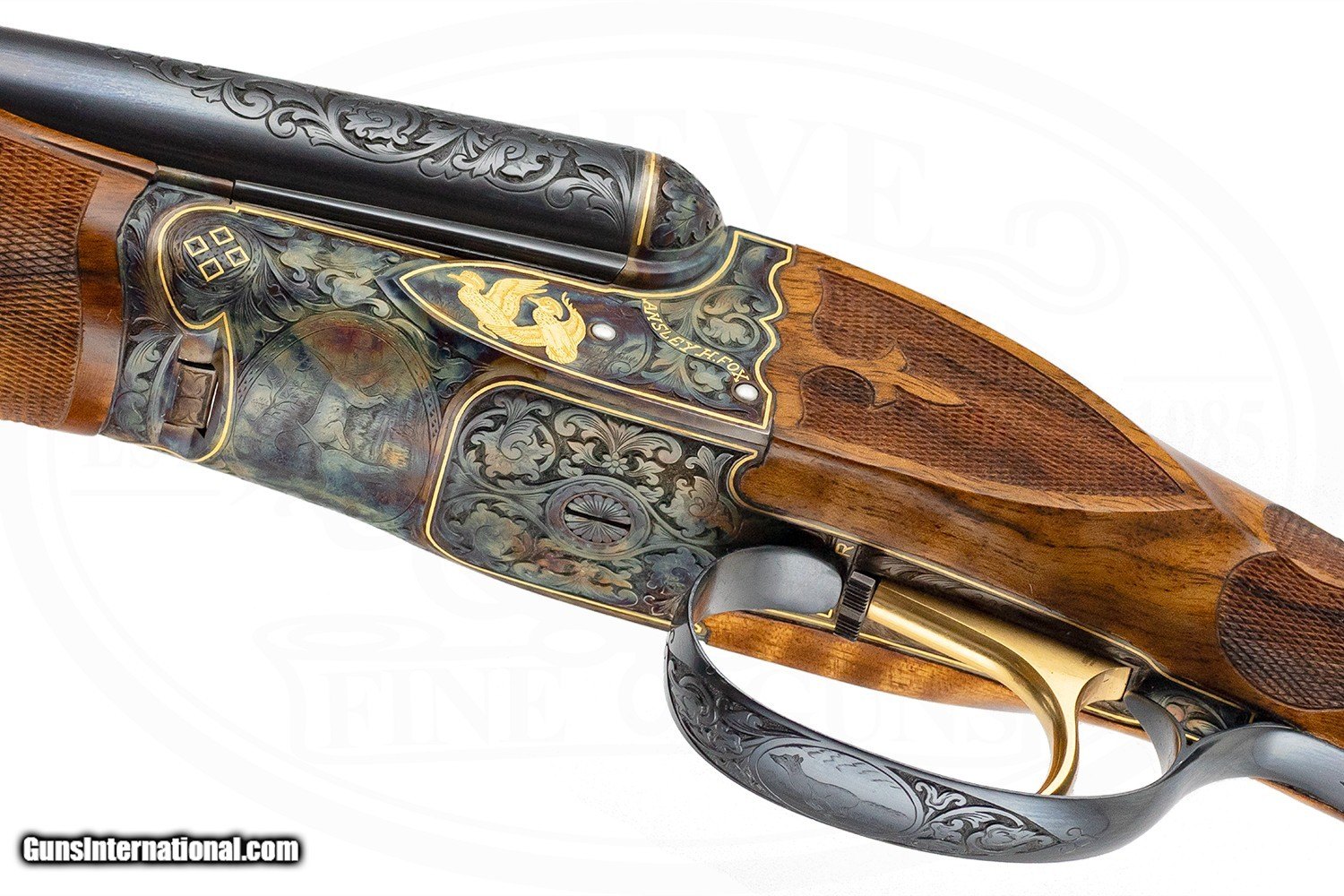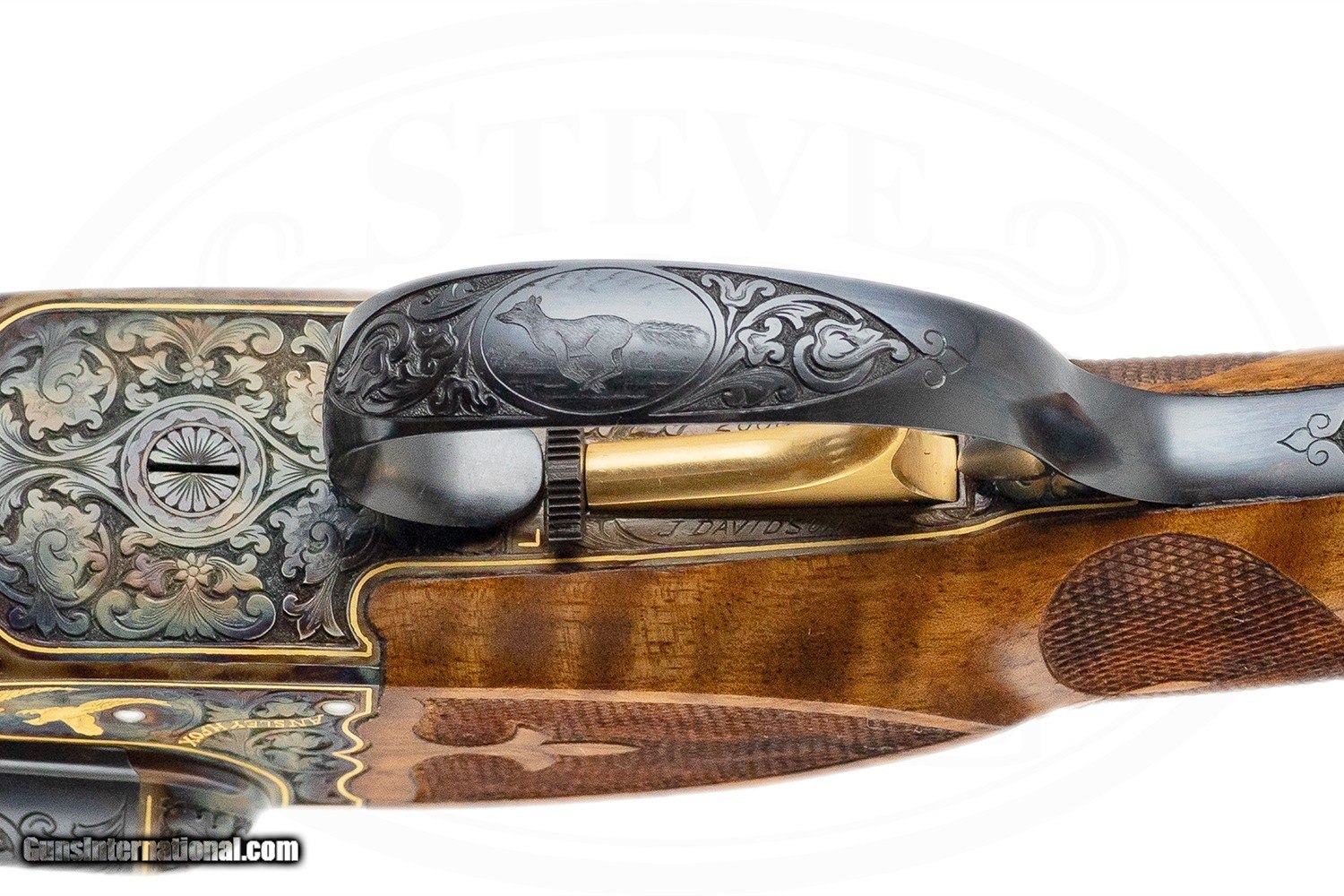 Description: SN# F205XXX J DAVIDSON ENGRAVED 30" SOLID RIB BARRELS IC AND MOD (.006 AND .014 CONSTRICTIONS) 2 3/4" CHAMBERS 30" SOLID RIB BARRELS MOD AND FULL (.019 AND .035 CONSTRICTIONS) 2 3/4" CHAMBERS SINGLE SELECT TRIGGER EJECTORS 2 BEAVERTAIL FOREARM ENGLISH GRIP SKELETON BUTT PLATE EXCELLENT LIKE NEW CONDITION MAKERS CASE WITH ACCESSORIES ~ 6LBS 1 OZ BOTH BBL SETS 2 3/16" DAH 1 1/2" DAC 14 5/16" LOP SOLD |