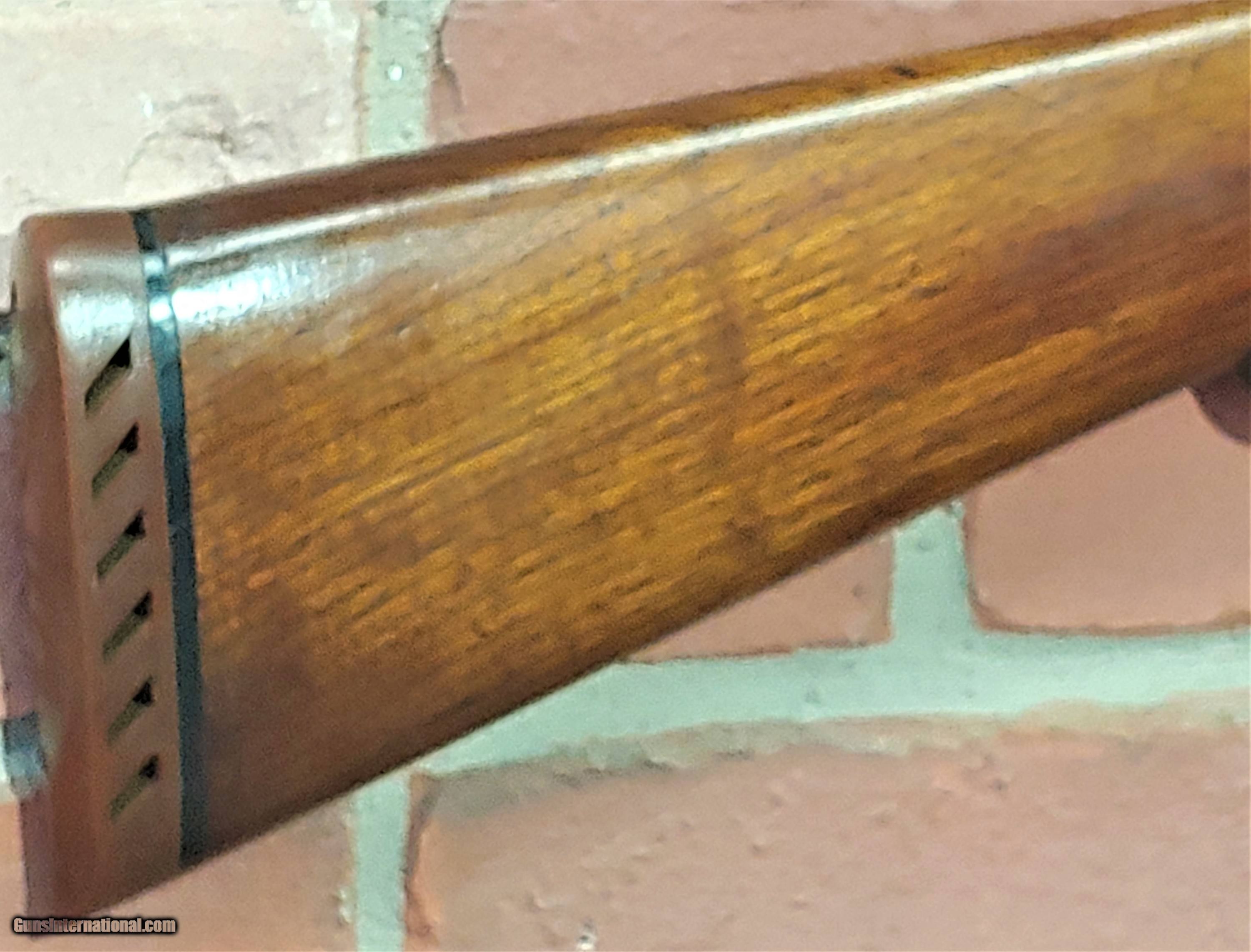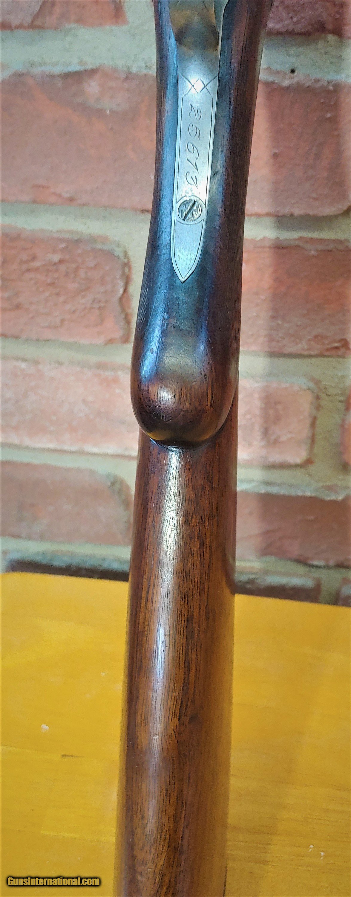 Description: Fox grade “A” 12 ga shotgun made in 1919. It has 28 inch barrels that are marked “CHROMOX FLUID COMPRESSED STEEL” and “MADE BY A.H. FOX GUN Co. PHILA. PA USA”. It has a 14.5 inch LOP. Overall condition is good. The action locks up good and tight. The bores are shiny and in good condition. Not much finish left on the receiver but no pits or rust. The blueing on the barrels is worn a little thin but not bad. Overall a gun you won't be afraid to take out into the field, and you will still be proud of. SOLD Curio/Relic: Yes Shotgun Gauge: 12 Gauge Manufacturer: A.H. Fox Model: A Serial Number: 25613 Ejectors: non Condition: Good Metal Condition: Good Wood Condition: Good Bore Condition: Very Good LOP: 14.5 Manufacture Date: 1919 |
