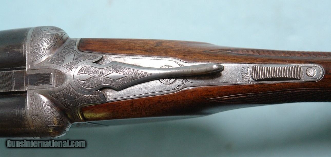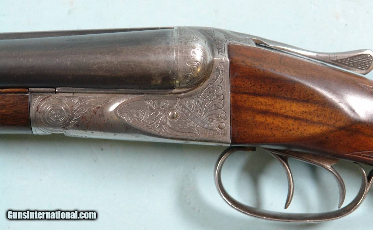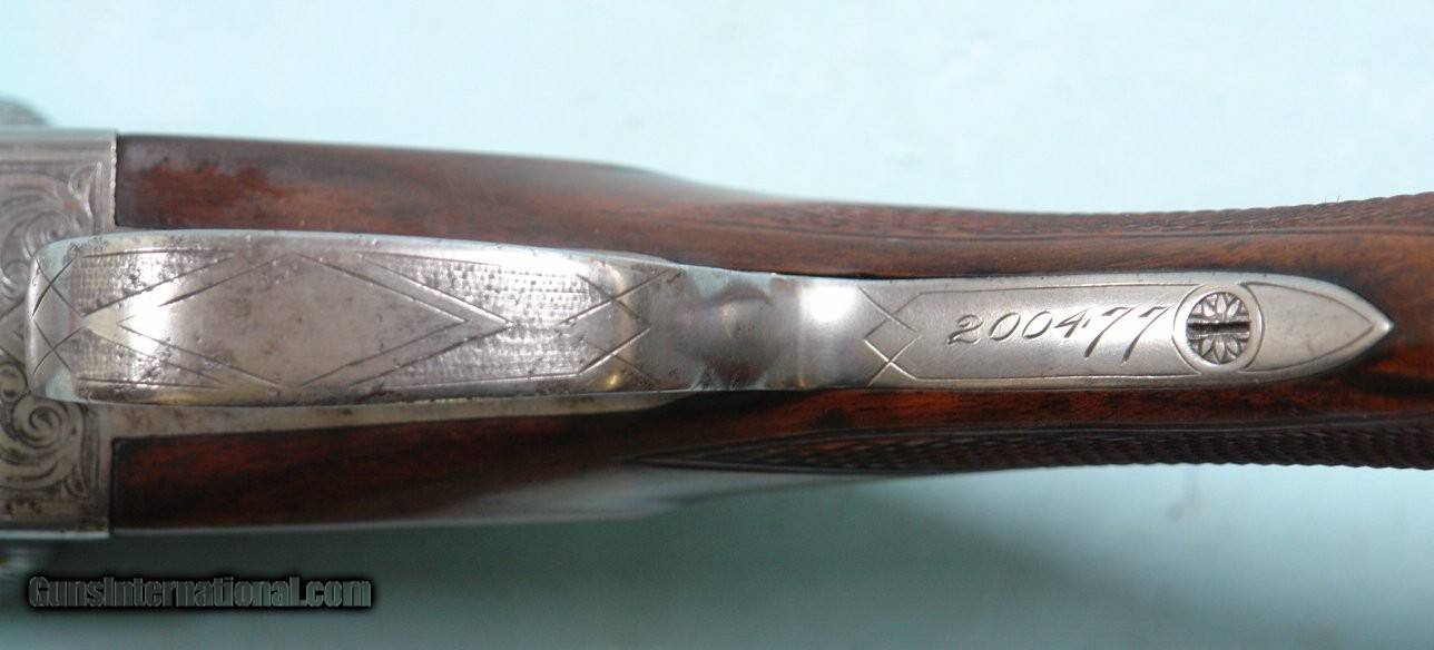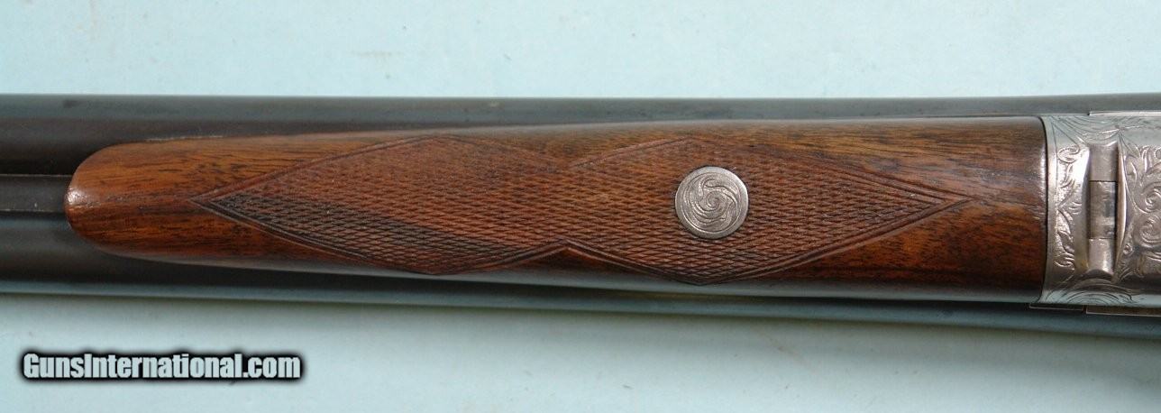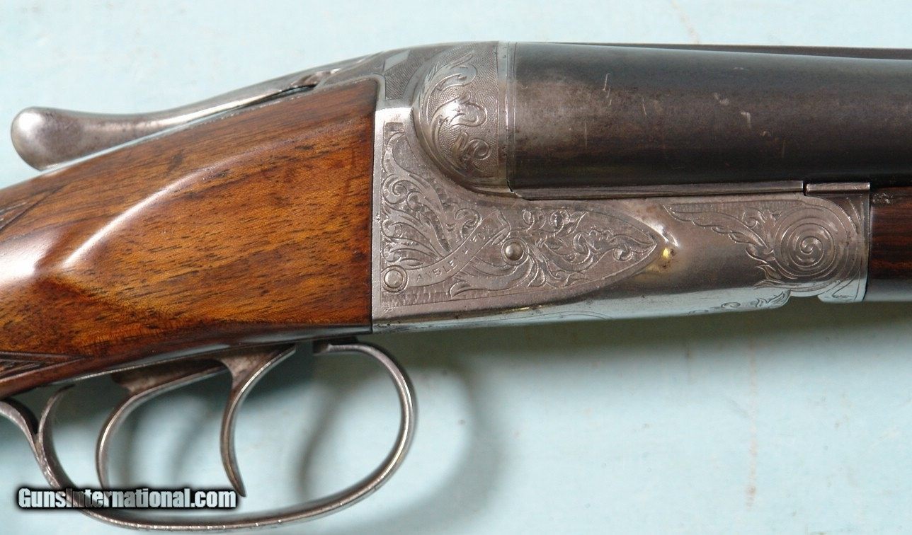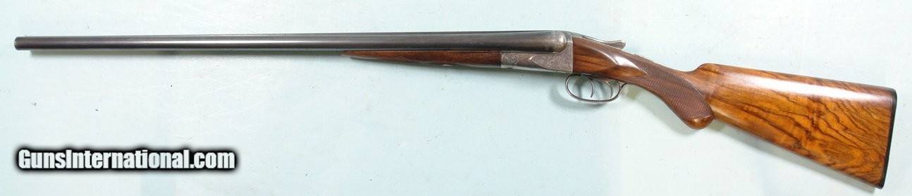 Description: 32978- A. H. FOX GUN CO. PHILADELPHIA AE GRADE 20 GA.-26” SIDE X SIDE SHOTGUN MFG. 1913. Barrels with 2 ½” chambers and choked Modified and Full. Double triggers, auto safety and automatic ejectors. Original forend and pistol grip walnut checkered stock. 14” pull over hard rubber butt plate. 1 ½”, 2 ½” drop. Excellent condition with the factory engraved frame polished bright and the barrels with nearly all the original blue. Wood professionally refinished and checkering perfectly re-cut. Tight working order and bright bores. Hard to find ejector 20 gauge Fox. $2200. Curio/Relic: Yes Shotgun Gauge: 20 Gauge Price: $2,200.00 Contact Seller |