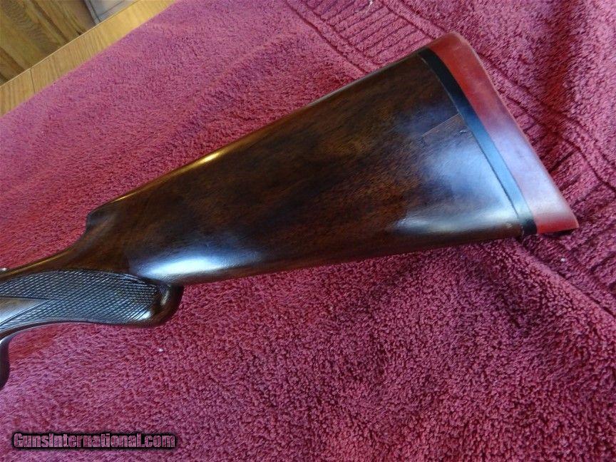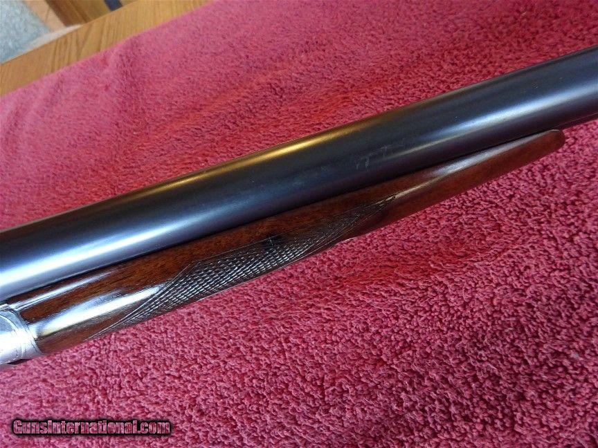 Description: A H FOX, UTICA, HE GRADE 12 GAUGE, 30" BARRELS. EXTREME FULL AND FULL, .040 AND .040, 2 9/16" CHAMBERS. EXCELLENT BLUE, MIRROR BRIGHT BORES. AUTO EJECTORS FUNCTION NICELY. VIVID CASE COLOR IN THE PROTECTED AREAS, TYPICAL H ENGRAVING PATTERN ON FRAME, TRIGGERGUARD AND FOREARM METAL. ROUND KNOB STOCK, SPLINTER FOREARM, ATTRACTIVE DARK GRAINED WOOD. EXCELLENT FINISH, 1 1/2" X 3" X 14 1/4", SILVERS SOLID PAD. JUST OVER EIGHT POUNDS. NICE TIGHT GUN WITH NO DENTS OR DINGS, PROFESSIONAL WOOD REPAIR ALONG THE BOTTOM SIDE OF THE BUTTSTOCK. MADE IN 1932. $4900.00 + $60.00 Insured shipping to an FFL address. See all Pats listings We also have hundreds of pieces of ORIGINAL gun company advertising & memorabilia available for sale. We have no reprints or reproductions. Email for more information. SOLD Curio/Relic: Yes |