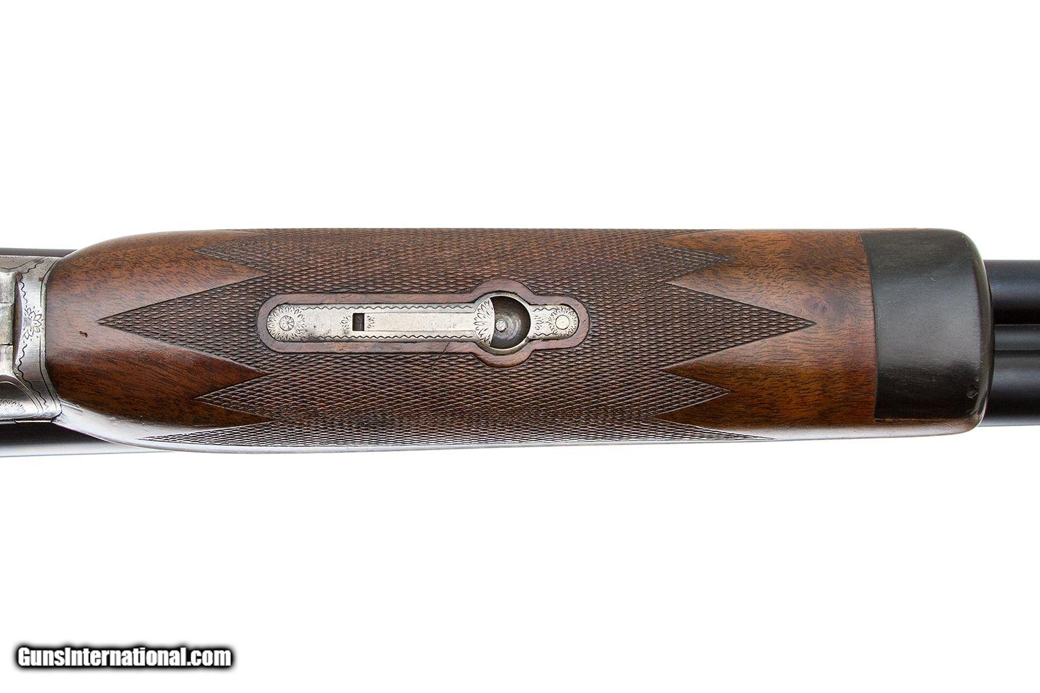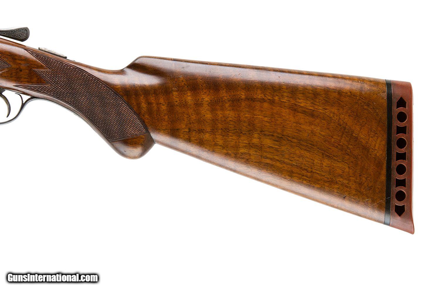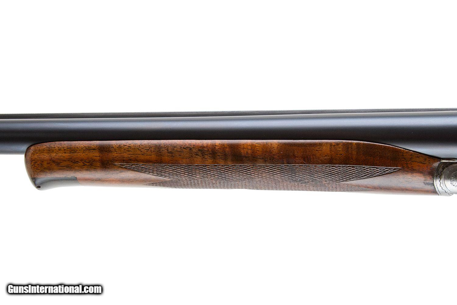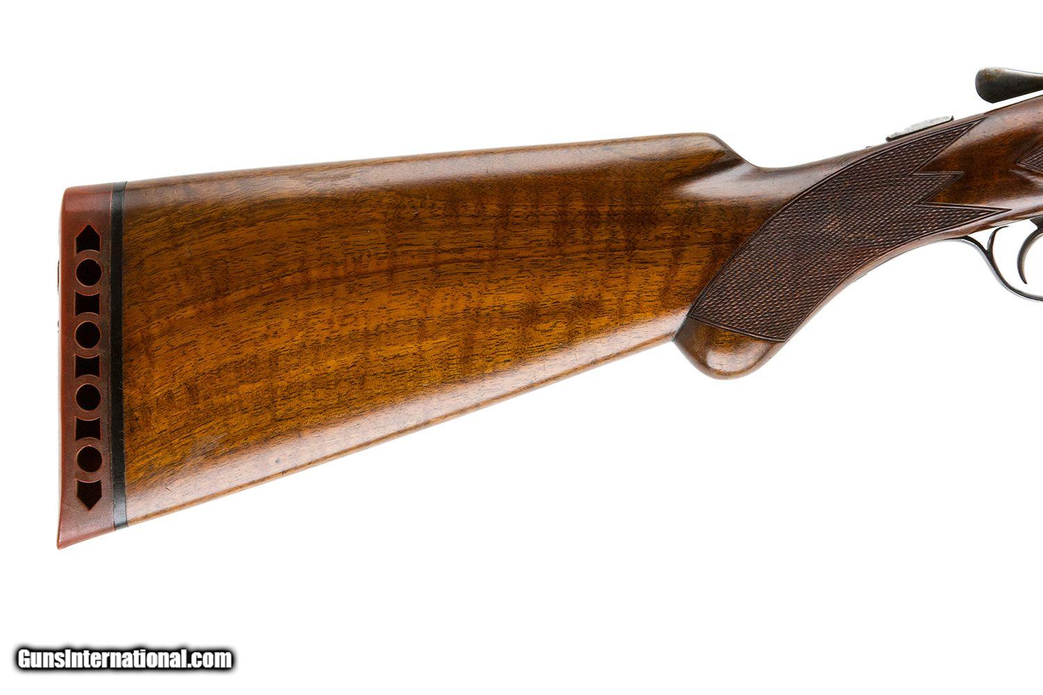 Description: #282XX 32" O WEIGHT BARRELS 047 AND 050 3" CHAMBERS DOUBLE TRIGGER EJECTORS NON ORIGINAL BEAVER TAIL FOREARM PISTOL GRIP MINT ORIGINAL 9LBS 9 OZ 2 3/4 DAH 1 3/4 DAC 14 1/4 LOP SOLD |