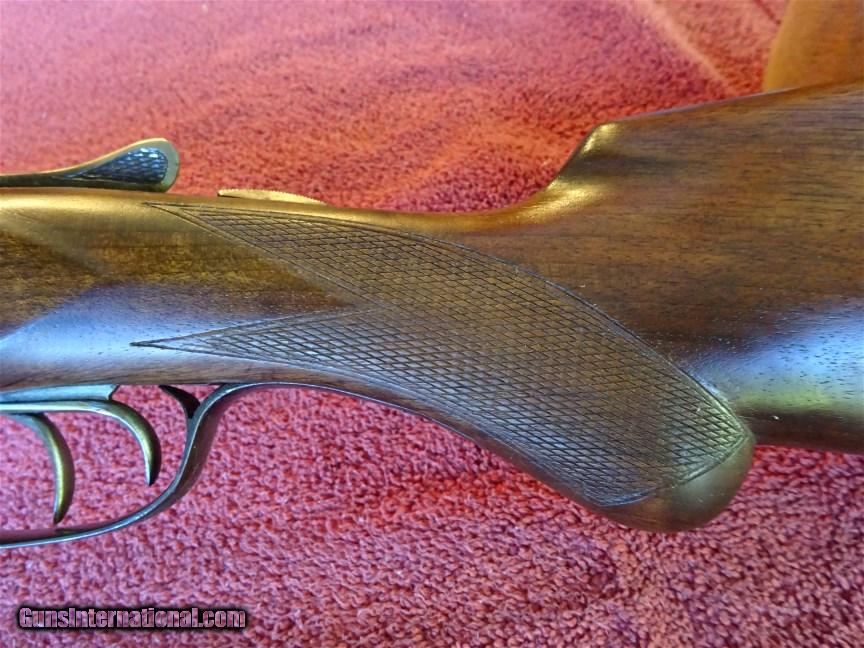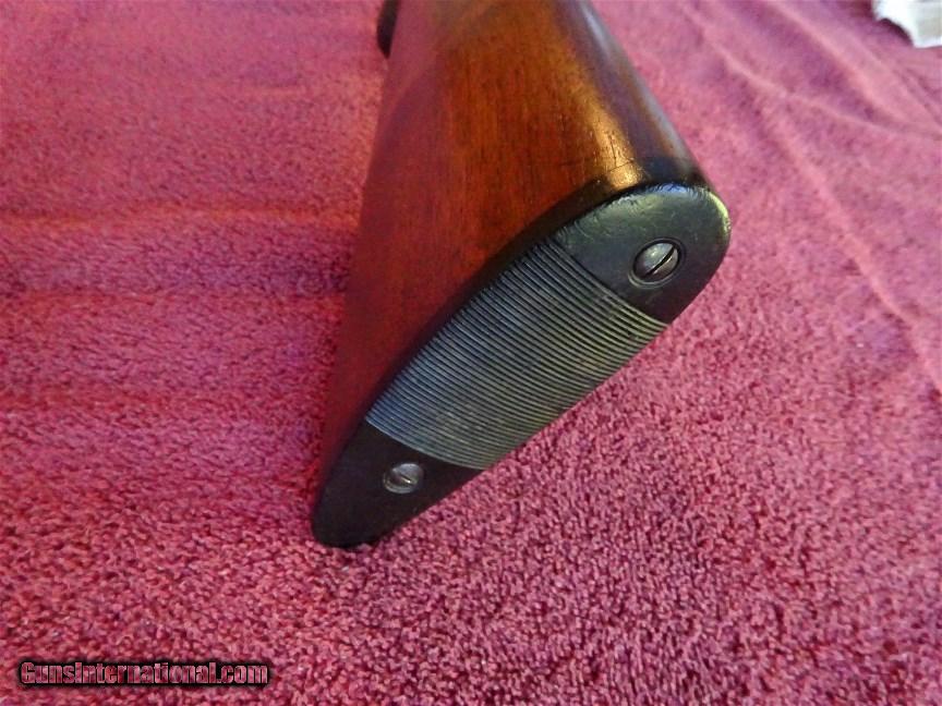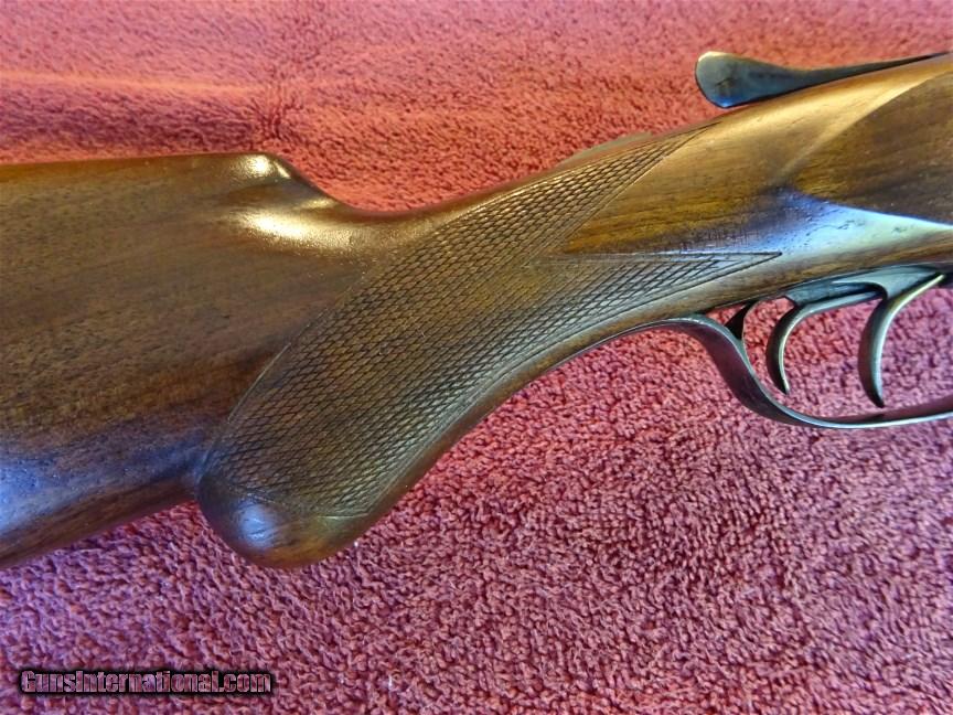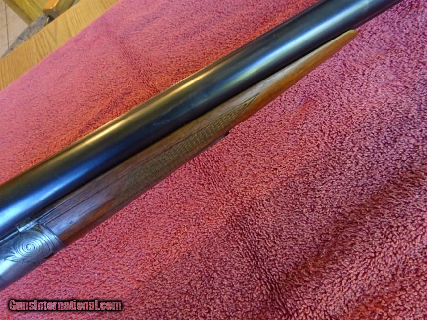Description: A H Fox, Phil., A GRADE 12 GAUGE, 30" BARRELS, FULL AND MODIFIED, 99% BRIGHT BLUE, MIRROR BORES, NO. 2 WEIGHT. LATE STYLE DEEP CUT ENGRAVING, SHARP AS CAN BE WITH NO WEAR. BOLD VIVID CASE COLOR. ROUND KNOB GRIP STOCK, SPLINTER FOREARM, EXCELLENT WOOD AND CHECKERING. ORIGINAL BUTTPLATE, 1 1/2" X 2 1/2" X 14", 7 POUNDS 4 OUNCES. TOP LEVER TO THE FAR RIGHT. GUN APPEARS TO HAVE BEEN USED VERY LITTLE. MADE IN 1924. $2250.00 + $50.00 insured shipping to an FFL address. We have hundreds of pieces of ORIGINAL gun company advertising & memorabilia available for sale. We have no reprints or reproductions. Email for more information. SOLD Curio/Relic: Yes |