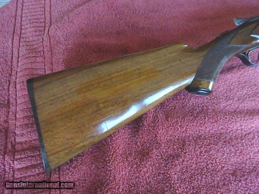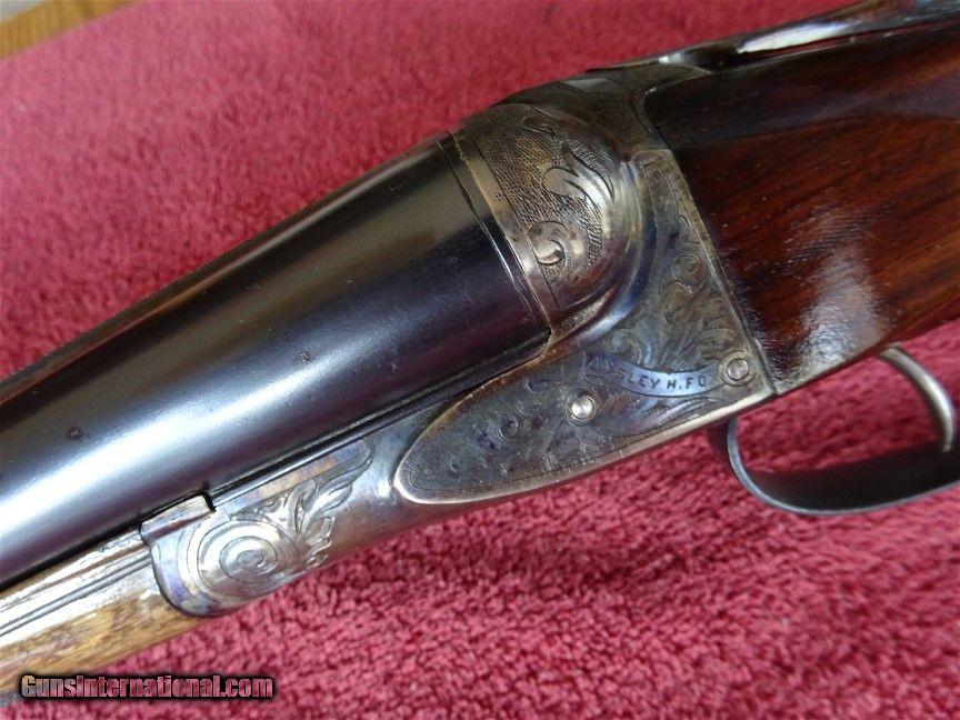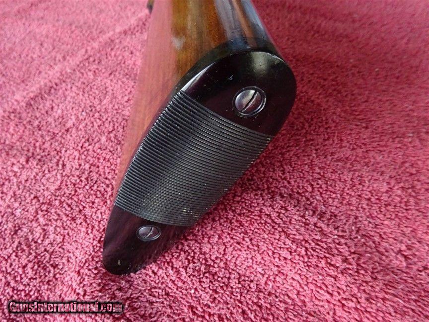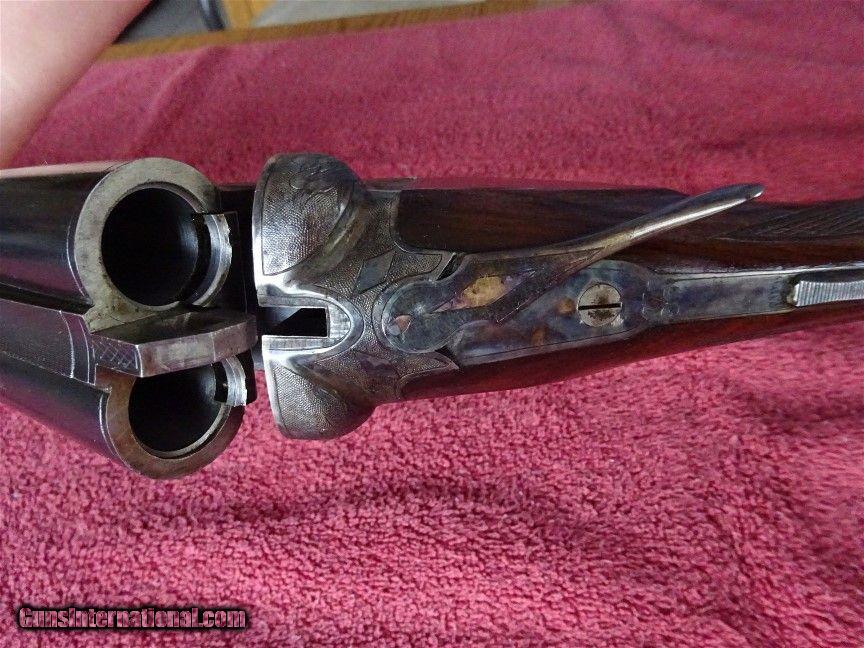 Description: A H FOX, PHIIL., AE GRADE 12 GAUGE, 30" CHROMAX BARRELS, CLEARLY STAMPED NUMBER 1 WEIGHT, FULL AND FULL, 2 1/2" CHAMBERS, 99% BRIGHT BLUE, AUTOMATIC EJECTORS. DEEP CUT SCROLL ENGRAVING, STIPPLED BACKGROUND ON TOP AND FENCES, "A H FOX" ENGRAVED ON A RIBBON ON BOTH SIDES, VIRTUALLY 100% OF THE BOLD VIVID CASE COLOR, PERFECT ENGRAVED SCREWS, 100% TRIGGERGUARD BLUE, TOP LEVER TO THE FAR RIGHT, TIGHT ON FACE, BARRELS RING BEAUTIFULLY. SPLINTER FOREARM, BUTTSTOCK FINISH NEAR PERFECT, MINOR FLAKING ON FOREARM, ORIGINAL GRIP CAP AND BUTTPLATE. GREAT DIMENSIONS - 1 1/2" X 2 5/8" X 14 1/4", 7 POUNDS 10 OUNCES. THIS IS THE ONLY FOX I'VE SEEN WITH NO. 1 MARKED BARRELS. NEAR NEW-100% ORIGINAL CONDITION. MADE IN 1923, A GREAT FIND. $4500.00 + $50.00 Insured shipping to an FFL address. See all Pats listings We also have hundreds of pieces of ORIGINAL gun company advertising & memorabilia available for sale. We have no reprints or reproductions. Email for more information. SOLD Curio/Relic: Yes |