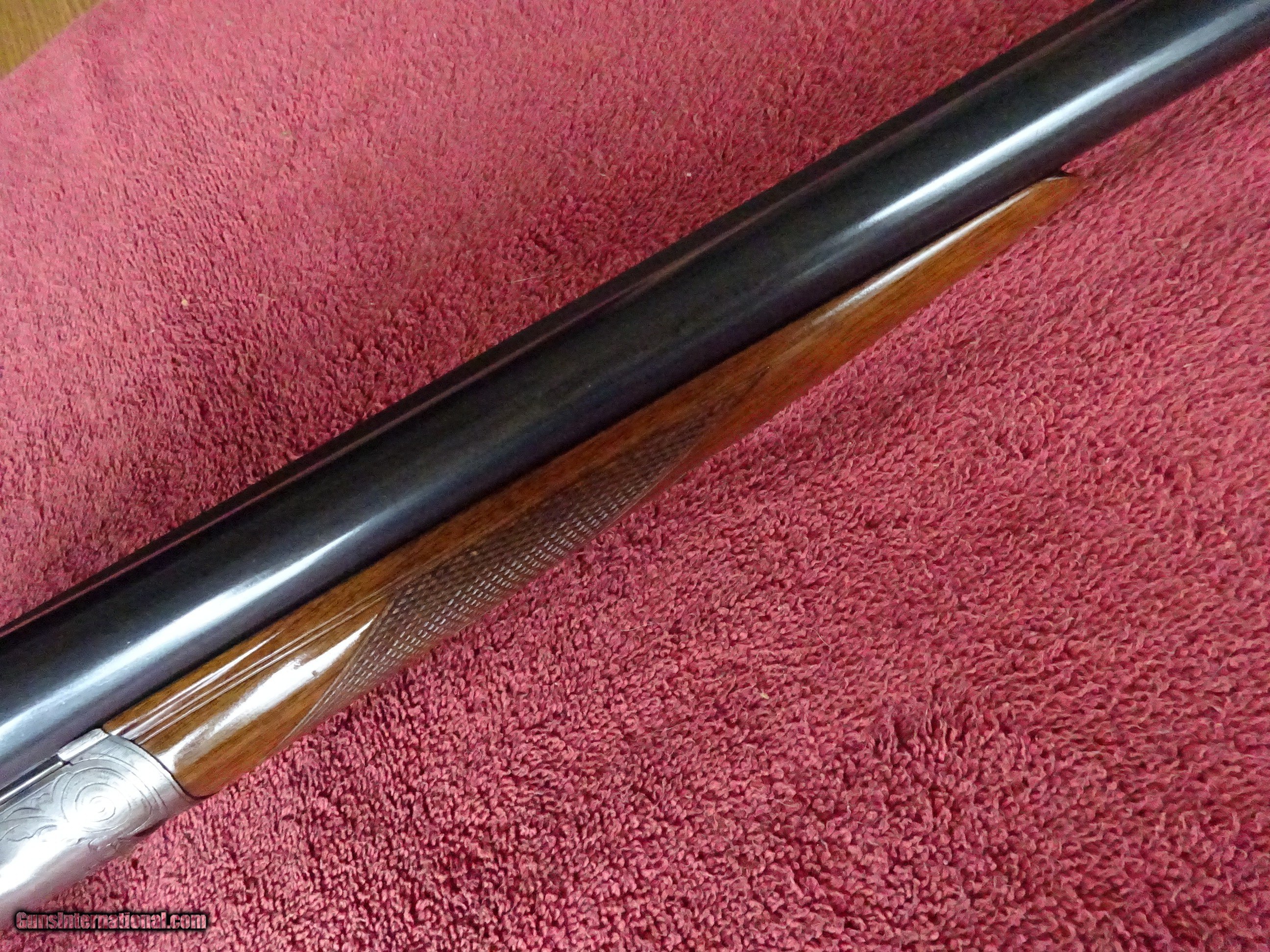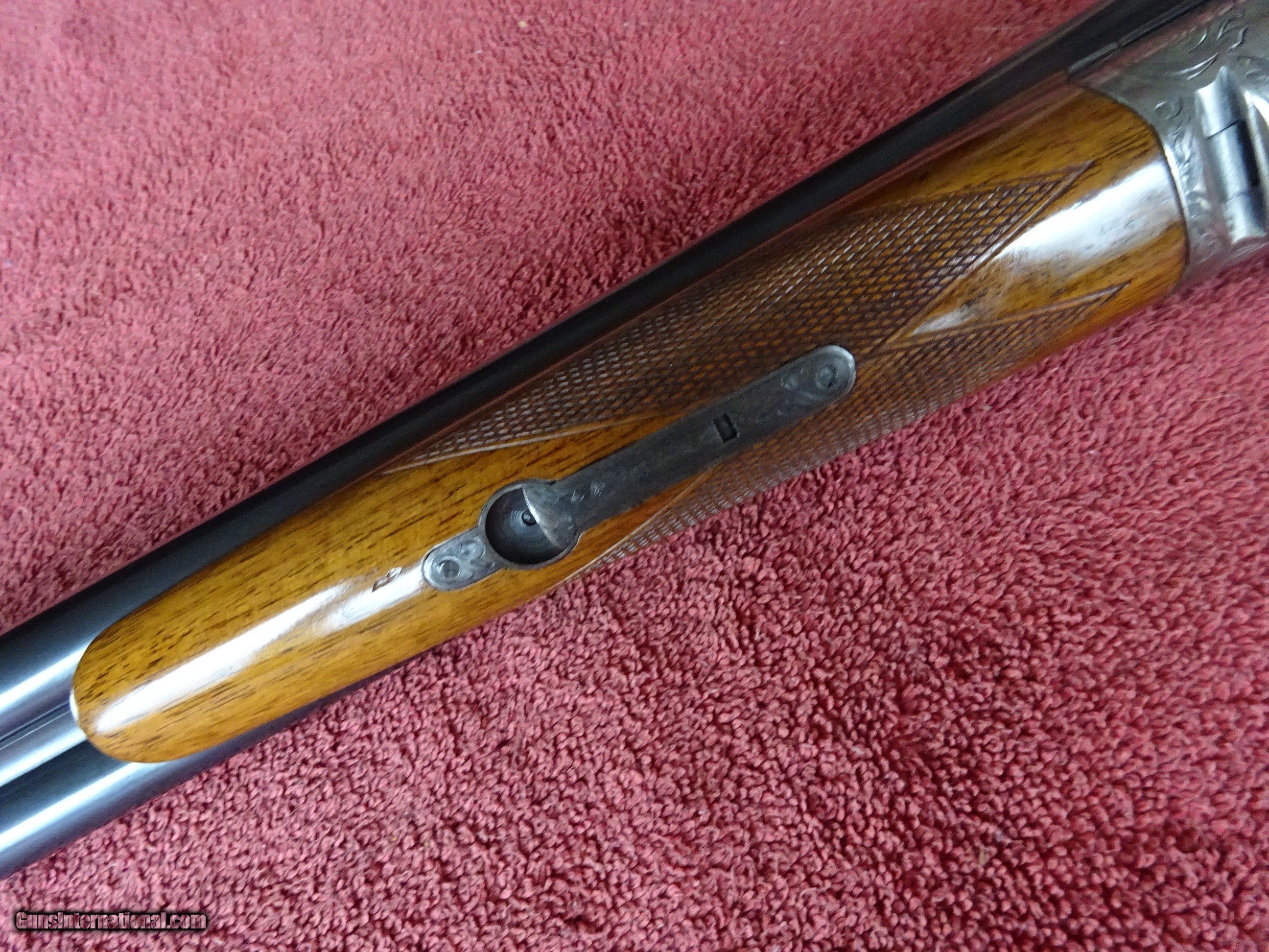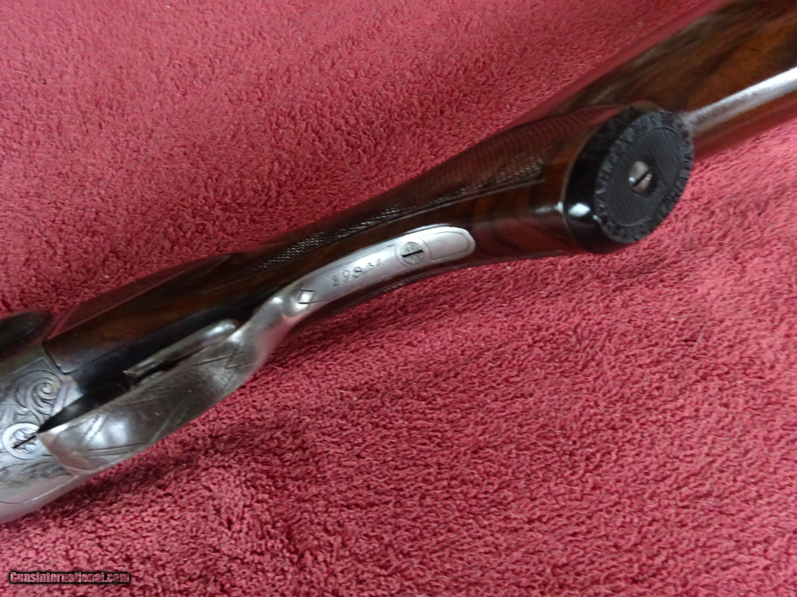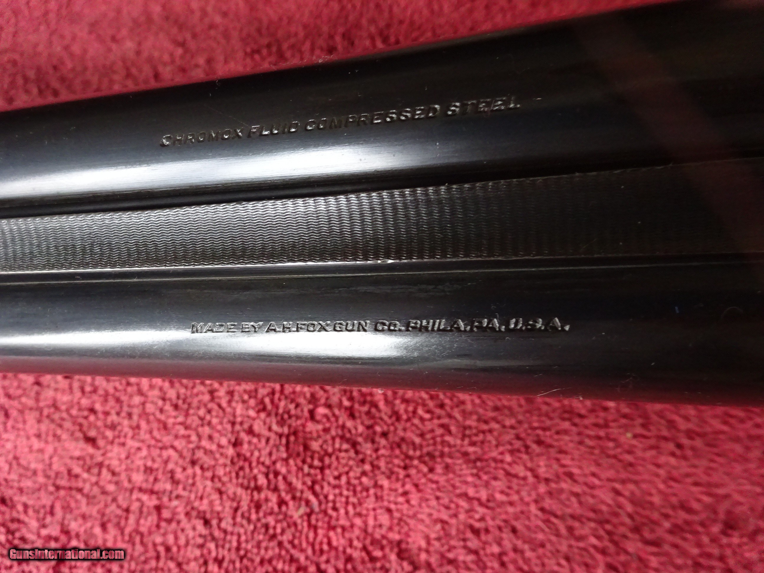 Description: A H FOX, AE GRADE 12 GUAGE, 28" CHROMOX FLUID COMPRESSED STEEL BARRELS STAMPED 4 WEIGHT. MODIFIED (.020) AND FULL (.050), 2 5/8" CHAMBERS, SINGLE BEAD SIGHT, AUTOMATIC EJECTORS, BARRELS RING NICELY. BOXLOCK FRAME, LATE STYLE DEEP CUT ENGRAVING PATTERN, PERFECT ENGRAVED SCREWS. AUTO SAFETY, TOP LEVER TO THE RIGHT, TIGHT ON FACE. VIVID CASE COLOR IN THE PROTECTED AREAS. PISTOL GRIP STOCK, SPLINTER FOREARM, EXCELLENT NICELY FIGURED WOOD, FINE CHECKERING AND WOOD FINISH, 1 1/2" X 2 1/2" X 14", SOLID DECELERATOR PAD, 6 POUNDS 15 OUNCES. MADE IN 1924. $1875.00 + $70.00 Insured shipping to an FFL address. Layaway is available. See all Pats gun listings on this site! We also have hundreds of ORIGINAL gun company advertising & memorabilia pieces available for sale on our site SPORTINGCOLLECTIBLES. We have no reprints or reproductions. Email for more information. If you need to call, morning or evening is best, and please note the Seller's Inventory number. Curio/Relic: Yes Price: $1,875.00 Shipping: $70.00 Contact Seller |