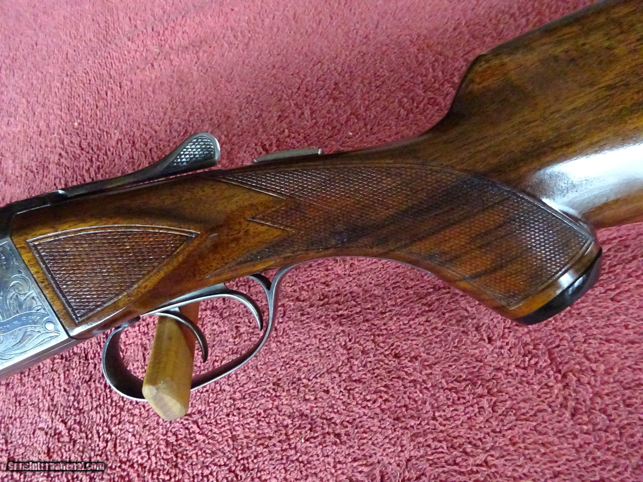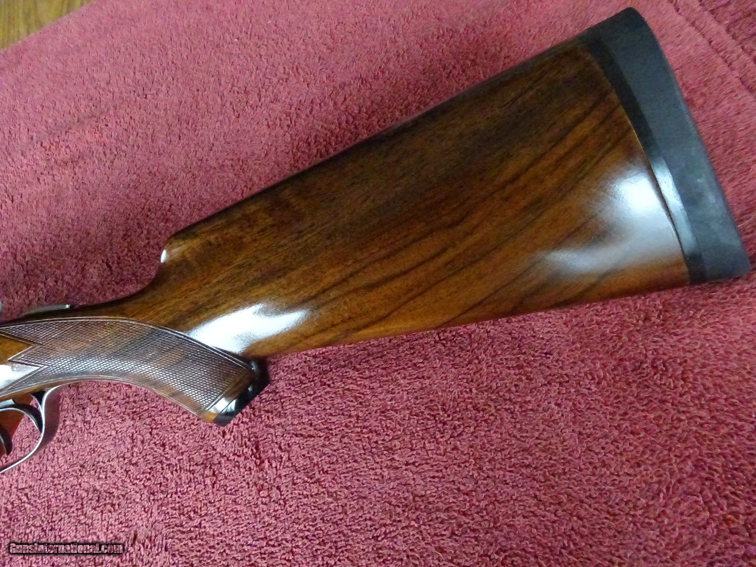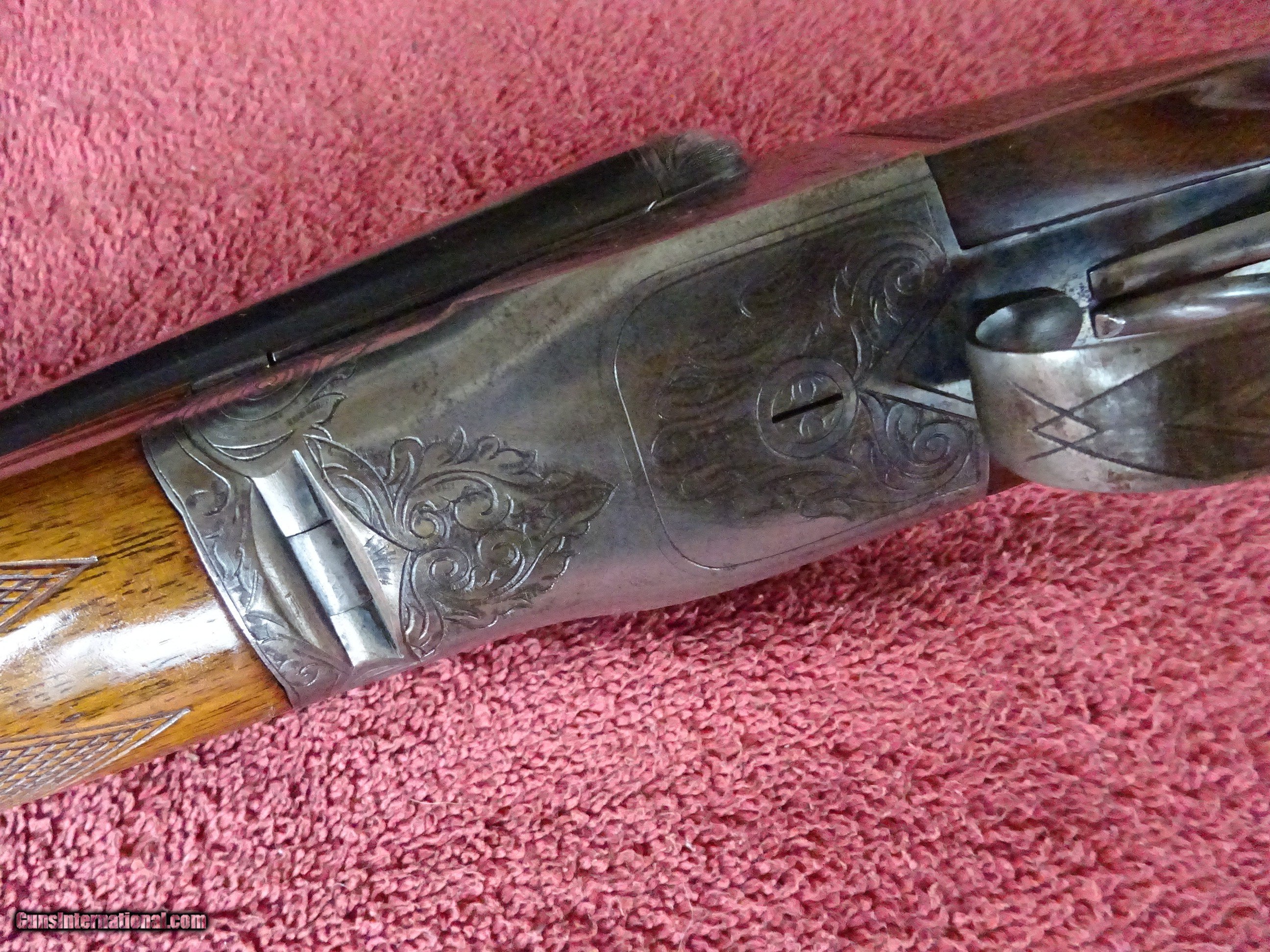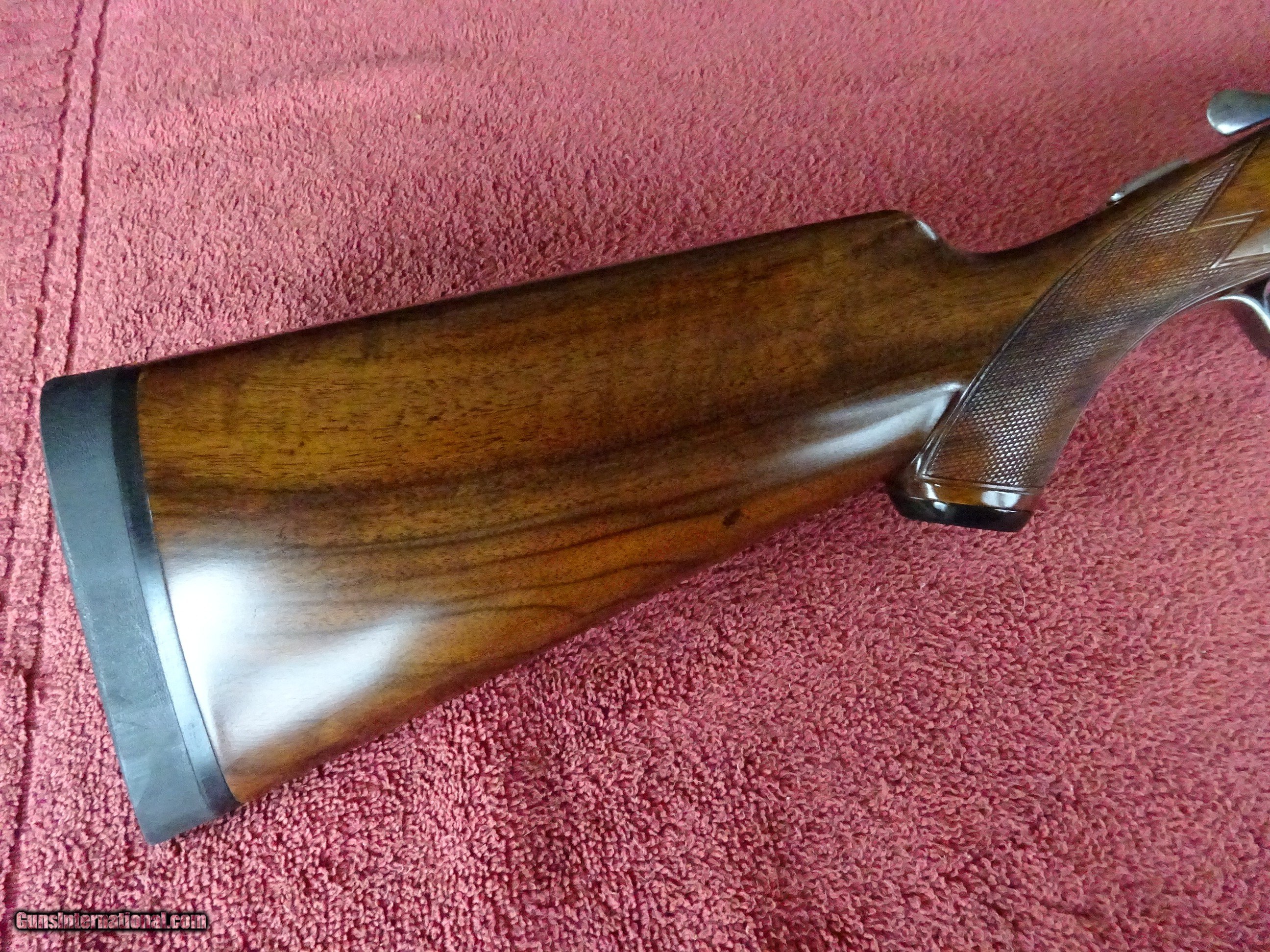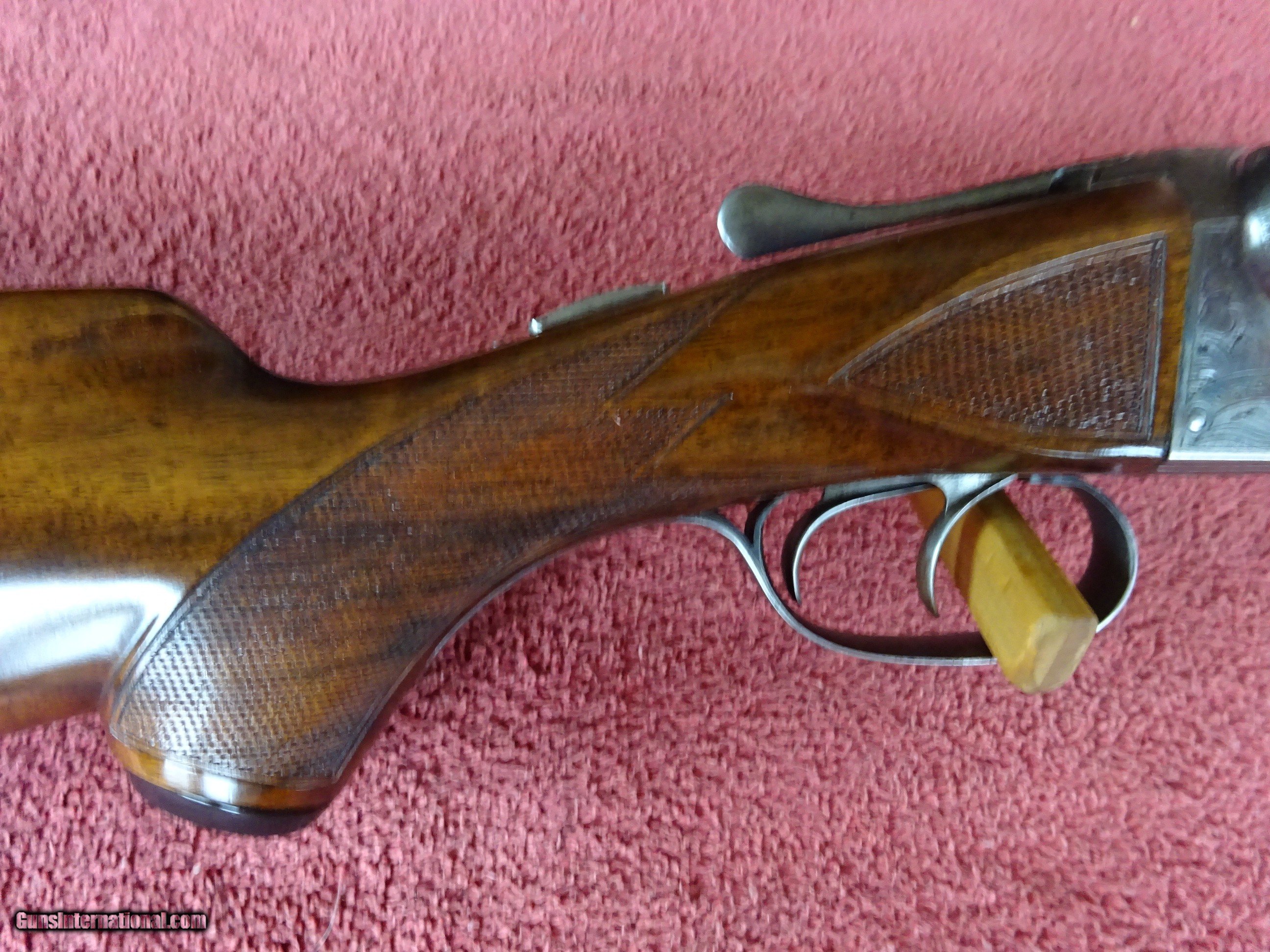 Description: A H FOX, AE GRADE 12 GUAGE, 28" CHROMOX FLUID COMPRESSED STEEL BARRELS STAMPED 4 WEIGHT. MODIFIED (.020) AND FULL (.050), 2 5/8" CHAMBERS, SINGLE BEAD SIGHT, AUTOMATIC EJECTORS, BARRELS RING NICELY. BOXLOCK FRAME, LATE STYLE DEEP CUT ENGRAVING PATTERN, PERFECT ENGRAVED SCREWS. AUTO SAFETY, TOP LEVER TO THE RIGHT, TIGHT ON FACE. VIVID CASE COLOR IN THE PROTECTED AREAS. PISTOL GRIP STOCK, SPLINTER FOREARM, EXCELLENT NICELY FIGURED WOOD, FINE CHECKERING AND WOOD FINISH, 1 1/2" X 2 1/2" X 14", SOLID DECELERATOR PAD, 6 POUNDS 15 OUNCES. MADE IN 1924. $1875.00 + $70.00 Insured shipping to an FFL address. Layaway is available. See all Pats gun listings on this site! We also have hundreds of ORIGINAL gun company advertising & memorabilia pieces available for sale on our site SPORTINGCOLLECTIBLES. We have no reprints or reproductions. Email for more information. If you need to call, morning or evening is best, and please note the Seller's Inventory number. Curio/Relic: Yes Price: $1,875.00 Shipping: $70.00 Contact Seller |