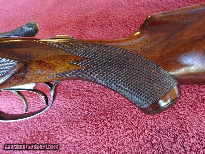 Description: A H FOX, PHIL., CE GRADE, 12 GAUGE, 28" CHROMOX STEEL BARRELS, NO. FOUR WEIGHT. EXCELLENT BRIGHT BORES, VERY GOOD BLUE, 2 1/2" CHAMBERS, TWIN IVORY SIGHTS, ENGRAVED AT THE BREECH END. FRAME HAS AN EVEN PATINA WITH NO CASE COLOR, TYPICAL ENGRAVING WITH GAME BIRDS ON THE SIDES, DOG ON THE BOTTOM PLUS FINE SCROLLWORK AND BORDERS. UNTURNED SCREWS, TOP LEVER TO THE RIGHT, TIGHT ON FACE, BARRELS RING NICELY. PISTOL GRIP STOCK, SPLINTER FOREARM, ORIGINAL GRIP CAP AND BUTTPLATE. HIGHLY FIGURED WOOD, NEAR PERFECT ORIGINAL CHECKERING, 1 5/8" X 3" X 14", 6 POUNDS 12 OUNCES. 100% ORIGINAL CONDITION, MADE IN 1924. NICE HONEST FOX. $4450.00 + $50.00 Insured shipping to an FFL address. See all Pats listings We also have hundreds of pieces of ORIGINAL gun company advertising & memorabilia available for sale. We have no reprints or reproductions. Email for more information. SOLD Curio/Relic: Yes |