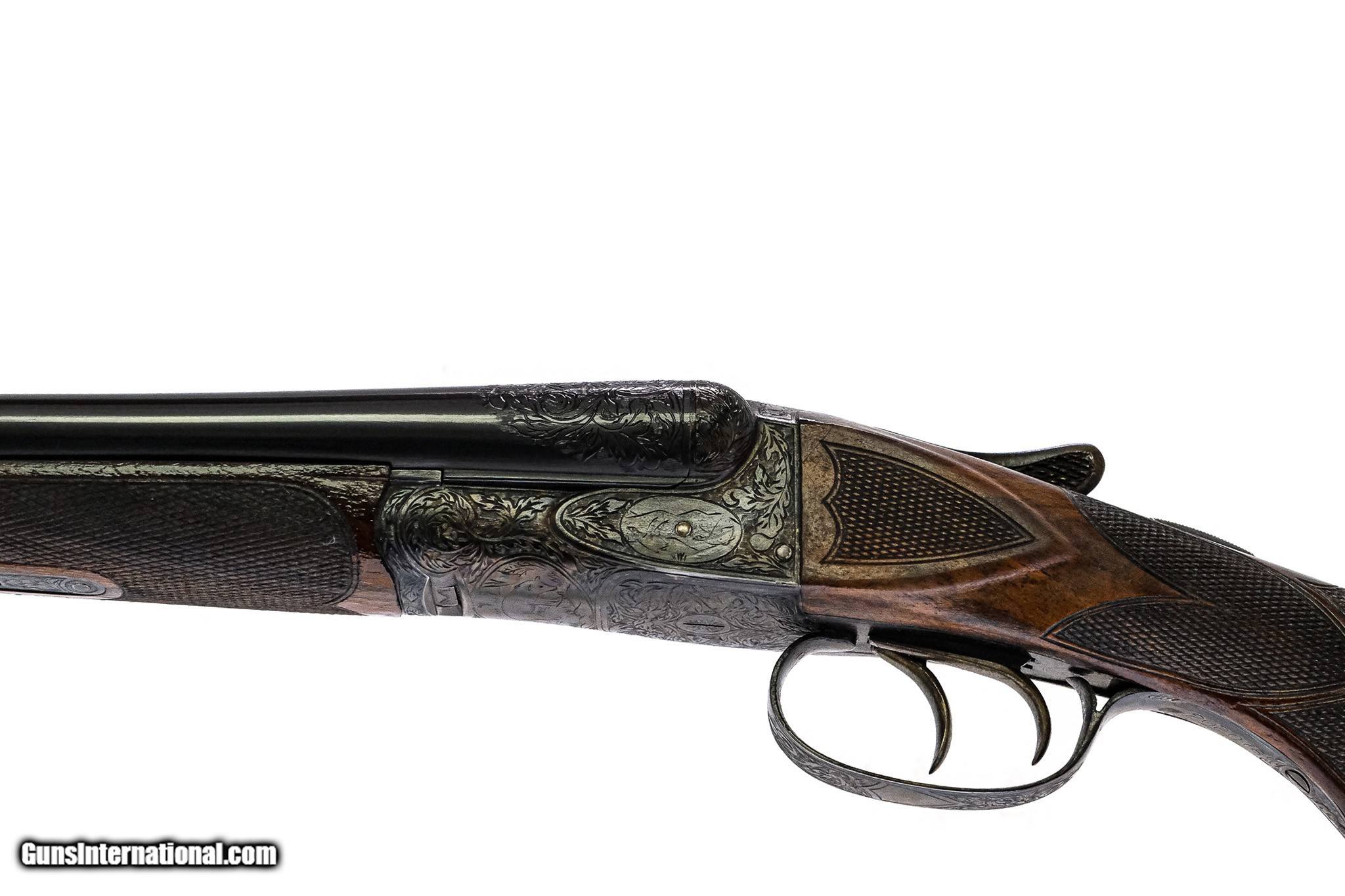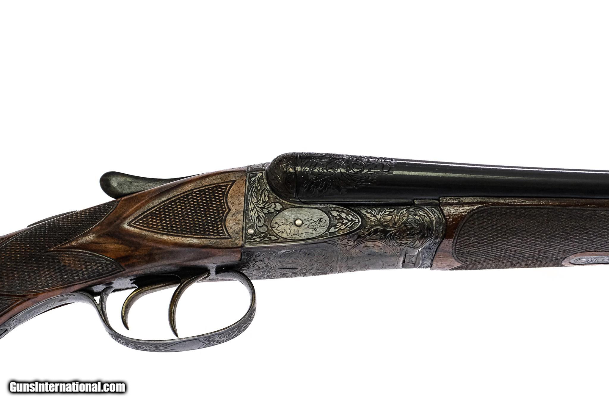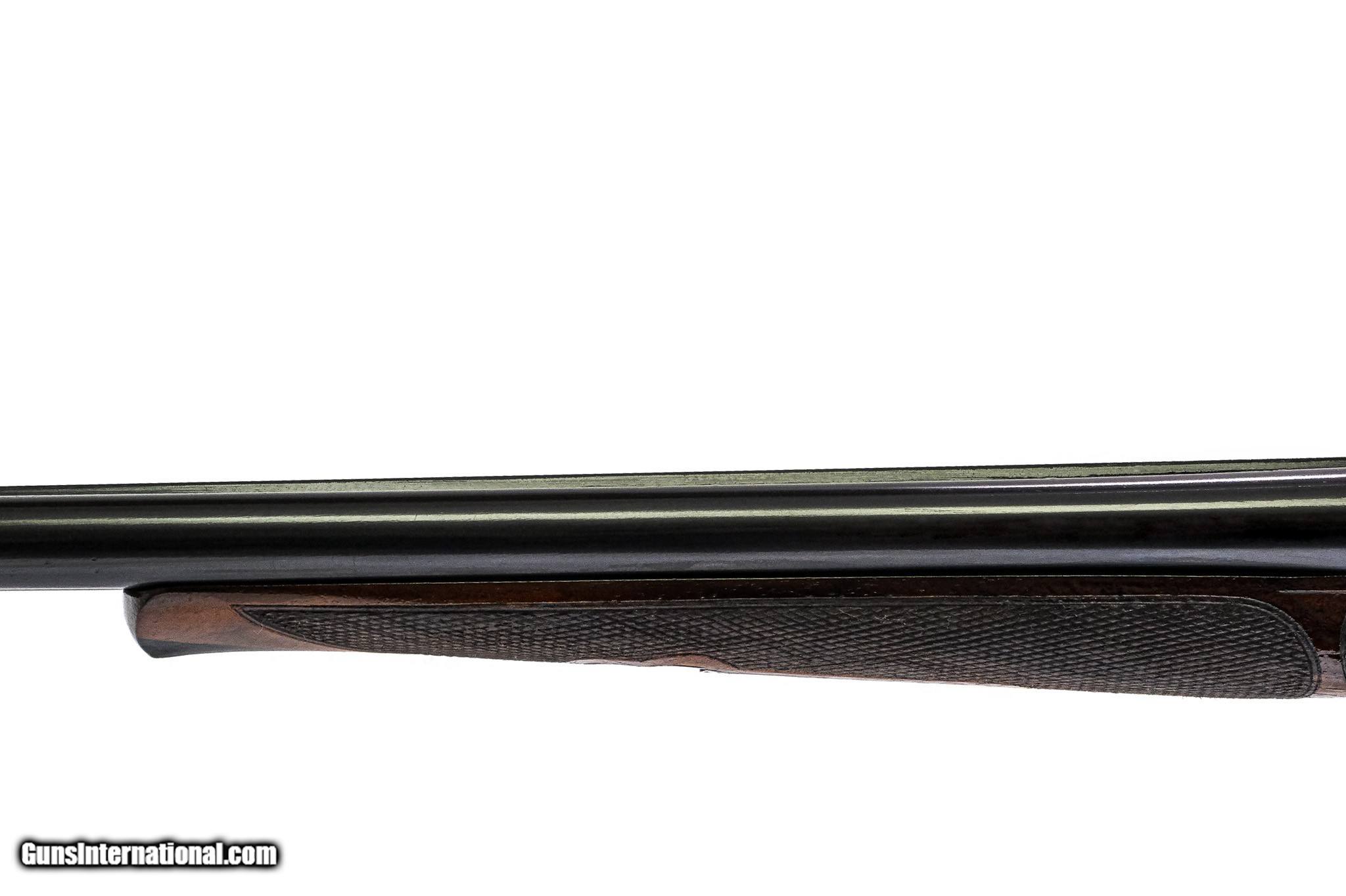Description: A.H. Fox - RARE XE Grade, SxS, 20ga. 26" Barrels Choked IC/M. Capped pistol grip stock, factory serrated butt plate, Schnabel forend, double triggers, AUTOMATIC EJECTORS, super clean and rare gun, 1923 Philadelphia gun with deep and sharp 2nd generation engraving, high condition with 90% or better case coloring, bluing, checkering, and wood finish, rarest of the rare XE grade small bore ejector gun with super high condition, available for immediate delivery. Inv: 73767 5 lbs. 10 oz. 14” x 1 ½” x 2 ¾” $22,999.00 SOLD |