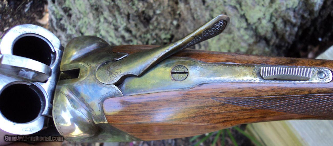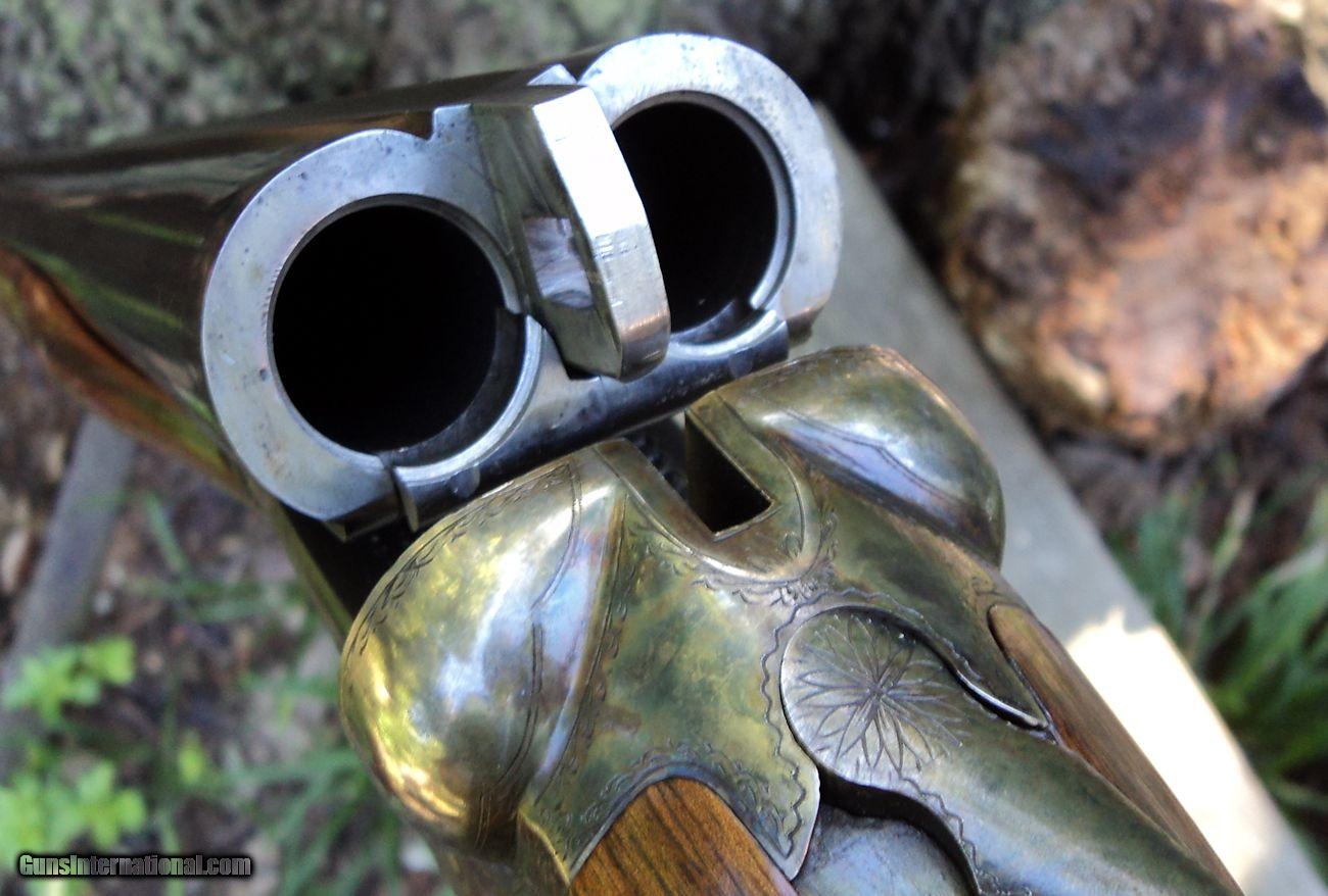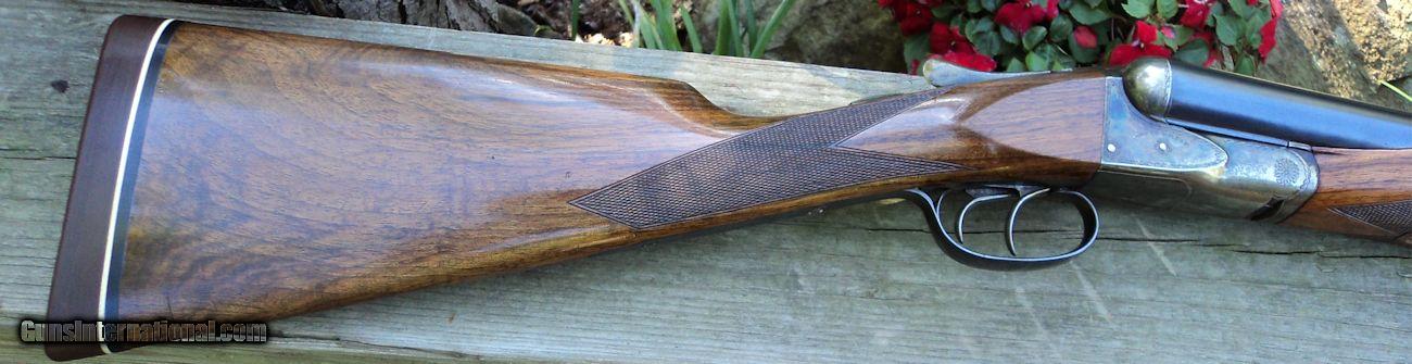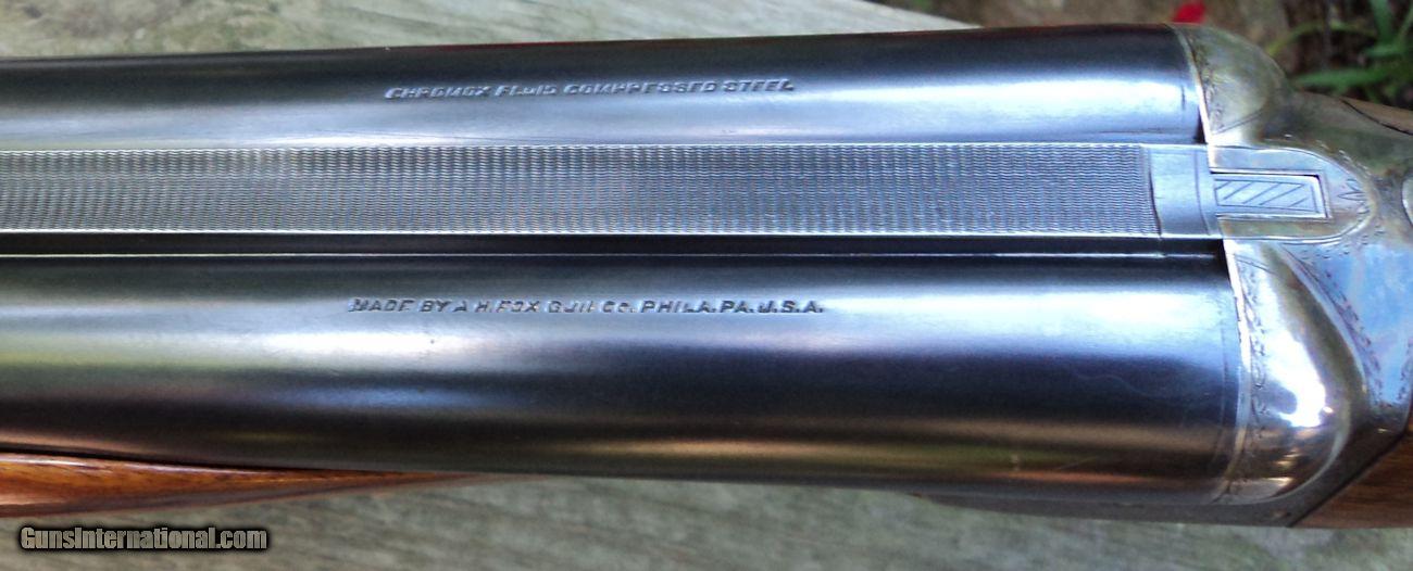 Description: *** SOLD.*** SOLD *** Lay-a-way to own, this hard to find 1923 A.H. Fox HE Grade Super Fox 3" 12 gauge (serial# 29412) with 30 inch "0" weight barrels choked full & x-full in very good condition. This big Fox SxS has very good bluing overall, with no dings or dents in the barrels. The top rib has no scratches or nicks. A good amount of case color remains on the receiver sides, bottom and top. Lock up is super tight and the top lever is to the right. The checkering on the straight stock and forearm are very good with a chip missing right behind the top tang, but it is very small. The bores are bright and shiney and are over-bored like most every Super Fox and this one measures .742 in both barrels. The right barrel measures at approximately .040 choke constriction and the left at .045 constriction by my measurements. The ejectors work with authority and throw two heavy A-Zoom snap caps halfway across the room. The stock has a LOP of 14 1/8" and the DAH is 2 3/8". This Super weighs in at approximately 9 lb 7 oz. The owner of this Super Fox did get a copy of the factory stock card, picture of which is shown below. If you have been waiting for that special Fox for your collection or hunting enjoyment, this sought after double will fit both needs very well. $80 SH&I to most of the lower 48. Eight far west states at $90 SH&I. Postal money orders for payment. No warranty stated or implied by the seller. Consignment gun-no return. C&R license accepted for delivery. Lay-a-way is available! Call 724-667-2345, ask for Tom SOLD Curio/Relic: Yes Manufacturer: A H Fox Model: HE Super Fox Serial Number: 29412 Bore: 742 Chambers: 3 inch Ejectors: yes Condition: very good Metal Condition: very good Wood Condition: very good Bore Condition: very good, no pitting, shiney Barrels: 30 inch Barrel Type: SxS Action: boxlock Triggers: double Gauge Info: 12 Stock: straight Stock Heel: 2 3/8 LOP: 14 1/8 Weight: 9 lb 7 oz Sights: single bead Manufacture Date: 1923 Choke Left: x-full Choke Right: full Engraving: HE |