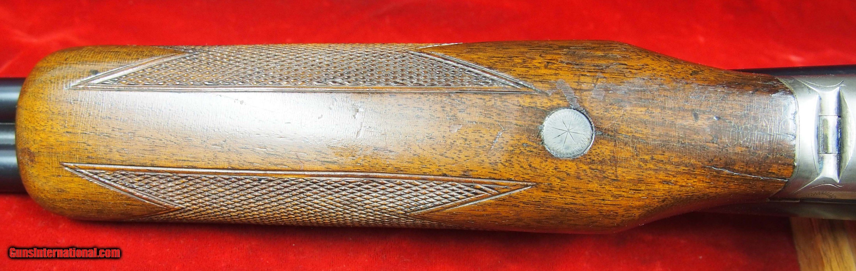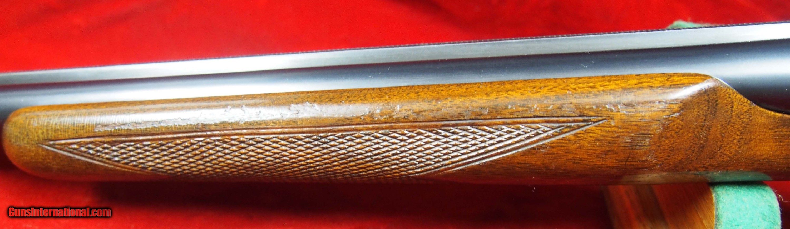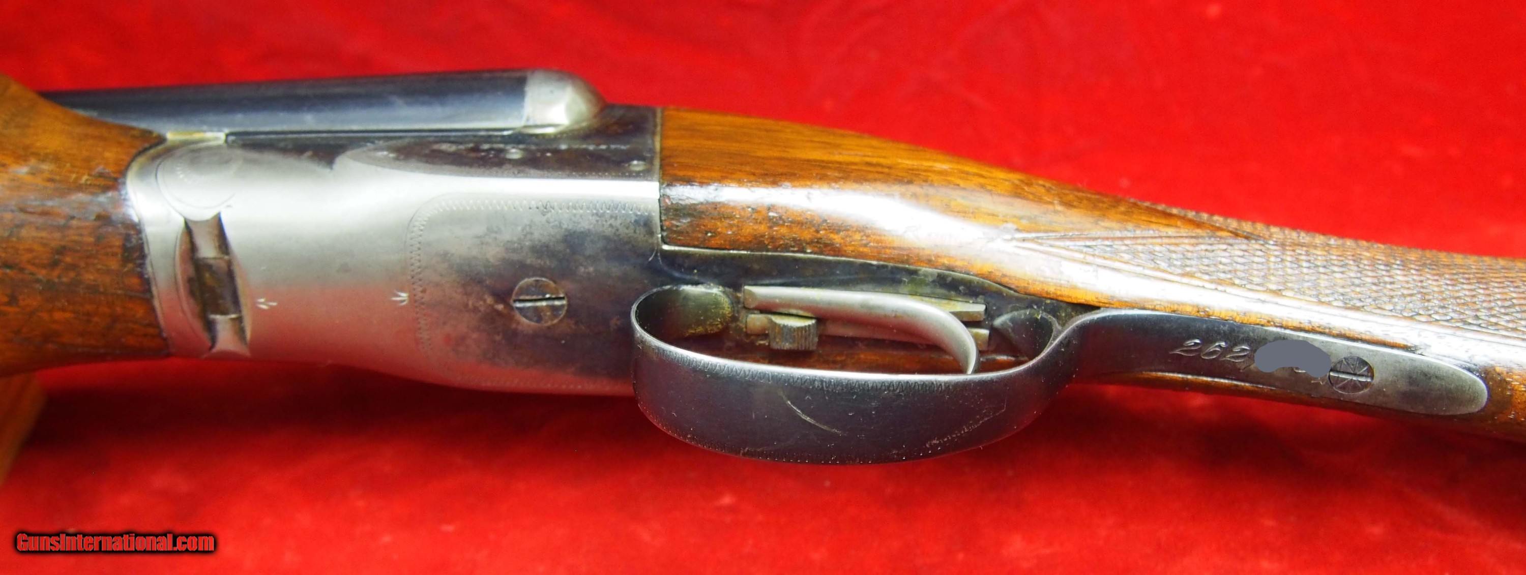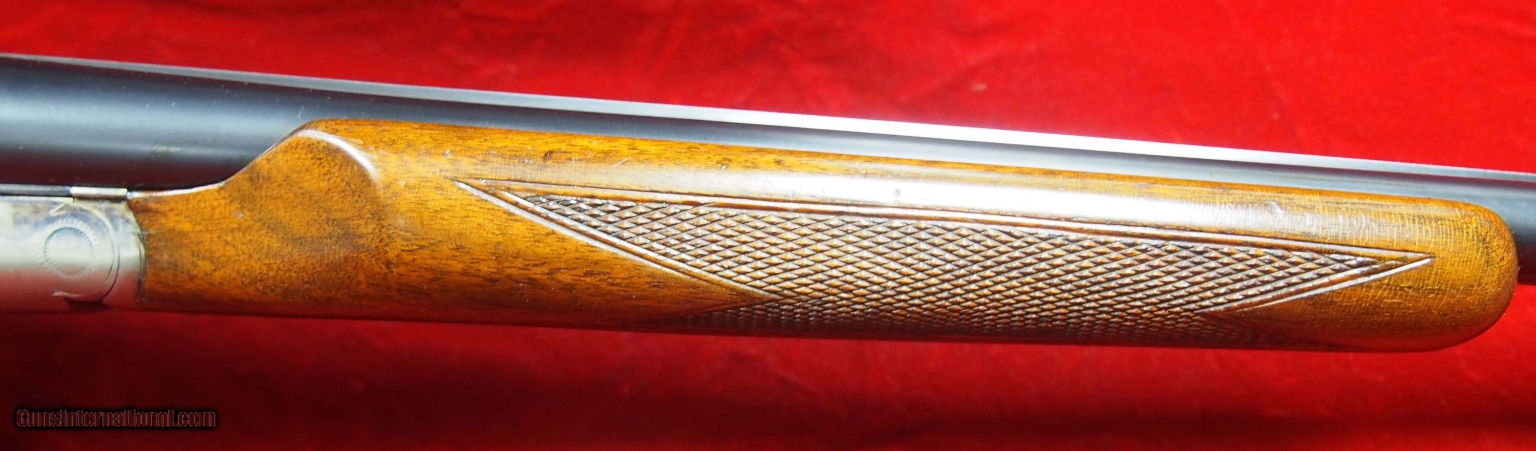 Description: SOLD A.H. Fox Sterlingworth Skeet & Upland 20 Ga SxS This is another rare Sterlingworth in the Fox Collectors realm. This one has every option except mid bead that was available for the Sterlingworth Skeet & Upland. Kautsky single selective trigger, ejectors, beavertail fore-end, straight grip. SN 262700, Made in Utica, NY in 1930. 26” barrels. 2 ¾” ” chambers. Barrels are choked R-.003” L- .015”. Excellent bores, Drop 1 3/8” x 2 3/8”, LOP 14 1/4” over pad. Weight 6 lbs. 7 oz. Bluing is in excellent condition. 60%+ case colors. Lever is to the right, Tight and on face. Small tight crack in forend at rear. Has hunting wear. look over photos. ejectors are timed perfectly. ASK YOUR QUESTIONS BEFORE . I reserve the right to cancel the if I sell the gun in my shop. I will not end the once the reserve has been met. I will send payment instructions once the has ended, please wait for it. Shipping & Insurance by UPS to lower 48 states $60.00 plus insurance based on selling price. . AK and HI require additional funds. I do not use FEDEX. PAYMENT: Cert Check or Money orders. NO PERSONAL CHECKS, NO PAYPAL (PAYPAL is an anti gun company that supports efforts to restrict firearms ownership) . I don’t do Echecks or Credit Cards. FFL or C&R required. Three day non shooting, no screw turning, no disassembly inspection. I am an FFL Licensed dealer. I include a copy of my FFL with the gun when I ship to your dealer. Dealers can mail or email their FFL to me. I do not have a FAX line. I SHIP TO CALIFORNIA DEALERS. Three day NON FIRING inspection. NO RETURNS if fired, altered or damaged in any way. SHIPPING: I usually ship within 7 days of receipt of your payment. But sometimes have family obligations so once in a while, due to vacations etc. I may be a bit slow. INSURANCE IS MANDATORY RETURNS: NO RETURN IF screws turned, gun has been fired, damaged, modified or altered from original shipped condition. Returns must be shipped in same box as I sent it and fully insured. You get the purchase price only, no refund on shipping, ins. or anything else. New York State Purchasers of any item must provide a copy of their NYS Resale Certificate and state form for exemption from sales tax or will be charged sales tax in the destination city/county. If you return an item and don’t insure it for the value that I insured it when I sent it to you, I will not accept it back and you will own it. NYS purchasers must pay 8 % sales tax or submit NYS ST120 resale certificate. All ATF rules and state laws apply. Firearms shipped to "Licensed Premises" only! REFUNDS: Refunds are made for price of the item not including shipping, Insurance, any other fees. SOLD Curio/Relic: Yes Shotgun Gauge: 20 Gauge Manufacturer: A.H. Fox Model: Sterlingworth Skeet & Upland Barrel Length: 26 Triggers: Single |
