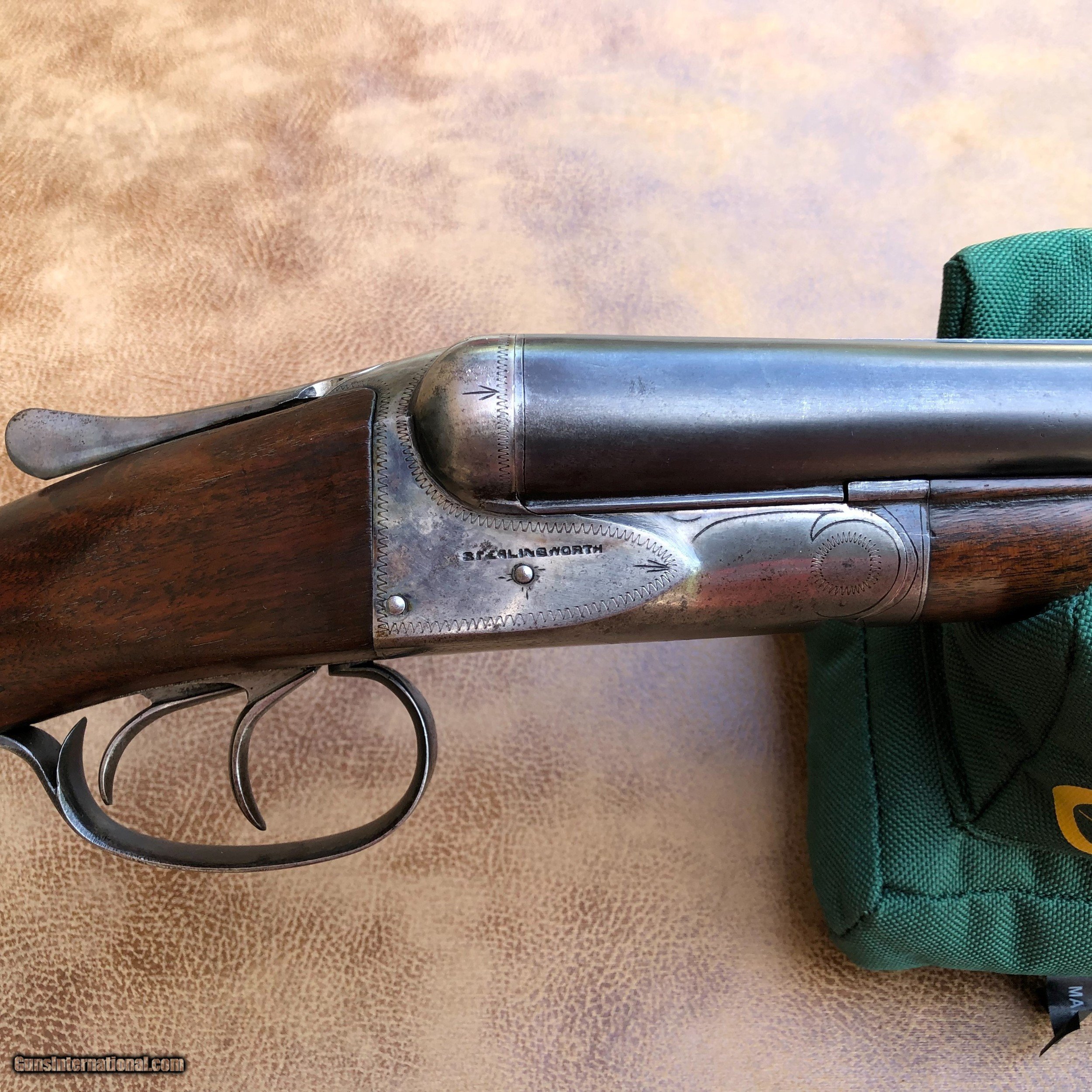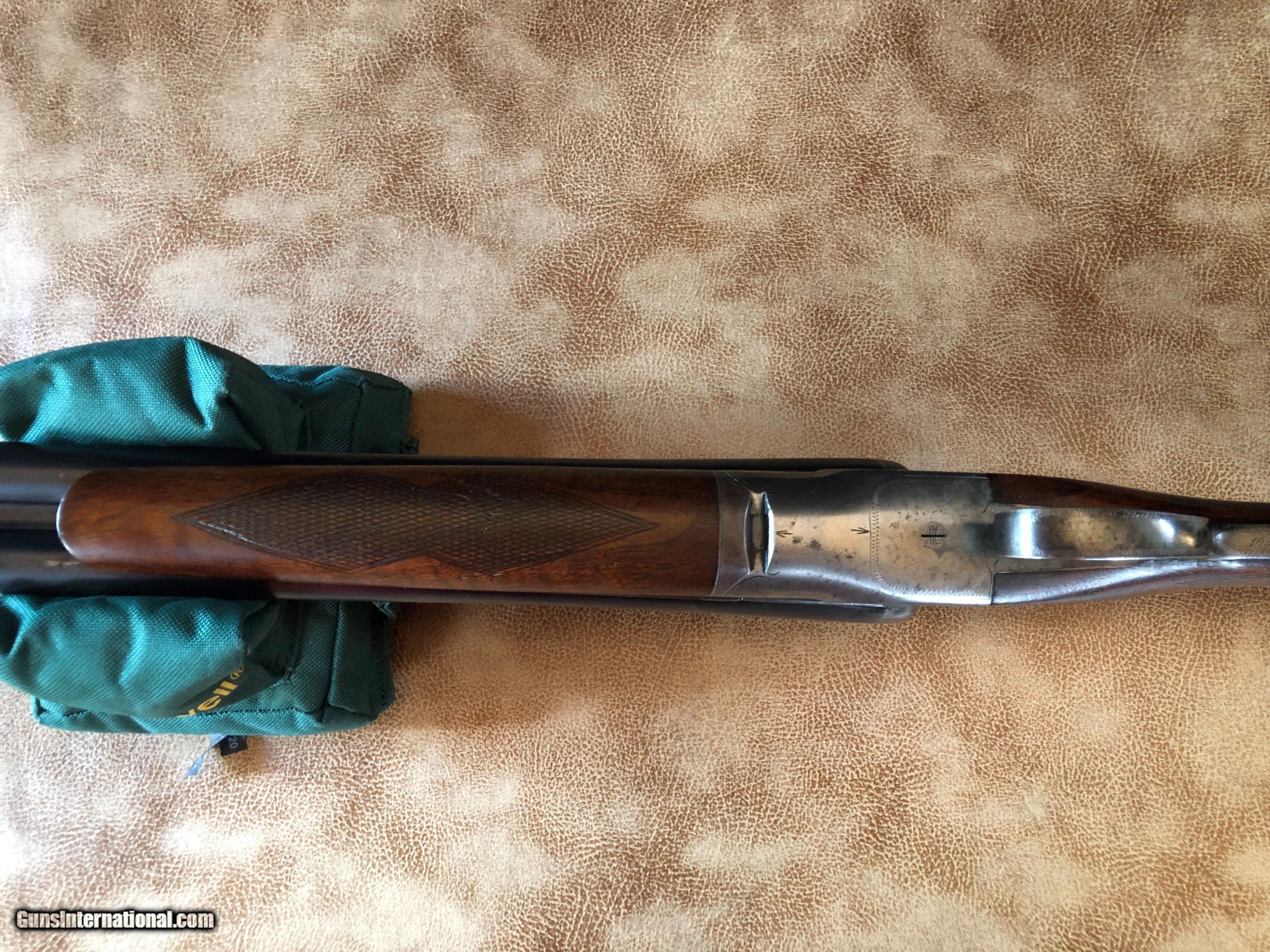 Description: A.H. Fox Sterlingworth 12ga. Trap model with rare and desirable 32" 2-weight barrels and Full Pistol Grip. Serial #104036 (ca. 1926). Excellent bores measure .729/.729, chokes 4 1/2" long with .040 R / .041 L restrictions, min wall thickness .040 R / .038 L. Chambers measure 2 5/8". Stock measures 1 3/4" DAC, 3" DAH, 14 1/4" LOP to front trigger. Gun weighs 7 lbs 6 oz. Gun is all original showing some hunting/handling wear - see photos. Excellent mechanical condition, barrels ring well and are tight and on face, lever well right. $1500 shipped by FedEx ground to your FFL. SOLD Curio/Relic: Yes Shotgun Gauge: 12 Gauge Manufacturer: A.H. Fox Model: Sterlingworth Trap Serial Number: 104036 Barrel Length: 32 Ejectors: NO |