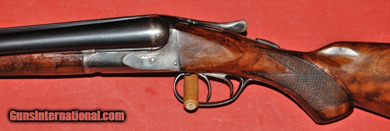 Description: A.H.Fox Sterlingworth Trap 12ga.Built in 1927 according to the factory letter.This gun has 32" barrels choked full (.043") and full (.043").It retains 70% of the original case colors,95% of the original barrel blue,and 99% of the original wood finish.It has a pistol grip stock,double triggers,extractors,and a splinter forend.It also has 3" chambers.The stock dimensions are 141/4"LOP over the original buttplate,11/2" at comb,and 21/2" at heel.In over 40 years of collecting fine doubles,this is the only trap Sterlingworth I have seen.A rare and collectible Fox in excellent all original condtion.C&R eligible. SOLD Curio/Relic: Yes |