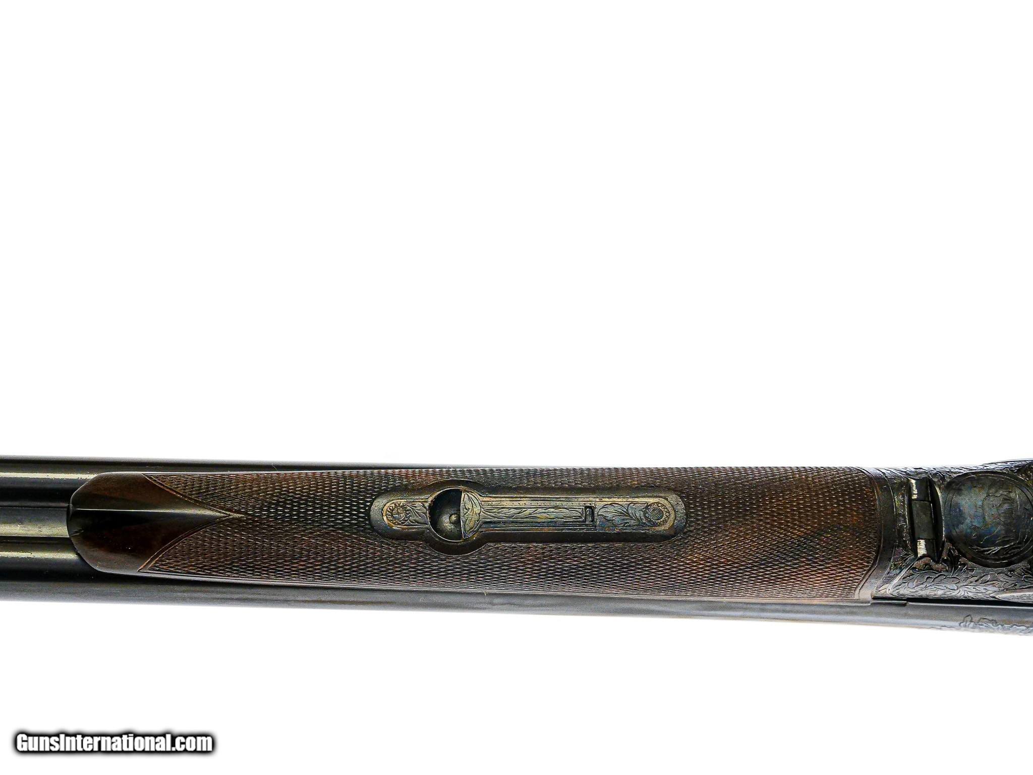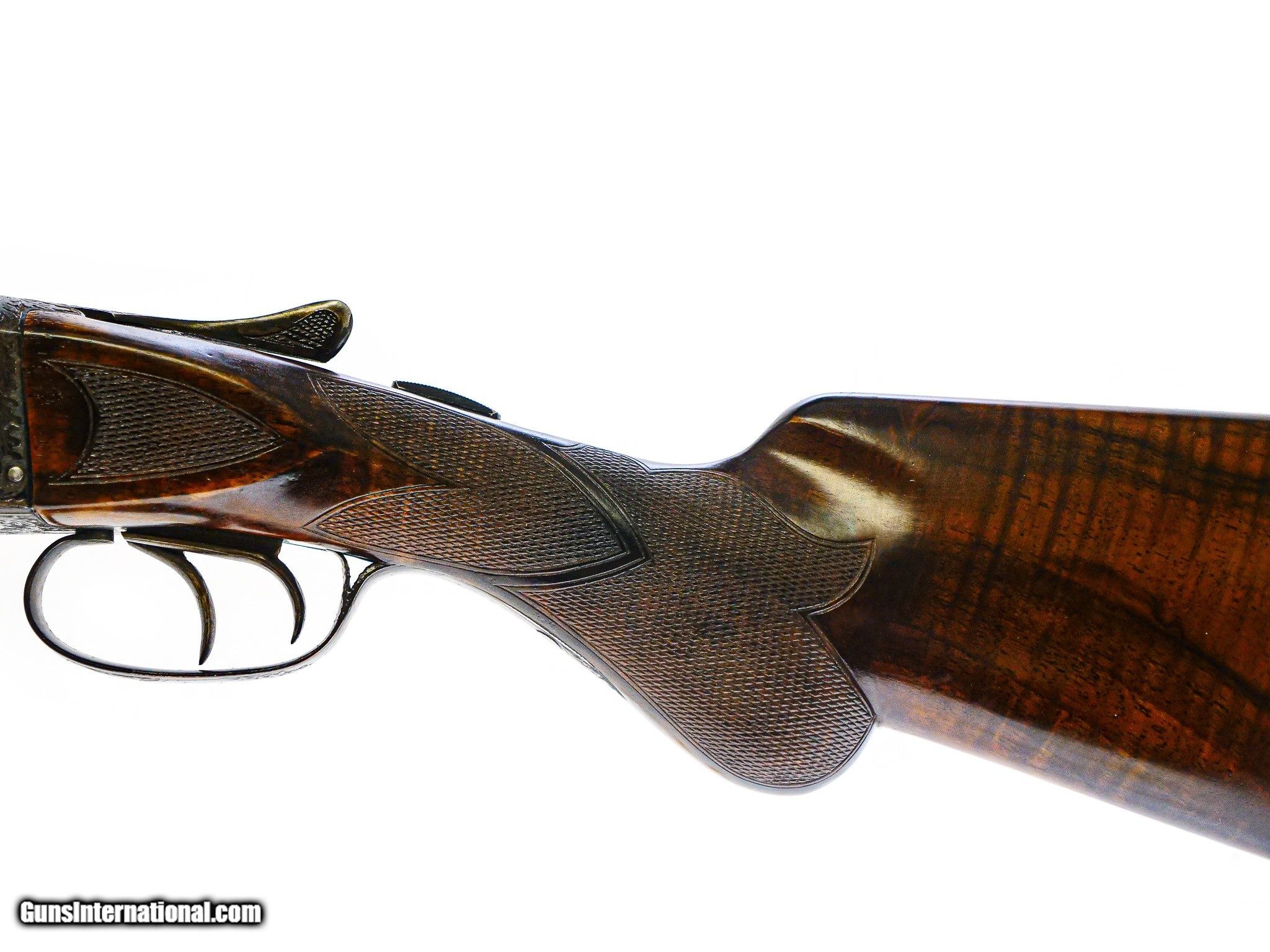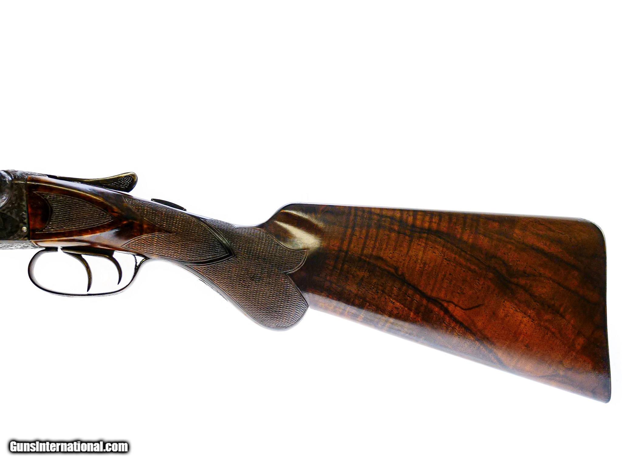 Description: A.H. Fox - XE Grade, SxS, 16ga. 28" Barrels Choked M/F. Semi-pistol grip, skeleton butt, 14 1/8" Built for Abercrombie & Fitch (we have the card) Has virtually all the blue and wood finish, but it does have minor handling marks and some patina on the case color. But It has never been cleaned. Double trigger automatic ejector. Philadelphia (PA) Gun.. outstanding example! Inv: 70159 $25,000.00 SOLD |