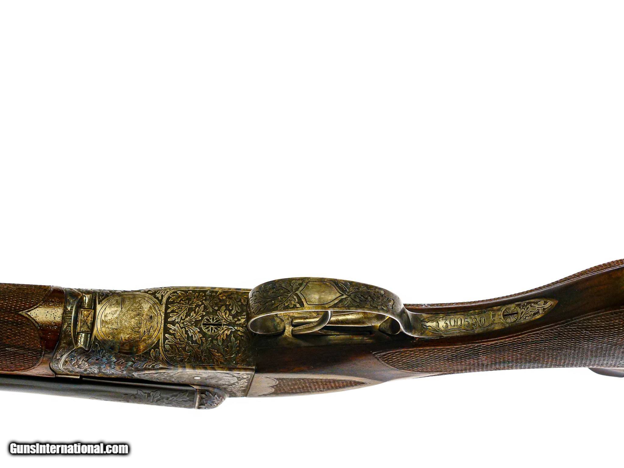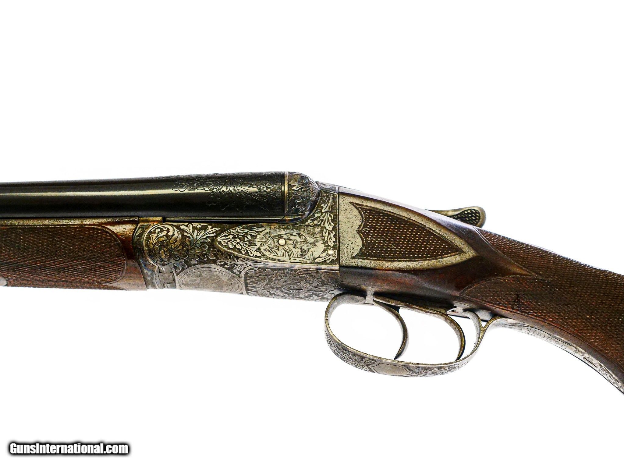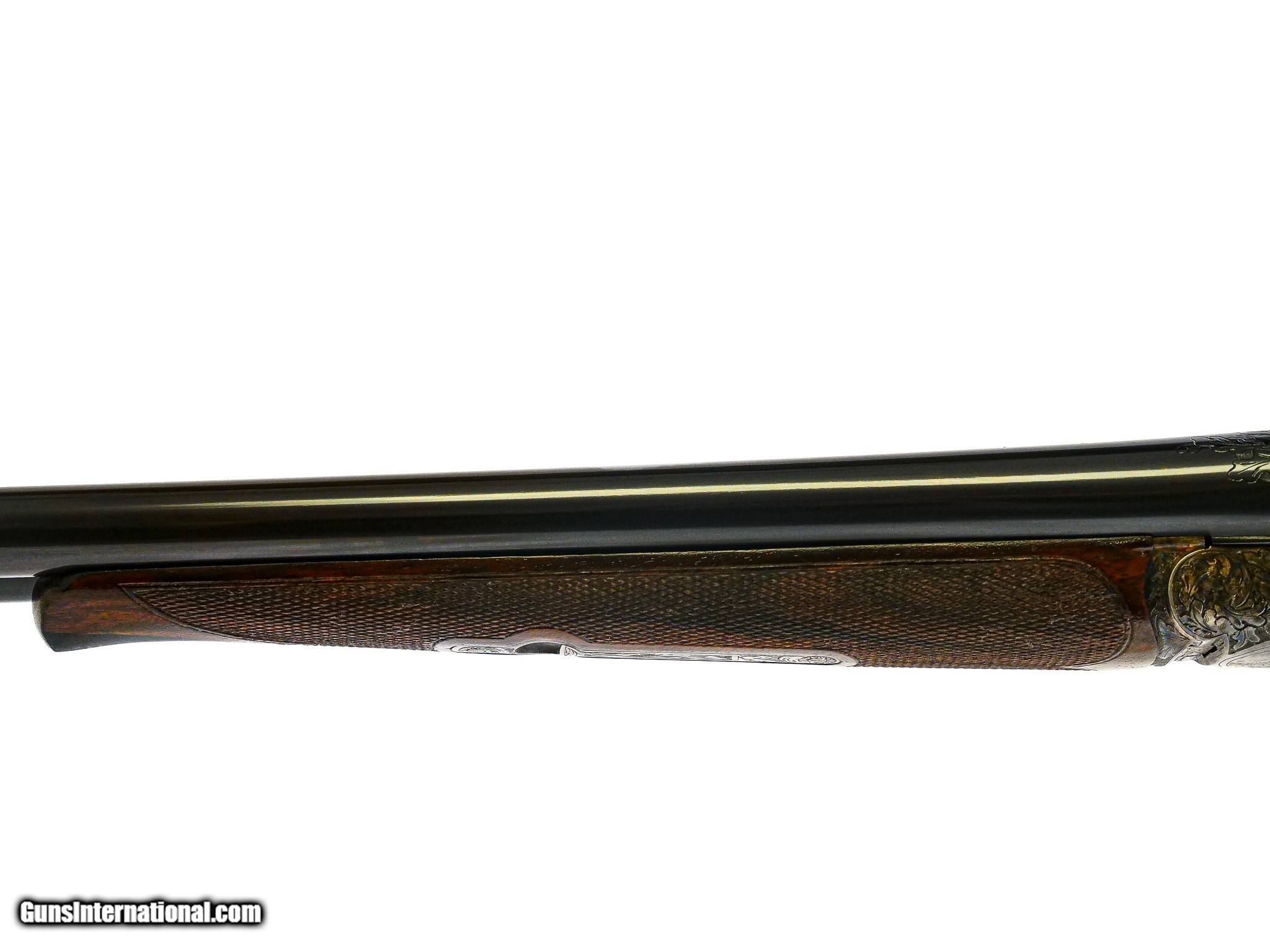 Description: A.H. Fox - XE Grade, SxS, 16ga. 30" Chromox Streel Barrels Choked F/IM. PA gun, rounded pistol grip, butt plate, double trigger, auto ejector, Schnabel forend, 80% case color, perfect screws, 30” Chromox barrels, Barrels choked at F/IM, beautiful deep engraving. Inv: 70339 6 lbs. 7 oz. 14 ½" x 1 3/8" x 2 ¾" $24,000.00 SOLD |