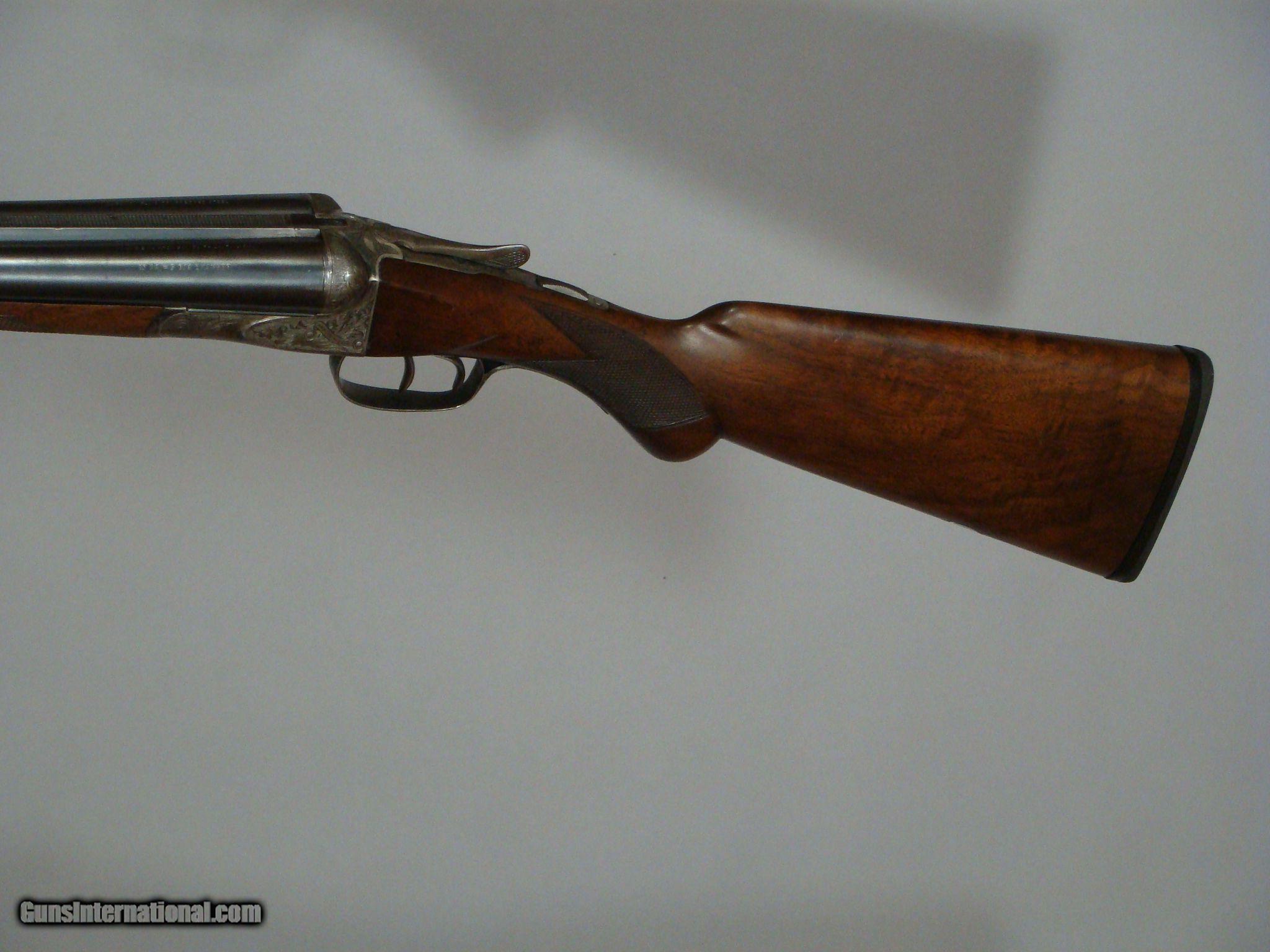 Description: Later style engraving which remains crisp, tight gun, full length wood, pad installed but original plate and screws included. Stock measures 1&3/4" x 2&7/8" choked .007" and .010 SOLD Curio/Relic: Yes |