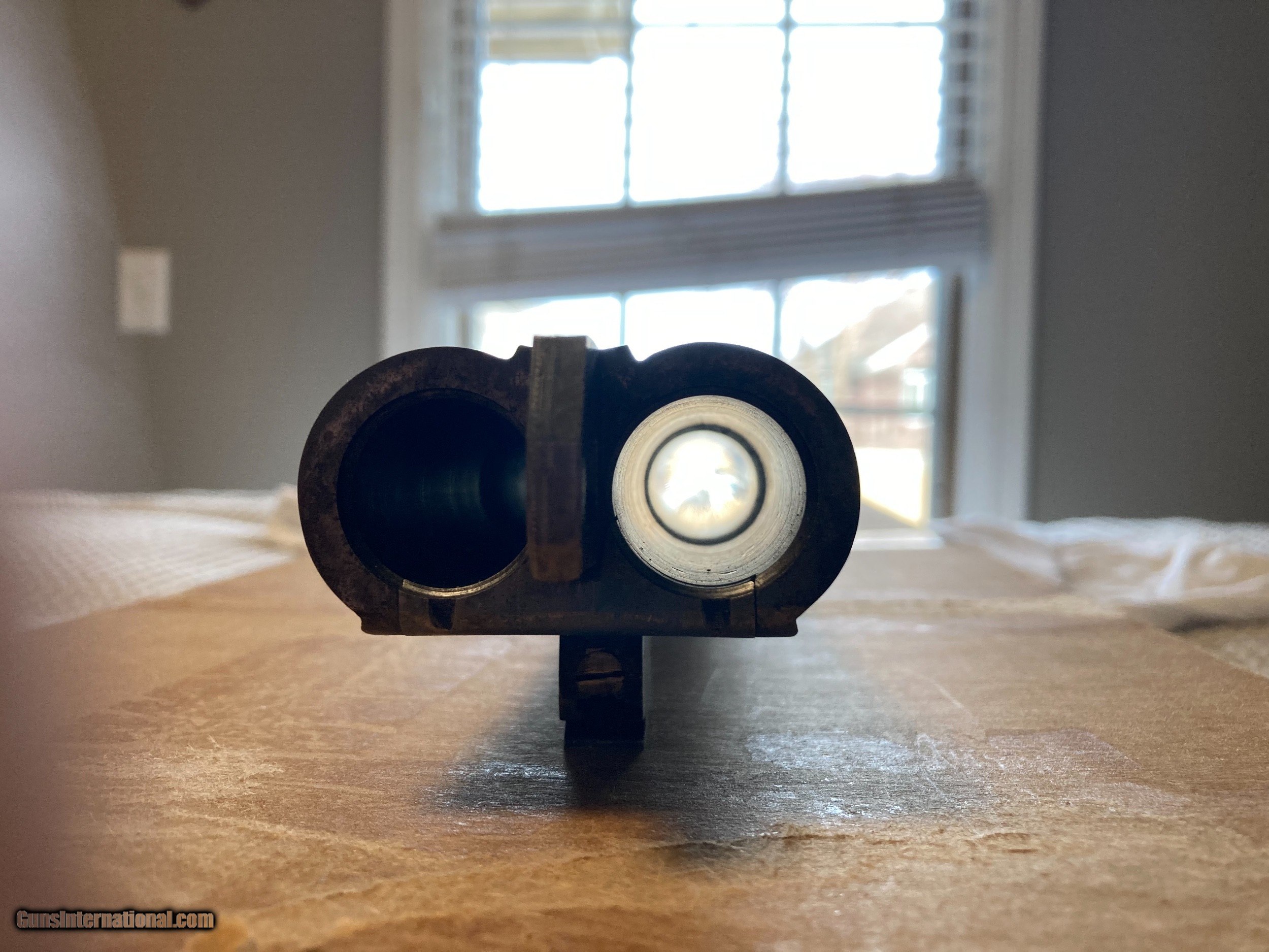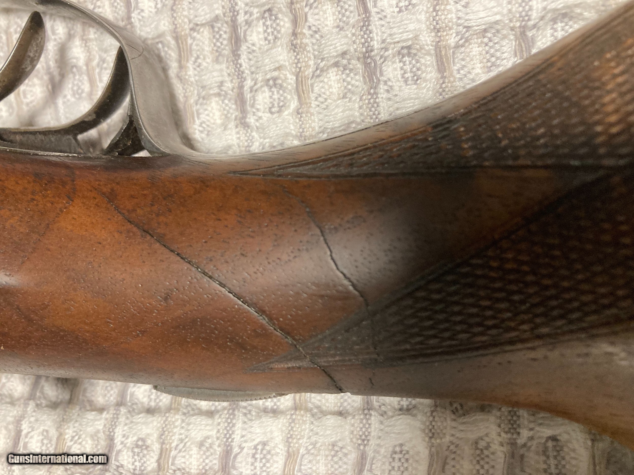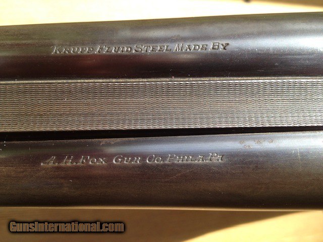 Description: AH Fox 12 gauge double 30" Krupp Steel barrels, M & F chokes, 2 3/4" chambers, very good shiny bores. Crack in wrist of stock was glued and pinned by a professsional stock maker. Locks up tight. Traces of case colors, some freckling where it was carried on the lower right barrel and right receiver area. Was $750, now $695. plus $45. shipping. USPS Money order. Ken Longe, 18313 Van Camp Drive, Omaha, NE 68130-4248. Phone 402-203-8422. SOLD Curio/Relic: Yes Shotgun Gauge: 12 Gauge Manufacturer: AH Fox Model: A Serial Number: 174xx Barrel Length: 30 Bore: very good/shiny Chambers: 2 3/4 Ejectors: extractors, no ejectors Condition: Good Metal Condition: Good/excellent Wood Condition: repaired stock Bore Condition: very good Barrels: double Barrel Type: steel Triggers: double Fore End: splinter Butt Pad: plate LOP: 14 Rib: matted Sights: front bead Manufacture Date: 1910 Chokes: M&F Choke Left: full Choke Right: modified Case: 10% Item Location: Nebraska |