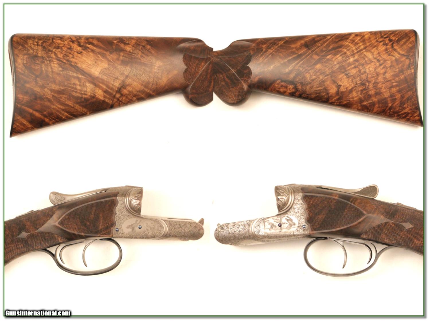 Description: This beauty is a custom made Philadelphia Fox fully engraved and restocked with exhibition Circasion Walnut. This was deisgned by the owner and engraved with a Southeastern Coastal Plains theme with native birds including quail and Eastern pines. Both metalwork and stock were done by Dan Rossiter of Custom Stocks and Steel. Master engraver Geoffrey Gournet executed all engraving. This 16 Gauge has No. 3 weight 28in rust blued barrels with hand matted rib and bored Modifed and Improved cylinder. The checkering is 28 in LPI with 14 ½ in pull and 1/8 in right handed cast. This is a one of a kind masterprice with no detail missed. It is unfired after completion and will make a perfect addition to anyones collection. I have many high resolution pictures if needed. I am selling this one on consignment and as such lay-a-way can’t be used. It does of course have the standard 3 day inspection. Shipping and insurance is $200. Please email me with any questions or larger pictures. (I now consign quality firearms only 10%! Let me know if you have any you would like to sell!) [15-0168] Terms & Conditions Payment: Payment is by Money Order, Cashiers Check or Personal Check. I can now also accept MasterCard and Visa with a 3% convenience fee. PayPal can be used for some items but never firearms. Please let us know if you would like to pay via PayPal. Shipping: The shipping charge will be listed in each description. It is $30 for most guns. Some heavy guns or those insured for over $2000 may be higher. Shipments to Alaska and Hawaii are higher because air shipment is required. Most firearms are shipped within 5 days of receipt of payment. We prefer shipping at the beginning of the week to avoid firearms in transit over weekends. We package all shipments carefully and insure them for the full purchase price, rounded up to the next $100. In the unlikely event that damage occurs, it is important that you save all packaging material for the claims process. Optics are shipped Priority Mail and most other non-firearm shipments are shipped First Class. Returns: Our return policy is simple. If for any reason you are not pleased with your purchase, you may return your item for a refund. The only exception is ammunition, it cannot be returned. It is important to us that you are happy. Guns cannot be fired or dissembled before returning them and must be returned in the same condition as received. Notification of a return must occur with-in 3 days of receipt at your dealer. Shipping, convenience and dealer fees are not refundable and are the responsibility of the buyer. Lay-a-way: If needed, we offer a 60 day lay-a-way option on most firearms. It is 1/3 now, 1/3 in 30 days and 1/3 in 60 days. Lay-a-way firearm sales are final. Consigning your firearms with Shooting Investments: We will help you get top dollar for your firearms. While most local guns shops charge 20% or more, our fee is only 10% with a minimum of $50. At your local gun shop it might take months to sell. Selling on-line provides instant access to thousands of interested buyers. You won’t find any other on-line dealer willing to sell your firearms for only 10% or listing every gun on 4 separate s. Selling through an House typically costs 15% and you have to wait several months to sell and longer to receive funds. If properly priced, we will sell your firearms in a week or two. Send us an email or give us a call and we’ll explain how easy it is for you to get top dollar. Trading: We collect guns and usually just trade for guns we want to add to our collections. We often sell guns for others wanting to purchase one of ours. We find this the most fair to both of us. Our Commission is only 10% and we hold the gun you want until yours sells. Please contact us if you want to sell one of yours to buy one of ours. Help for California Buyers: We are happy to ship to California. It is the buyer’s responsibility to make sure any item you buy is legal in your state. We are also happy to help with your purchase of a firearm from someone other than us. If you see a gun you would like to buy but the seller can’t or won’t ship to California we can help. You buy the gun and have it shipped to us. We’ll then ship it to your California dealer. The cost for this service is only $30 + shipping. Let me know if we can help! SOLD |