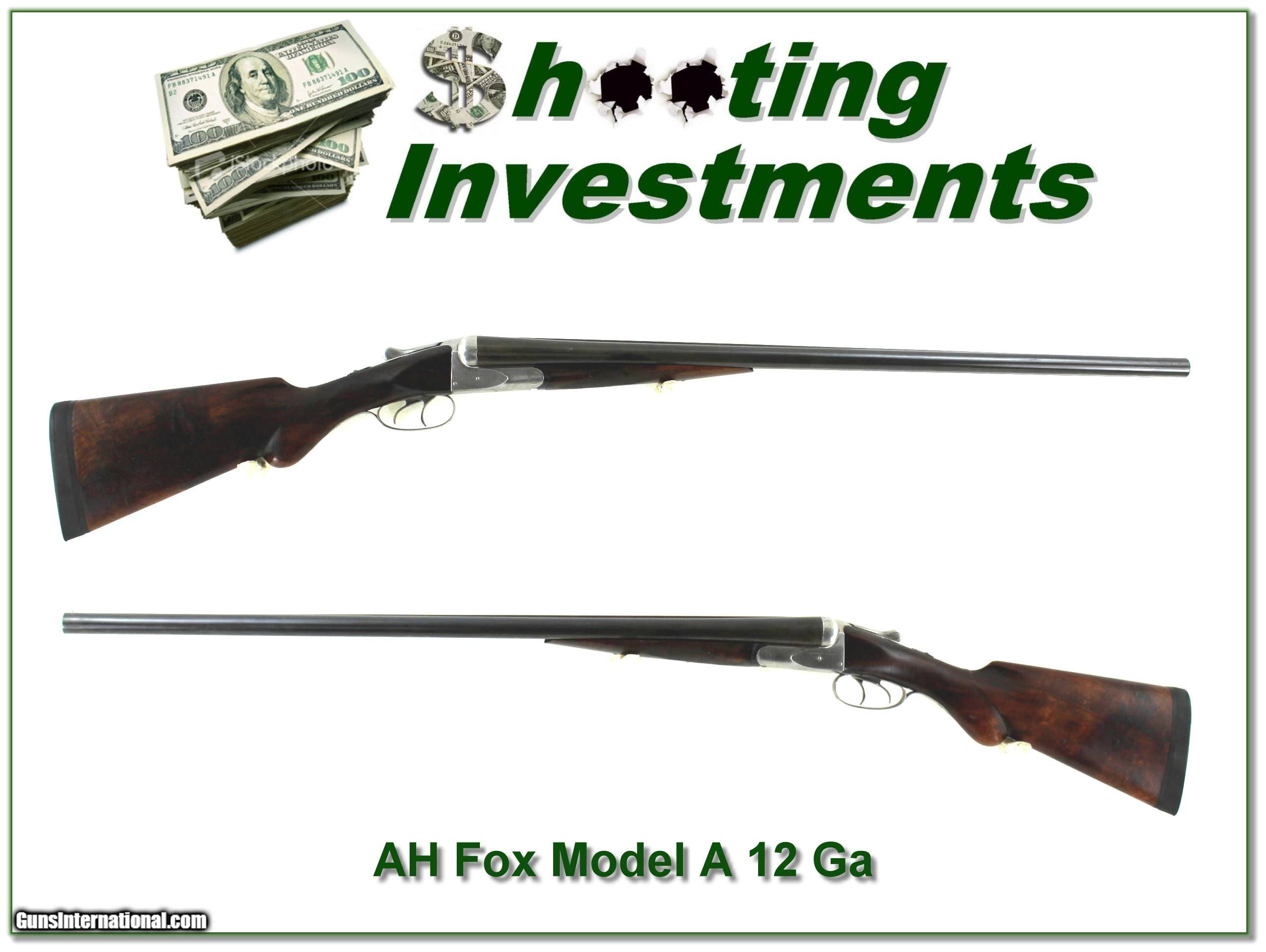 Description: This is a AH Fox A Grade 12 Gauge. It has 28in barrel. The LOP is 14in over pad. It doesn’t have much finished left but locks tight. It will make a nice fox you can shoot! I am selling this one on consignment and as such lay-a-way can’t be used. It does of course have the standard 3-day inspection. Shipping and insurance is $49. Please email me with any questions or larger pictures. (Consign your quality firearms with Shooting Investments for only 12%! Let me know if you have any you would like to sell!) 23-0204 Payment: Payment is by Money Order, Cashier’s Check or Personal Check. I can now also accept Credit Cards (MasterCard, Visa, Discover & American Express) with a 3% convenience fee. Shipping: The shipping charge will be listed in each description. It is $49 for most firearms. Some heavy guns or those insured for over $2000 will be higher. Shipments to Alaska and Hawaii are higher because air shipment is required. Most firearms are shipped on Tuesday and Thursday and usually in 5 days of receipt of payment. We package all shipments carefully and insure them. Optics are shipped Priority Mail and most other non-firearm shipments are shipped First Class. Returns: Our return policy is simple. If for any reason you are not pleased with your purchase, you may return your item for a full refund of purchase price. Ammunition cannot be returned. It is important to us that you are happy. Guns cannot be fired or dissembled before returning them and they must be returned in the same condition as received. Notification of a return must occur within 3 days of receipt at your dealer. Shipping, convenience and dealer fees are not refundable and are the responsibility of the buyer. Lay-a-way: If needed, we offer a 60 day lay-a-way option on most firearms. It is 1/3 now, 1/3 in 30 days and 1/3 in 60 days. Lay-a-way firearm sales are final and cannot be returned. If a lay-a-way is not completed the first payment cannot be refunded. Consigning your firearms with Shooting Investments: We will help you get top dollar for your firearms. While most local guns shops charge 20% or more, our fee is only 12% with a minimum of $75. At your local gun shop it might take months to sell. Selling on-line provides instant access to thousands of interested buyers. You won’t find any other on-line dealer willing to sell your firearms for only 12% or listing every gun on 3 separate s. Selling through an House typically costs the seller 15% and the buyer an addition 15% (so 30%) and you have to wait several months to sell and longer to receive funds. If properly priced, we will sell your firearms within a few weeks. Send us an email or give us a call and we’ll explain how easy it is for you to get top dollar. Trading: Trading for us is really just buying your gun to re-sell. If you have a gun you want to trade, please email a picture and we will let you know what we can give for it. You will always get more if we sell it for you on consignment. SOLD |