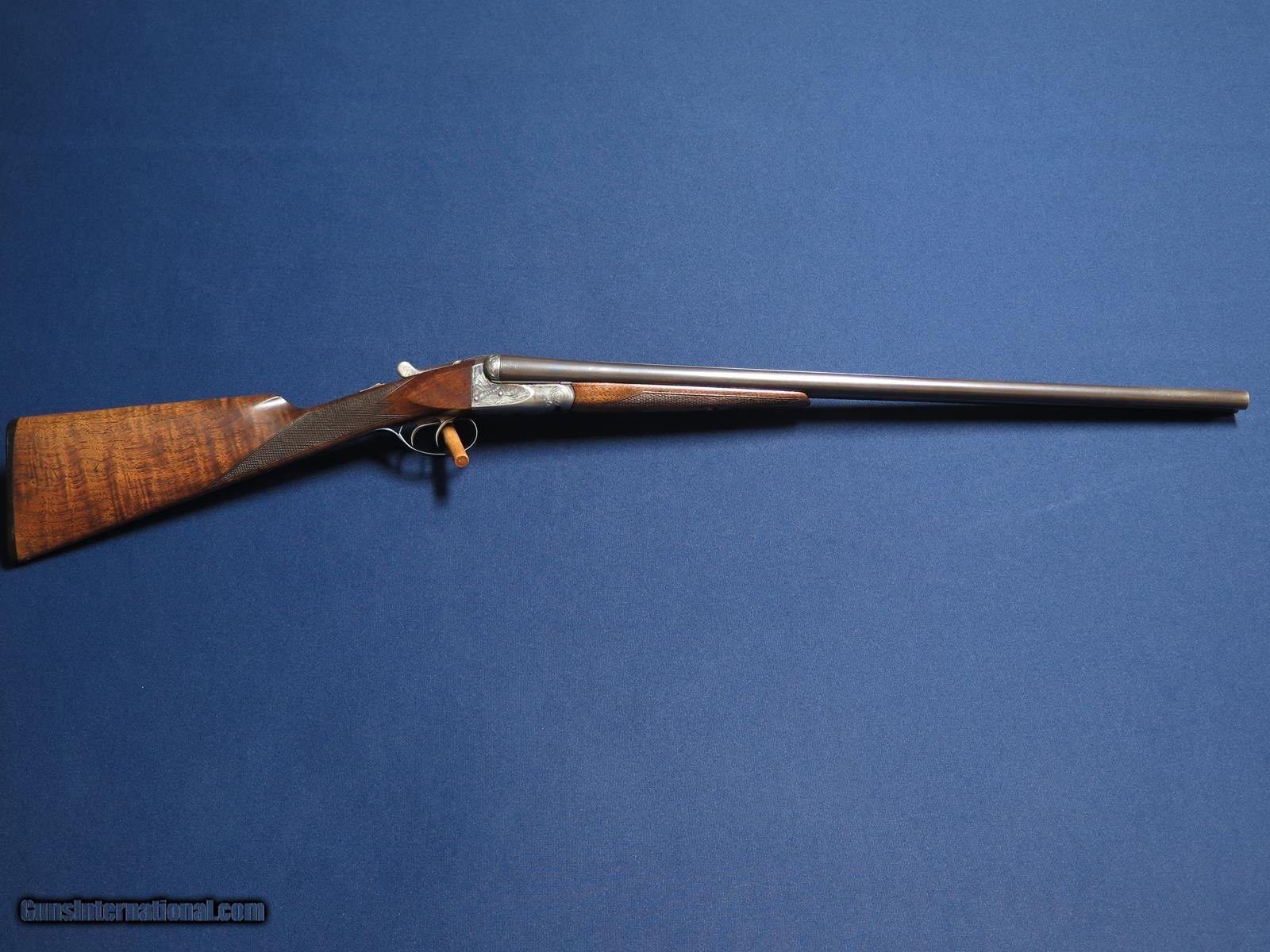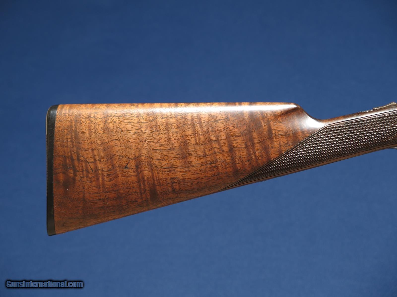 Description: AH Fox A Grade 20ga. Savage Arms Utica. 26 inch Mod and Full. .018 & .030. Double triggers. Extractors. Straight grip. 14 3/8 LOP butt plate. 30 % case coloring. 95-96% blue. SOLD |