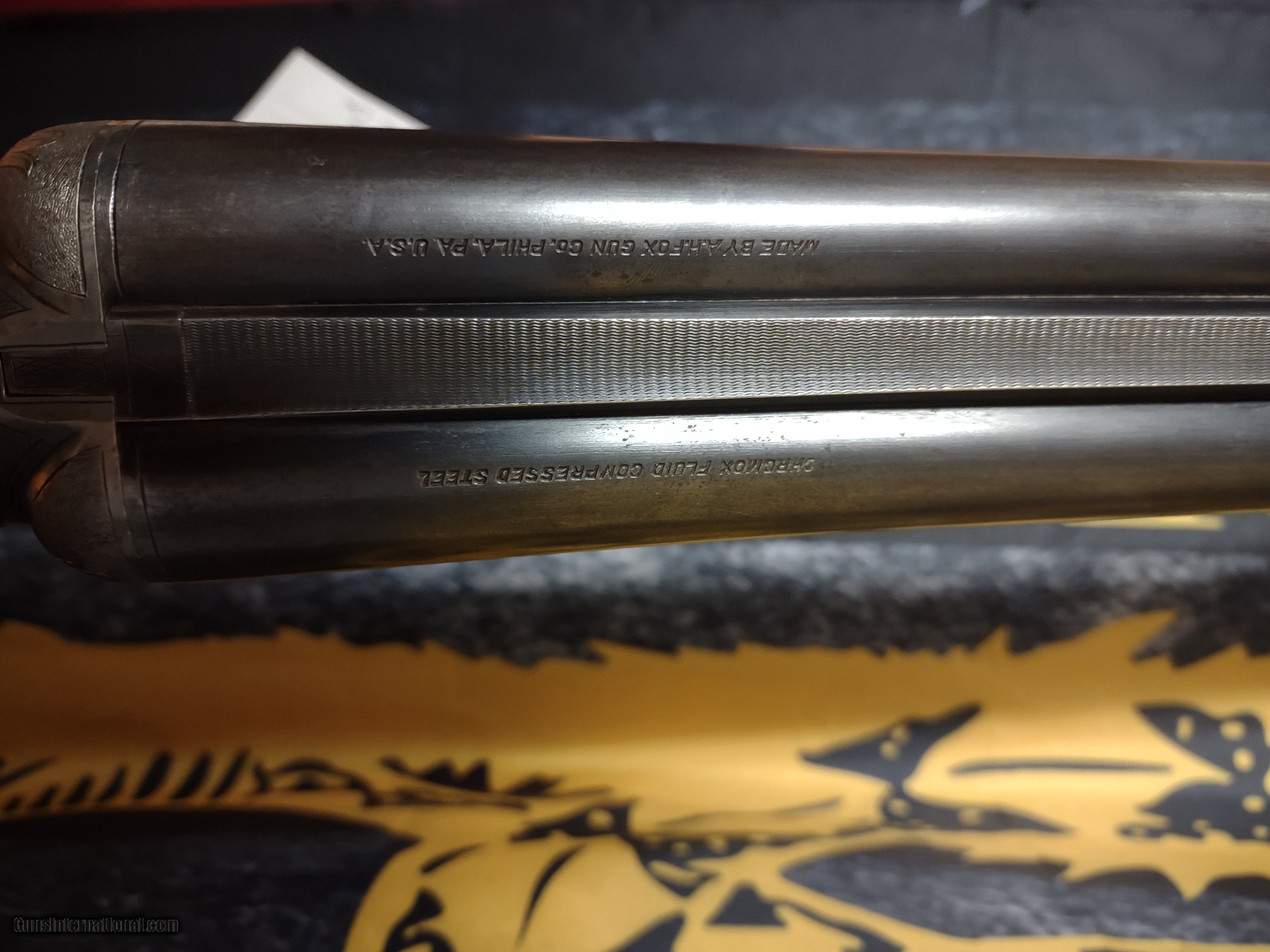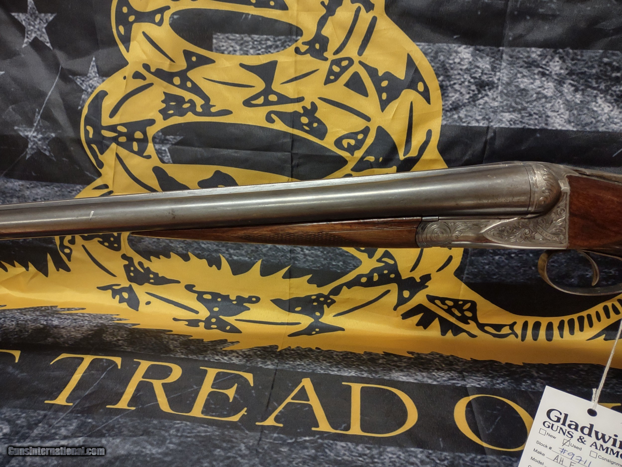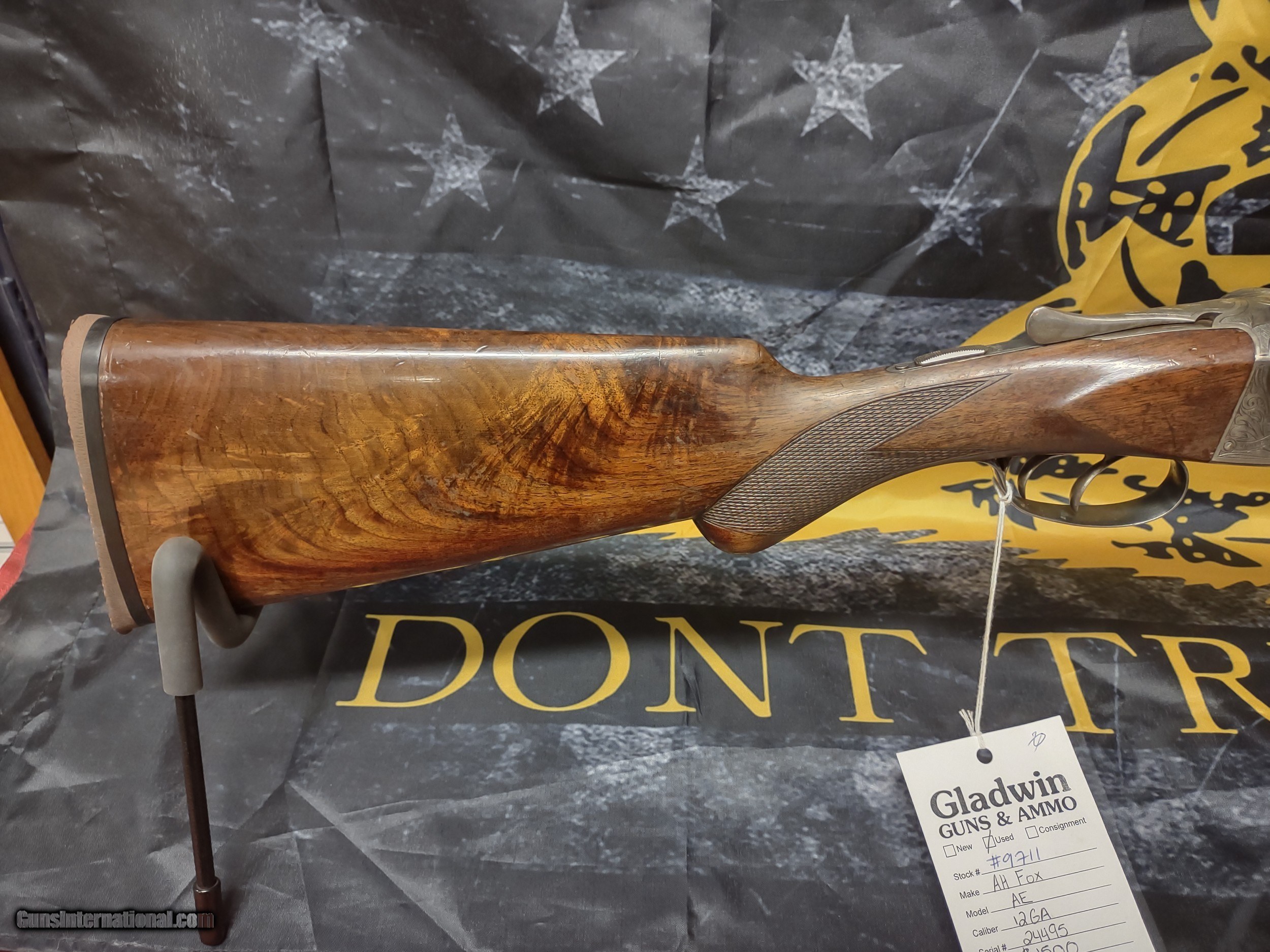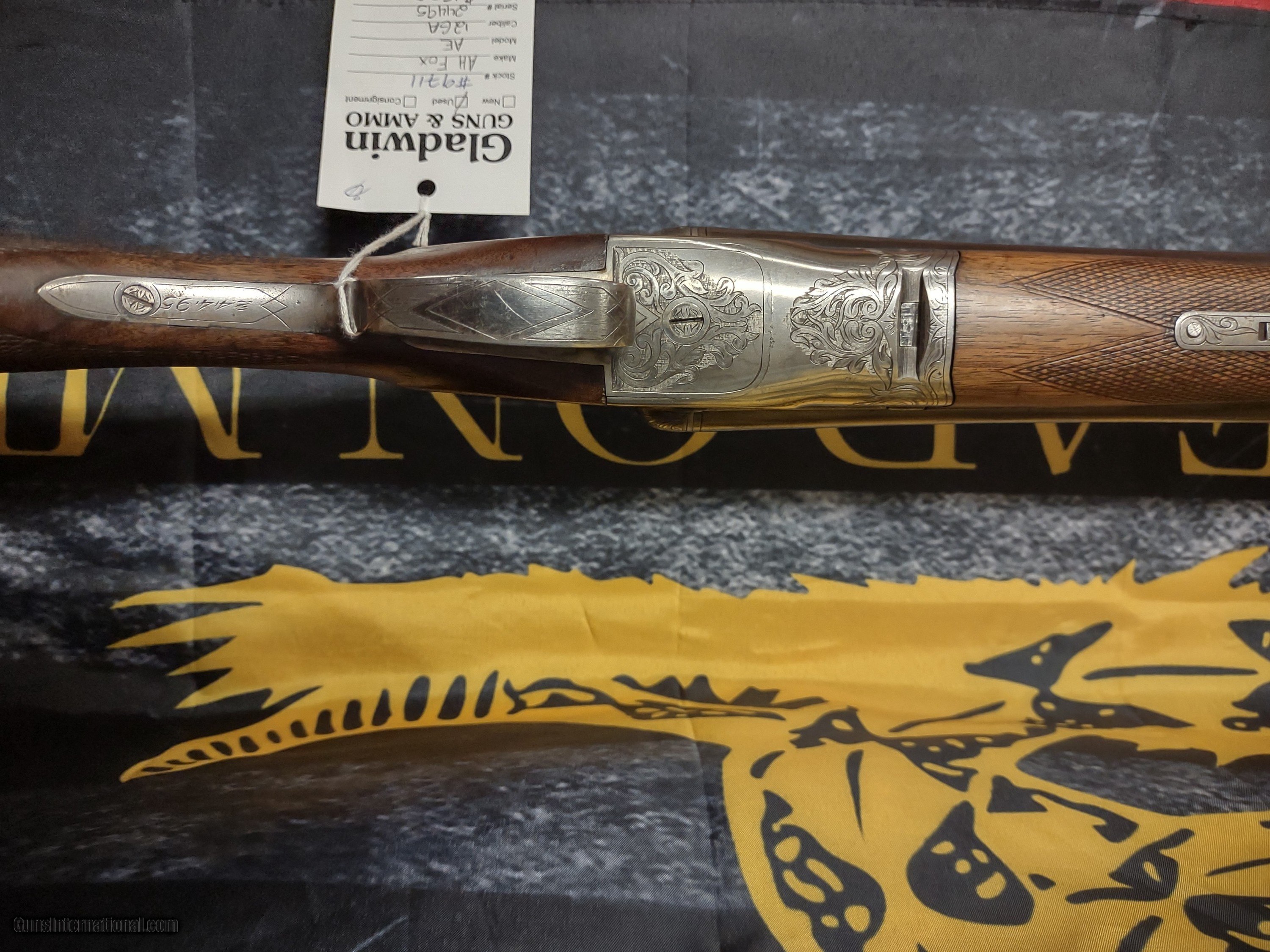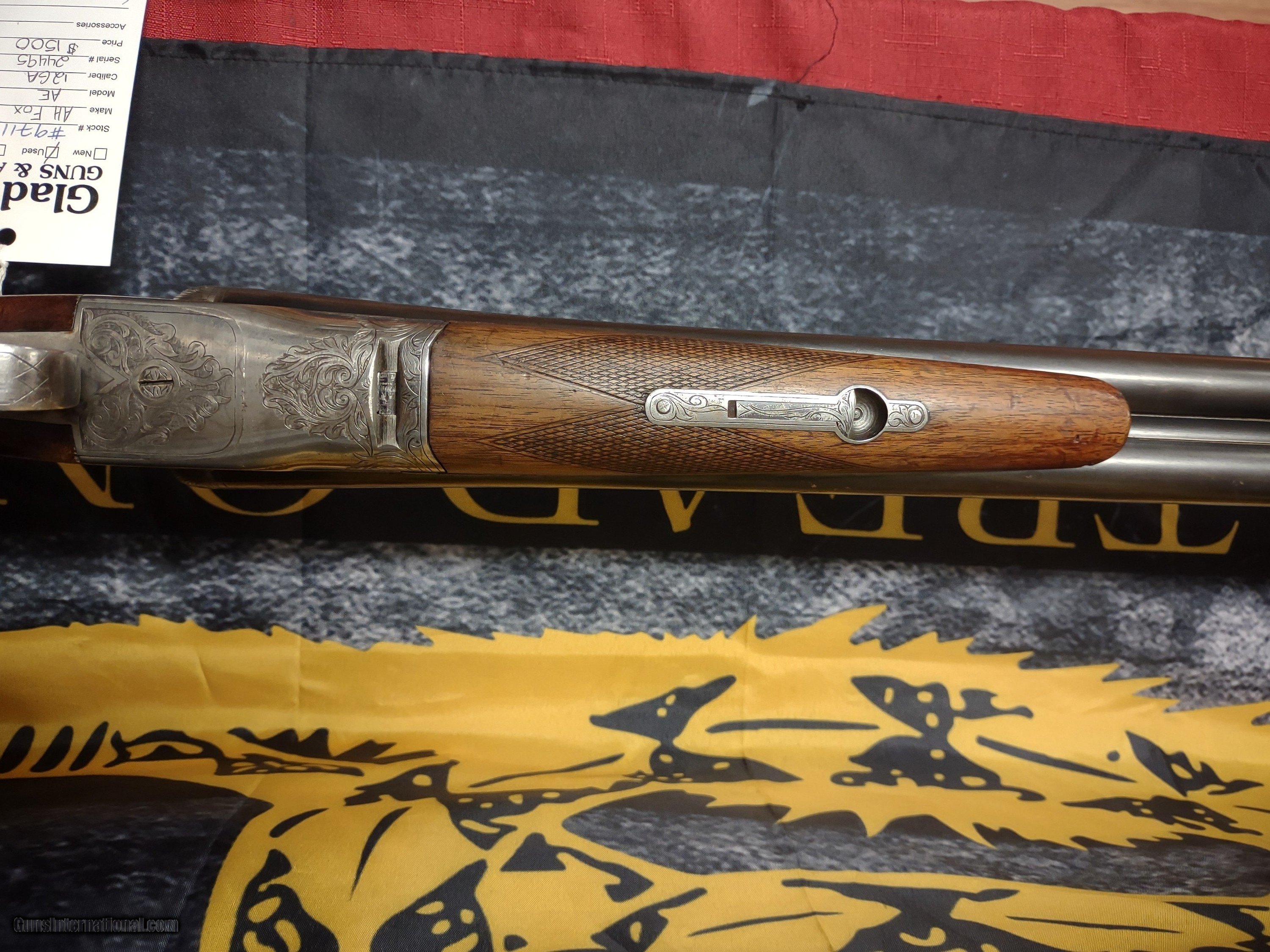 Description: A H Fox Auto Ejector 12 gauge Side by Side Shotgun. SOLD Curio/Relic: Yes Shotgun Gauge: 12 Gauge Manufacturer: AH Fox Model: AE (AUTO EJECTORS) Finish: Blued |