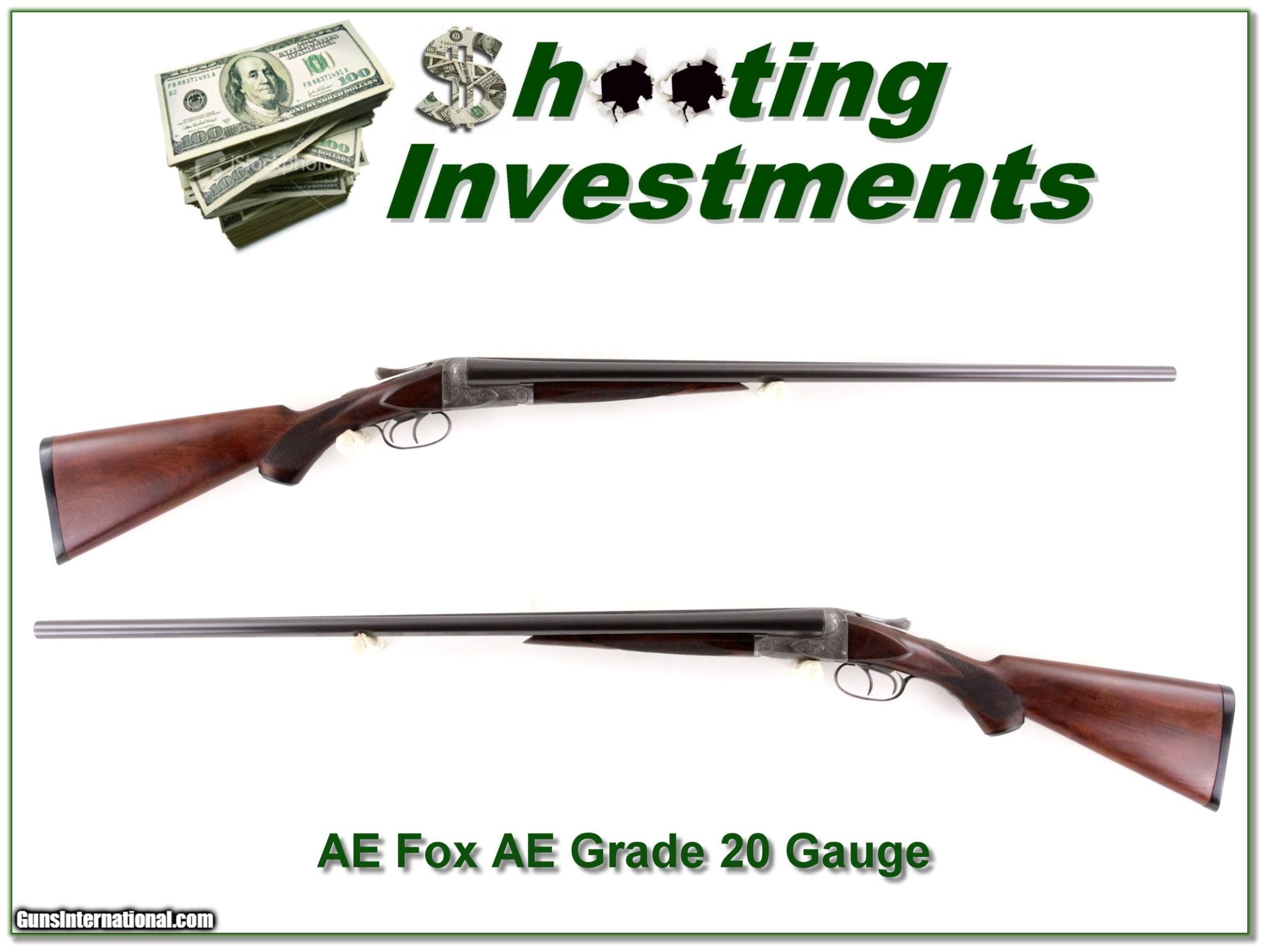 Description: This is an all original AH Fox AE Grade 20 bore. It has beautiful factory engraving. The blue is strong and the wood in excellent condition. It has 28in barrels choked Full & IC. The bores are mirror and the lever is still way right! The LOP is 13 7/8in to front trigger. This one will make a prized addition to your collection. I am selling this one on consignment and as such lay-a-way can’t be used. It does of course have the standard 3-day inspection. Shipping with insurance is $69. Please email me with any questions or larger pictures. (Consign your quality firearms with Shooting Investments for only 12%! Let me know if you have any you would like to sell!) 20-0025 Payment: Payment is by Money Order, Cashiers Check or Personal Check. I can now also accept Credit Cards (MasterCard, Visa, Discover & American Express) with a 3% convenience fee. PayPal can be used for some items but never for firearms. Shipping: The shipping charge will be listed in each description. It is $39 for most firearms. Some heavy guns or those insured for over $2000 will be higher. Shipments to Alaska and Hawaii are higher because air shipment is required. Most firearms are shipped on Tuesday and Thursday and usually in 5 days of receipt of payment. We package all shipments carefully and insure them. Optics are shipped Priority Mail and most other non-firearm shipments are shipped First Class. Returns: Our return policy is simple. If for any reason you are not pleased with your purchase, you may return your item for a full refund of purchase price. Ammunition cannot be returned. It is important to us that you are happy. Guns cannot be fired or dissembled before returning them and they must be returned in the same condition as received. Notification of a return must occur with-in 3 days of receipt at your dealer. Shipping, convenience and dealer fees are not refundable and are the responsibility of the buyer. Lay-a-way: If needed, we offer a 60 day lay-a-way option on most firearms. It is 1/3 now, 1/3 in 30 days and 1/3 in 60 days. Lay-a-way firearm sales are final and if not completed the first payment cannot be returned. Consigning your firearms with Shooting Investments: We will help you get top dollar for your firearms. While most local guns shops charge 20% or more, our fee is only 12% with a minimum of $75. At your local gun shop it might take months to sell. Selling on-line provides instant access to thousands of interested buyers. You won’t find any other on-line dealer willing to sell your firearms for only 12% or listing every gun on 3 separate s. Selling through an House typically costs the seller 15% and the buyer an addition 15% (so 30%) and you have to wait several months to sell and longer to receive funds. If properly priced, we will sell your firearms in a few weeks. Send us an email or give us a call and we’ll explain how easy it is for you to get top dollar. Trading: Trading for use is really just buying your gun to re-sell. If you have a gun you want to trade, please email a picture and we will let you know what we can give or it. You will always get more if we sell it for you on consignment. Help for California Buyers: We are happy to ship to California. It is the buyer’s responsibility to make sure any item you buy is legal in your state. We are also happy to help with your purchase of a firearm from someone other than us. If you see a gun you would like to buy but the seller can’t or won’t ship to California they can ship to use and we’ll then ship it to your California dealer. The cost for this service is only $30 + shipping. Let us know if we can help! SOLD |