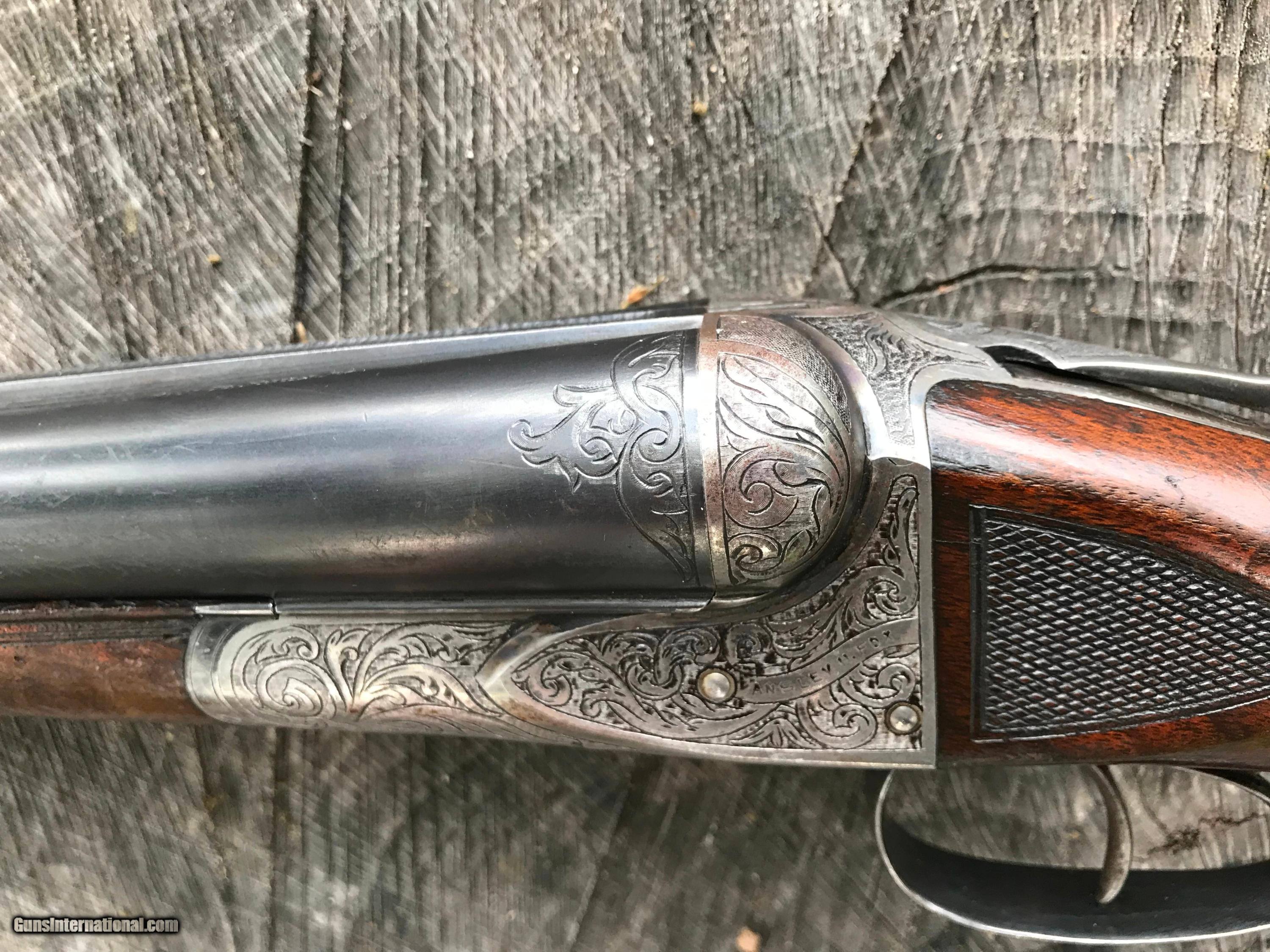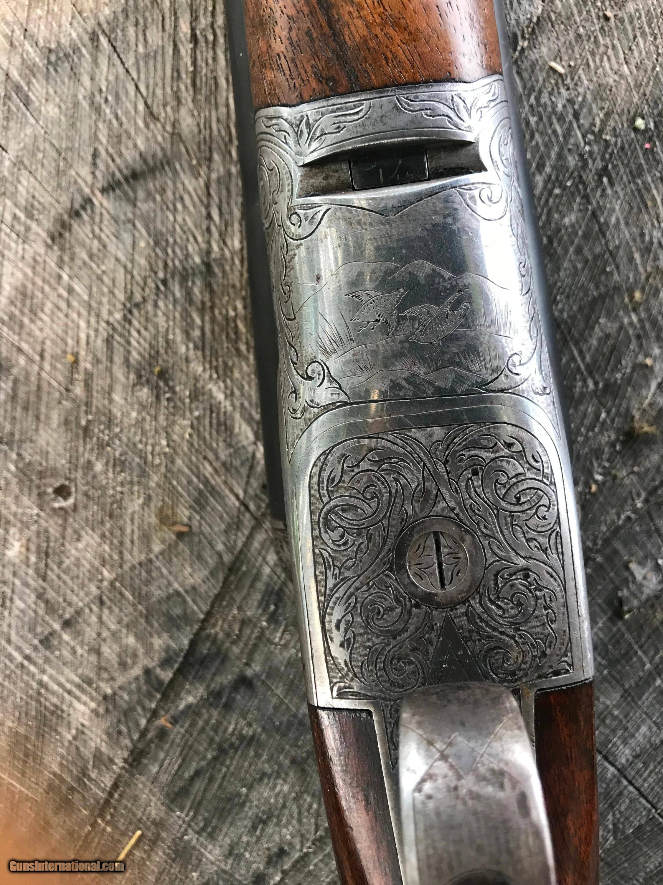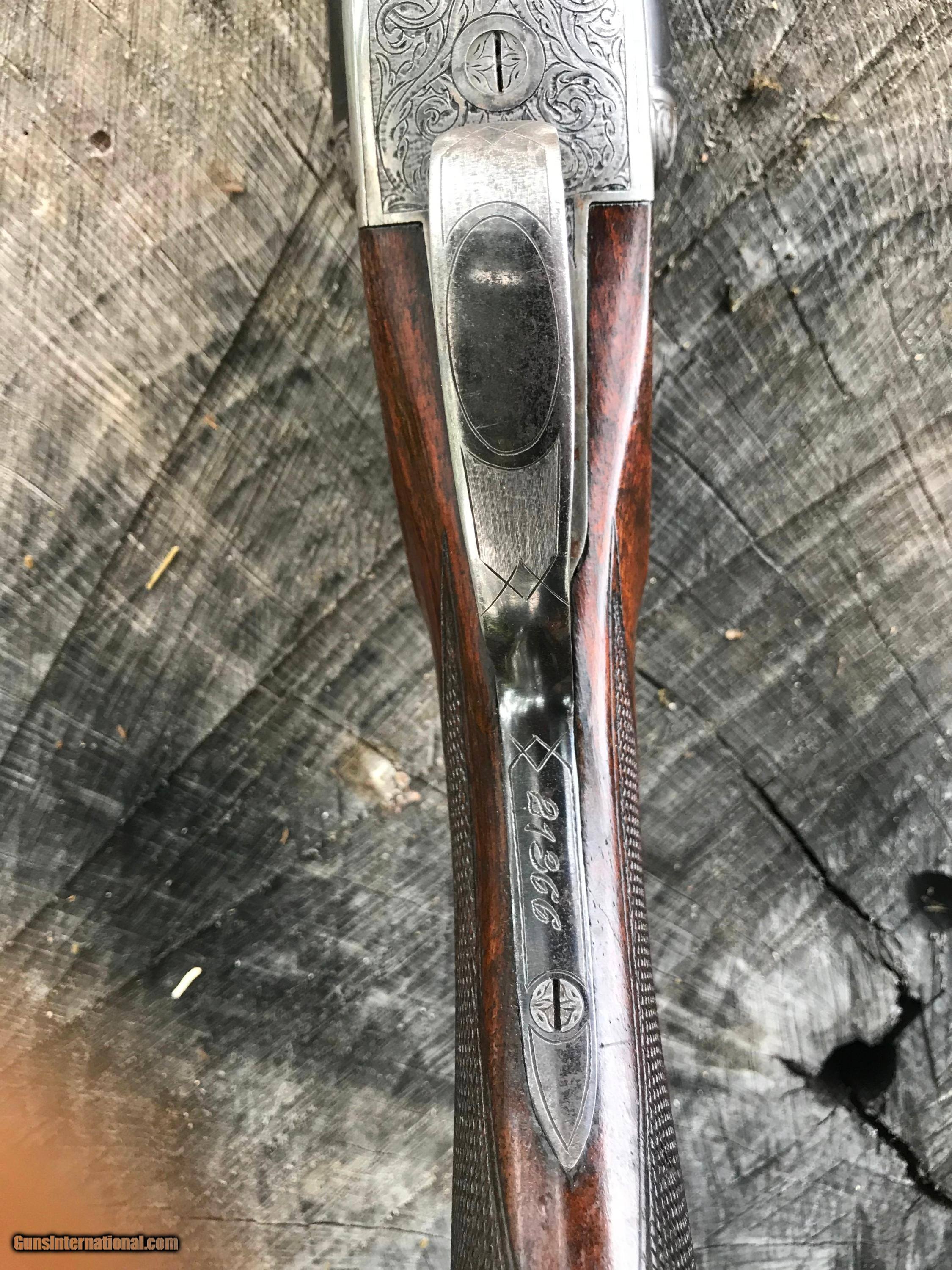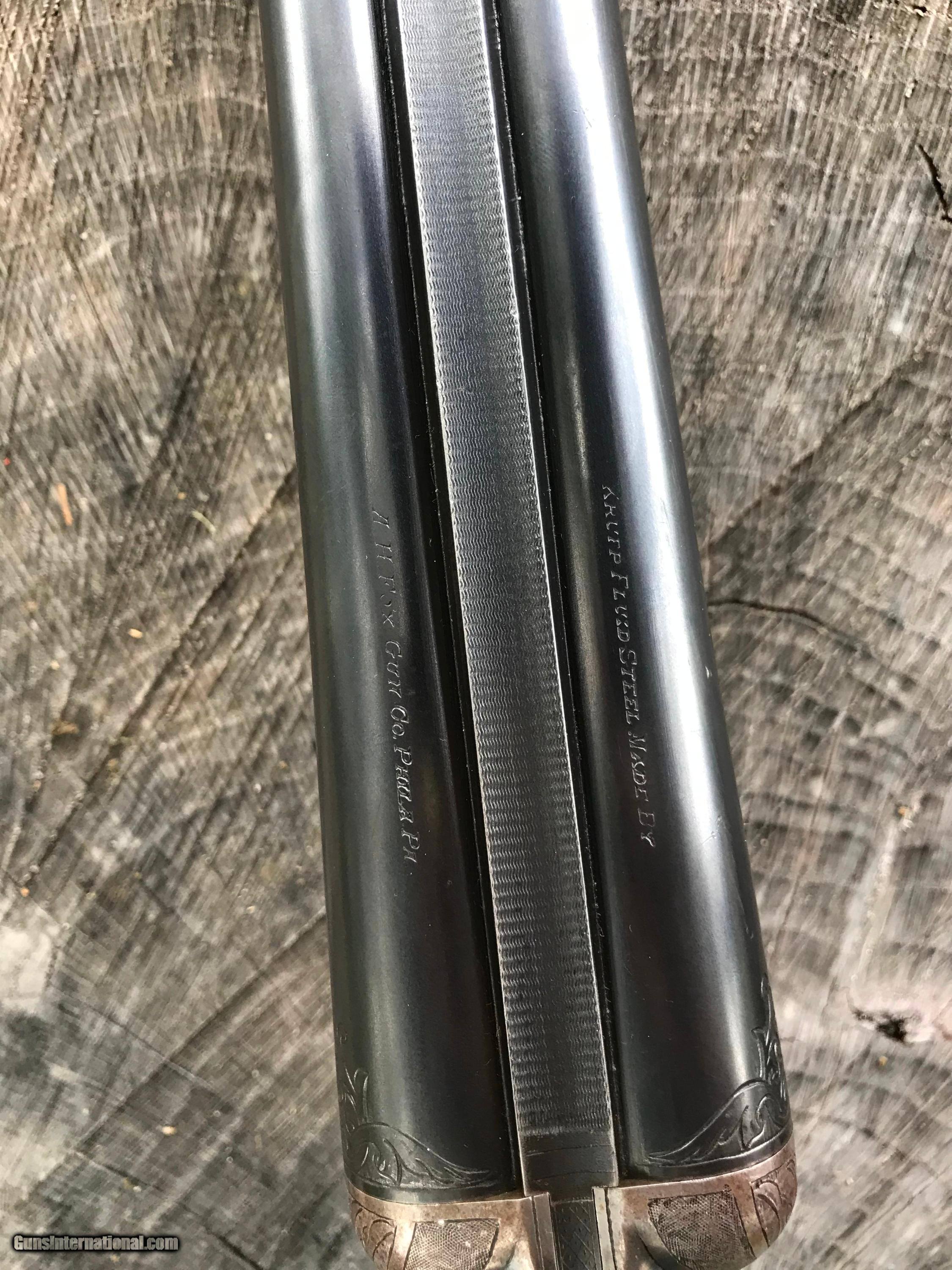 Description: Very rare B grade A H Fox with late style engraving in 12 gauge. 28" barrels choked mod/full. Barrel blue is 75% or better and there are traces of case color around the bolsters and in protected areas.There are some minor carry marks from handling. Weights 6.84 lbs and locks up like a drum. DAC is 1 3/4", DAH is 3". LOP is 14". Overall a very nice honest gun. SOLD Curio/Relic: Yes Manufacturer: A H Fox Model: B Grade Bore: 12 Chambers: 2 3/4 Condition: very good Triggers: double triggers Gauge Info: 12 Stock Comb: 1 3/4 Stock Heel: 3 Stock Cast: neutral LOP: 14 Weight: 6.84 lbs Manufacture Date: 1920's Choke Left: full Choke Right: mod Engraving: Late Style |