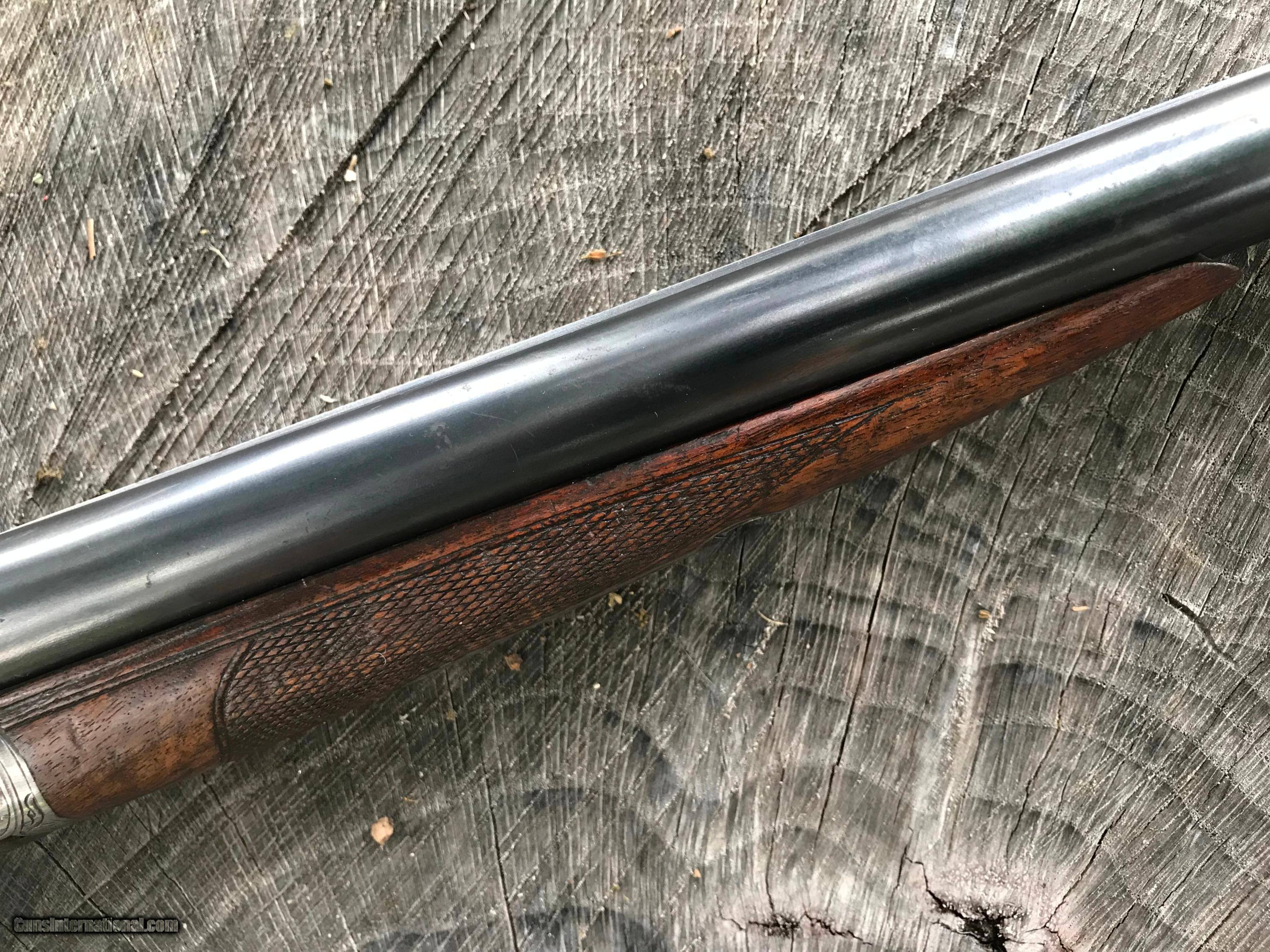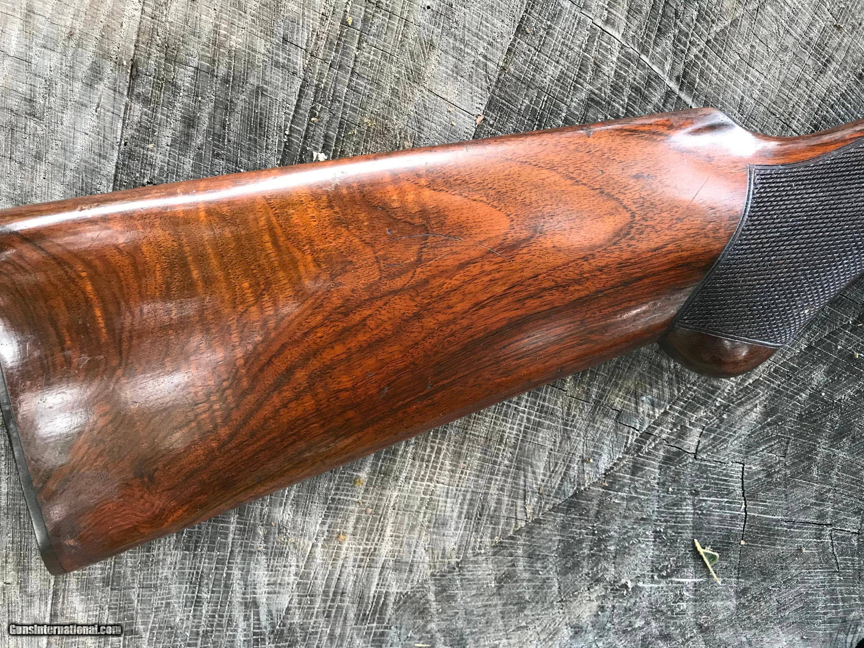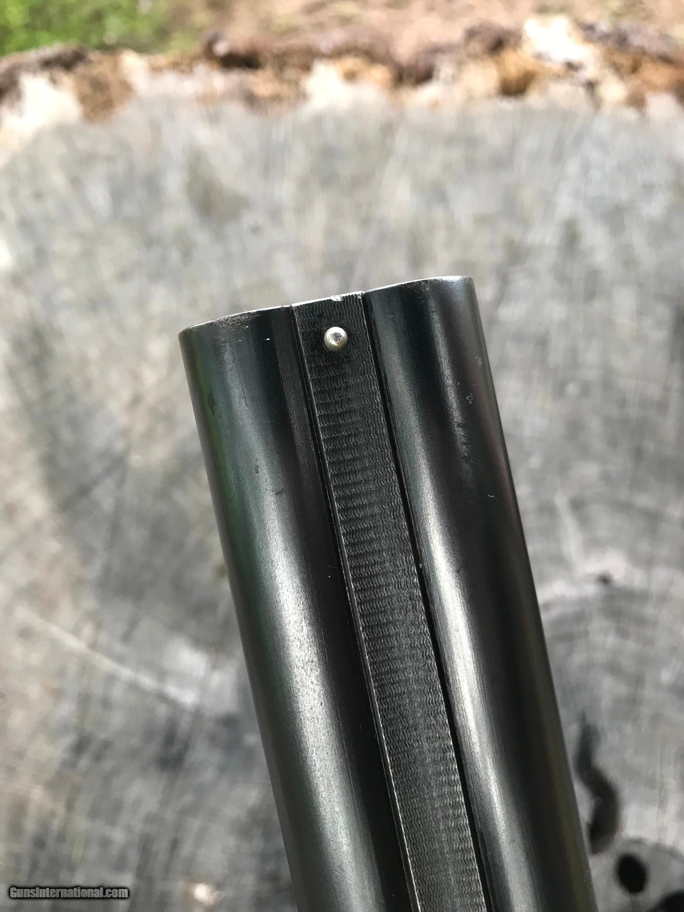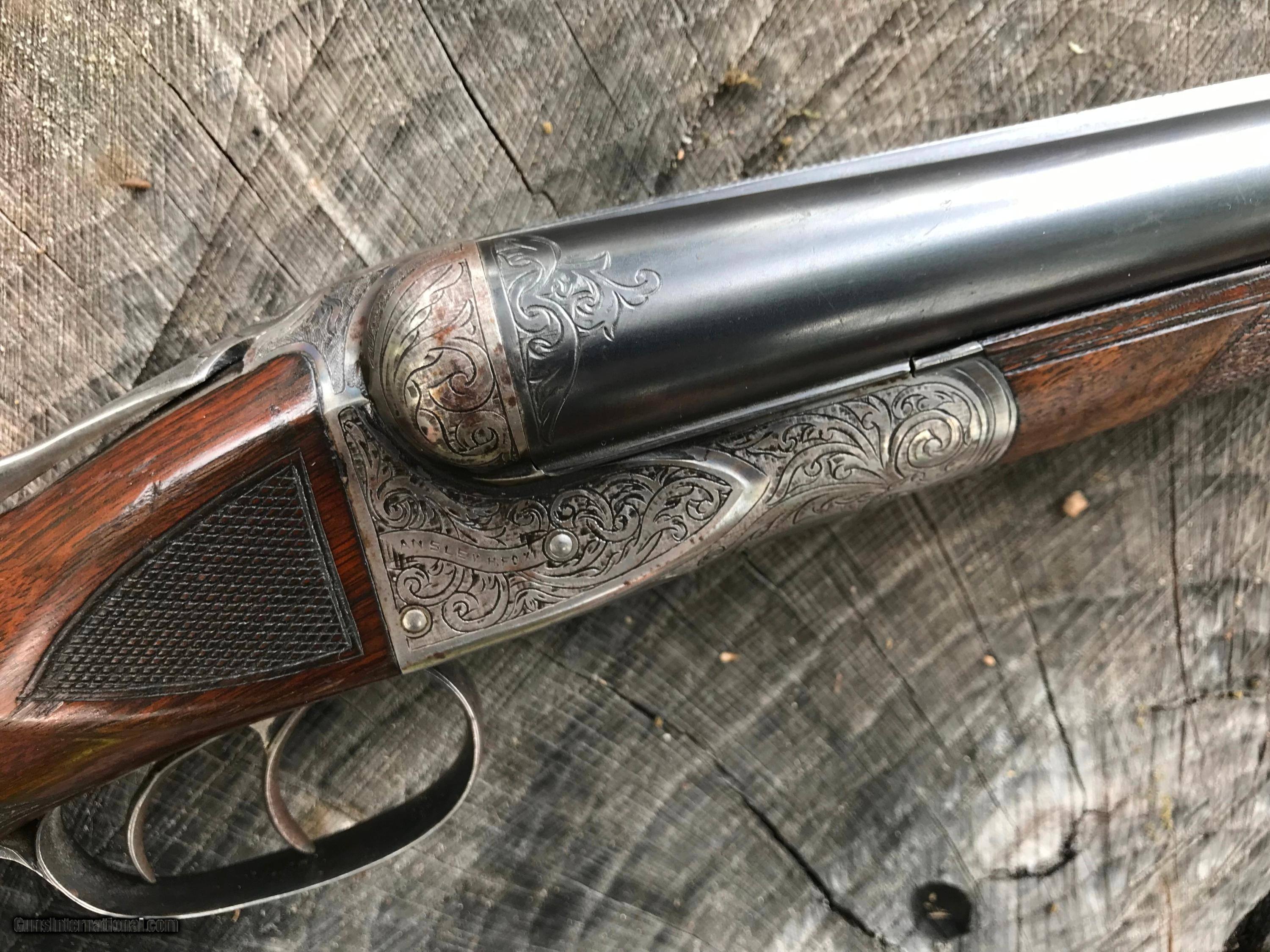 Description: Very rare B grade A H Fox with late style engraving in 12 gauge. 28" barrels choked mod/full. Barrel blue is 75% or better and there are traces of case color around the bolsters and in protected areas.There are some minor carry marks from handling. Weights 6.84 lbs and locks up like a drum. DAC is 1 3/4", DAH is 3". LOP is 14". Overall a very nice honest gun. SOLD Curio/Relic: Yes Manufacturer: A H Fox Model: B Grade Bore: 12 Chambers: 2 3/4 Condition: very good Triggers: double triggers Gauge Info: 12 Stock Comb: 1 3/4 Stock Heel: 3 Stock Cast: neutral LOP: 14 Weight: 6.84 lbs Manufacture Date: 1920's Choke Left: full Choke Right: mod Engraving: Late Style |