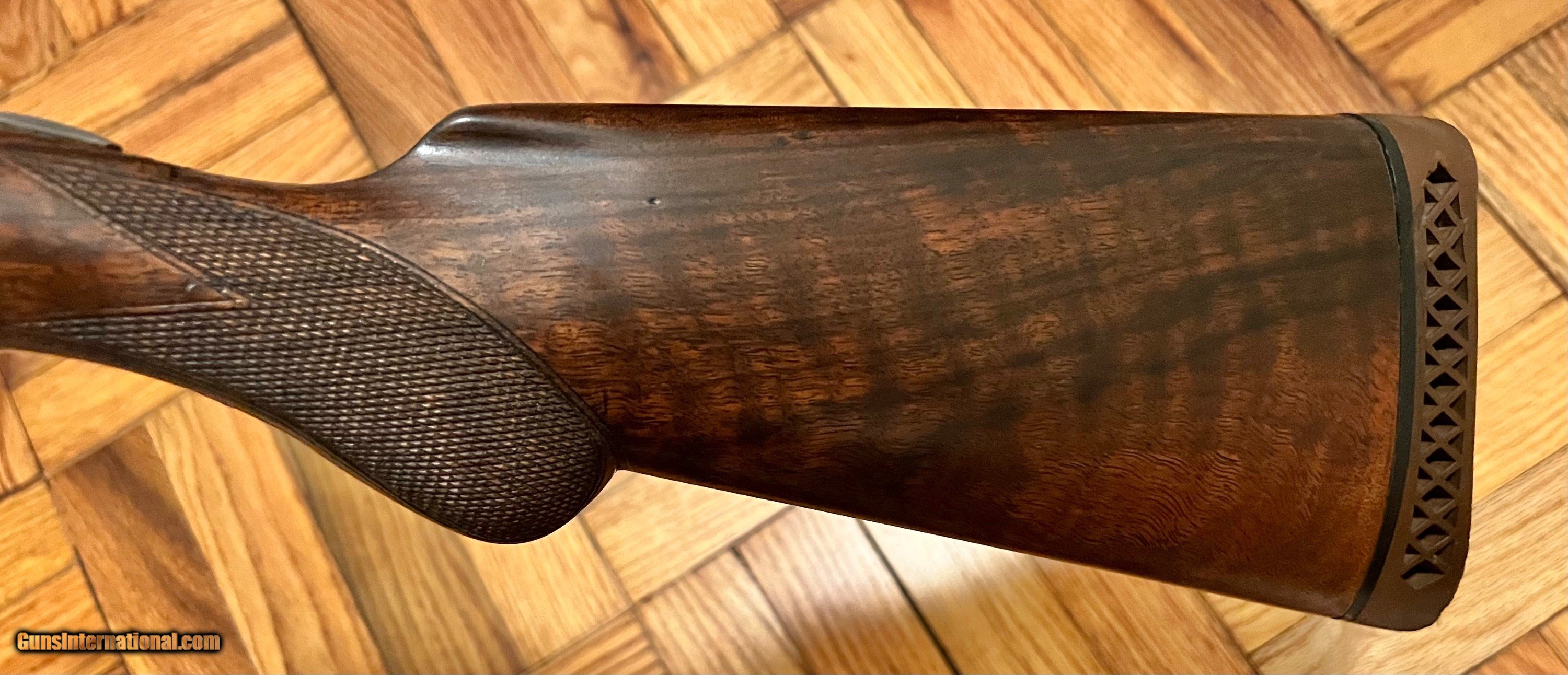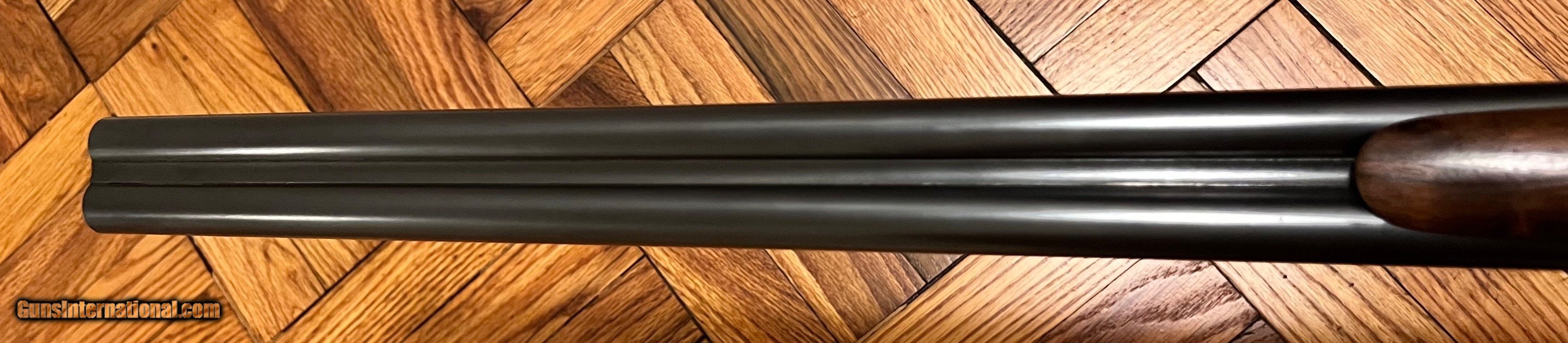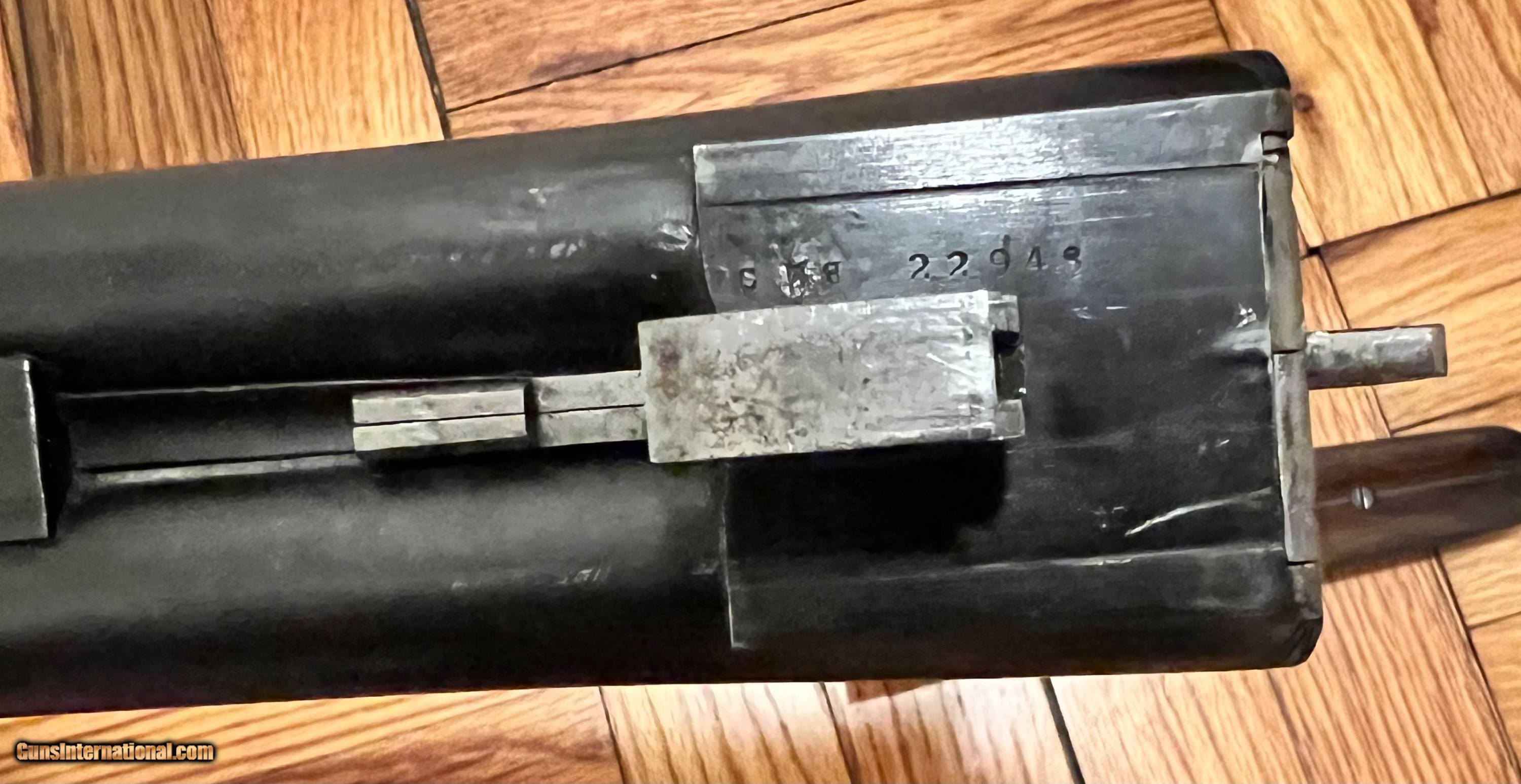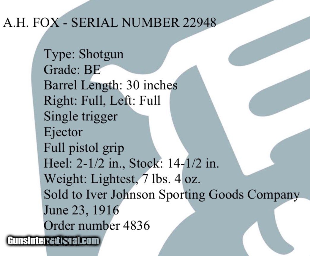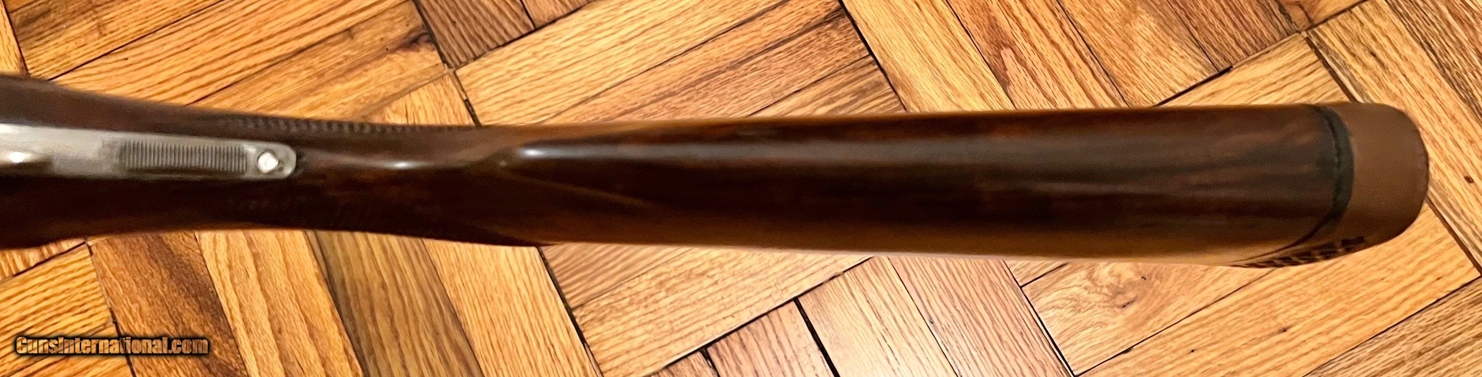Description: AH Fox BE grade 12ga 26" ejector barrels (originally 30" but cut to 26") Fox Kautzky single selective trigger that functions perfectly Chokes: Cyl/Cyl .000/.000 Minimum wall thickness R: 0.032 L: 0.033 LOP 13 5/8 DAC 1 3/4 DAH 3 3/8 Cast off 1/8" 6lbs 13oz Nice original BE action with late style deep cut engraving and some original case color remaining. Nicley figured wood that solid with good checkering but has some repairs. Ejectors work properly when shooting but need to be serviced(they eject when the gun is opened and not shot) lockup is tight but top lever is to the left. Great gun for restoration or use as is. Open to reasonable offers. SOLD Curio/Relic: Yes Shotgun Gauge: 12 Gauge |