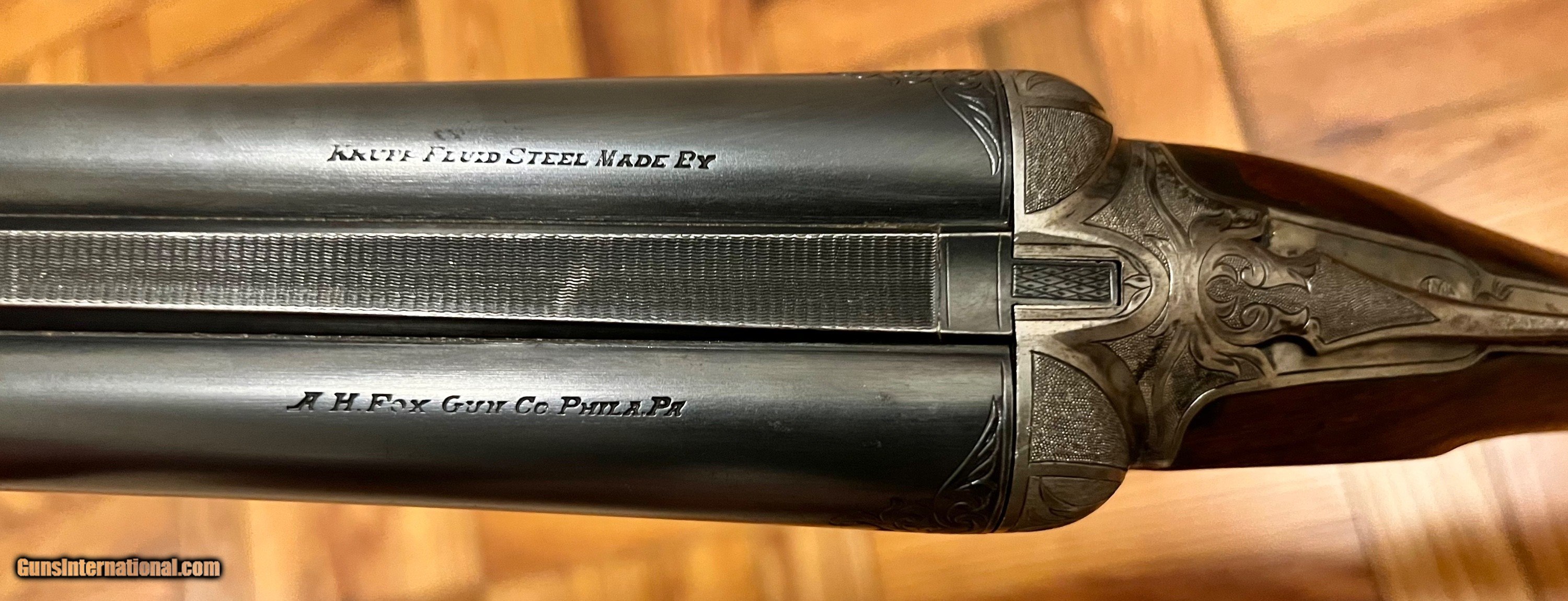 AH FOX BE GRADE 26” CYL/CYL BARRELS LATE STYLE DEEP CUT ENGRAVING FOX KAUTZKY SINGLE TRIGGER