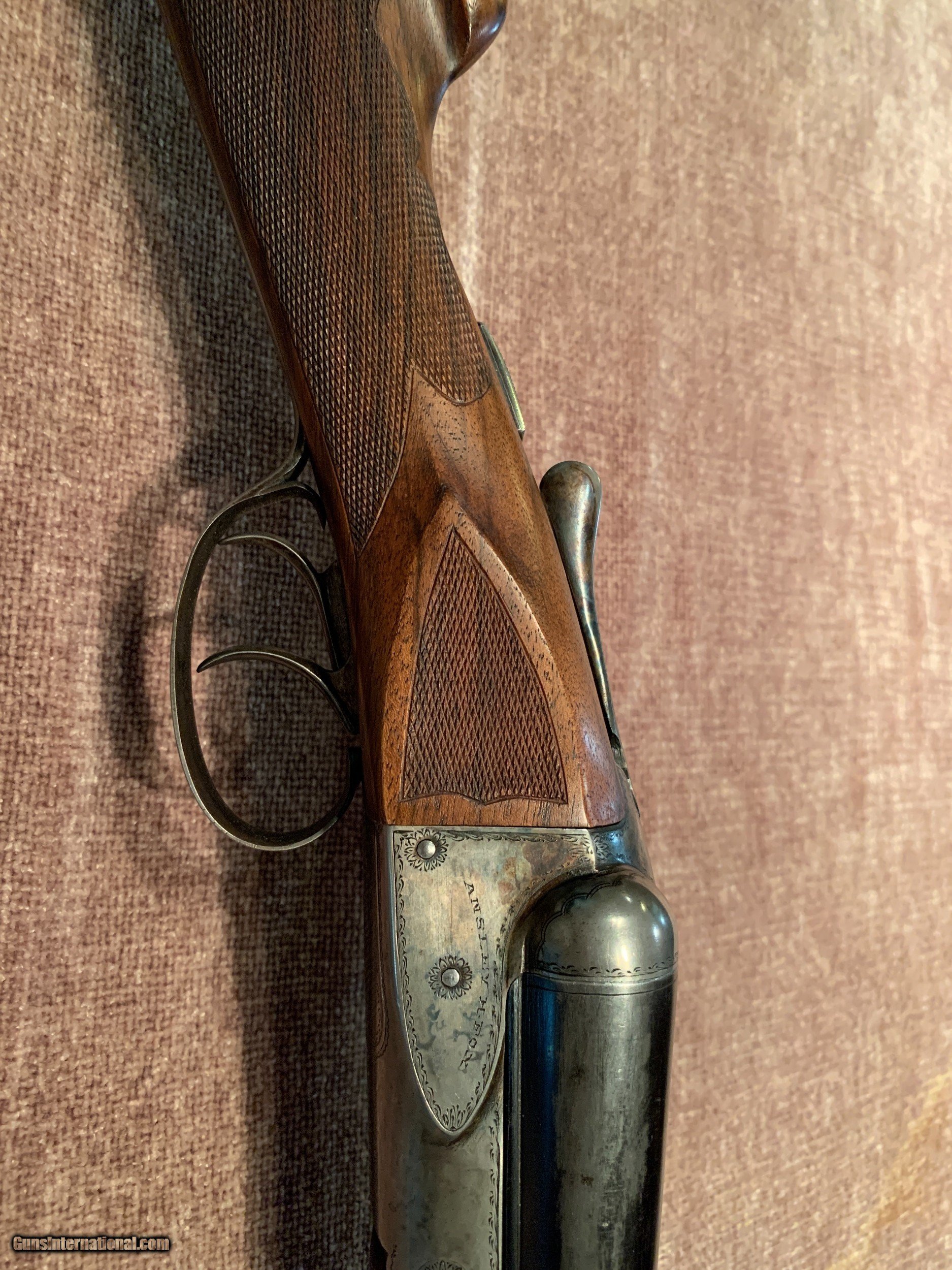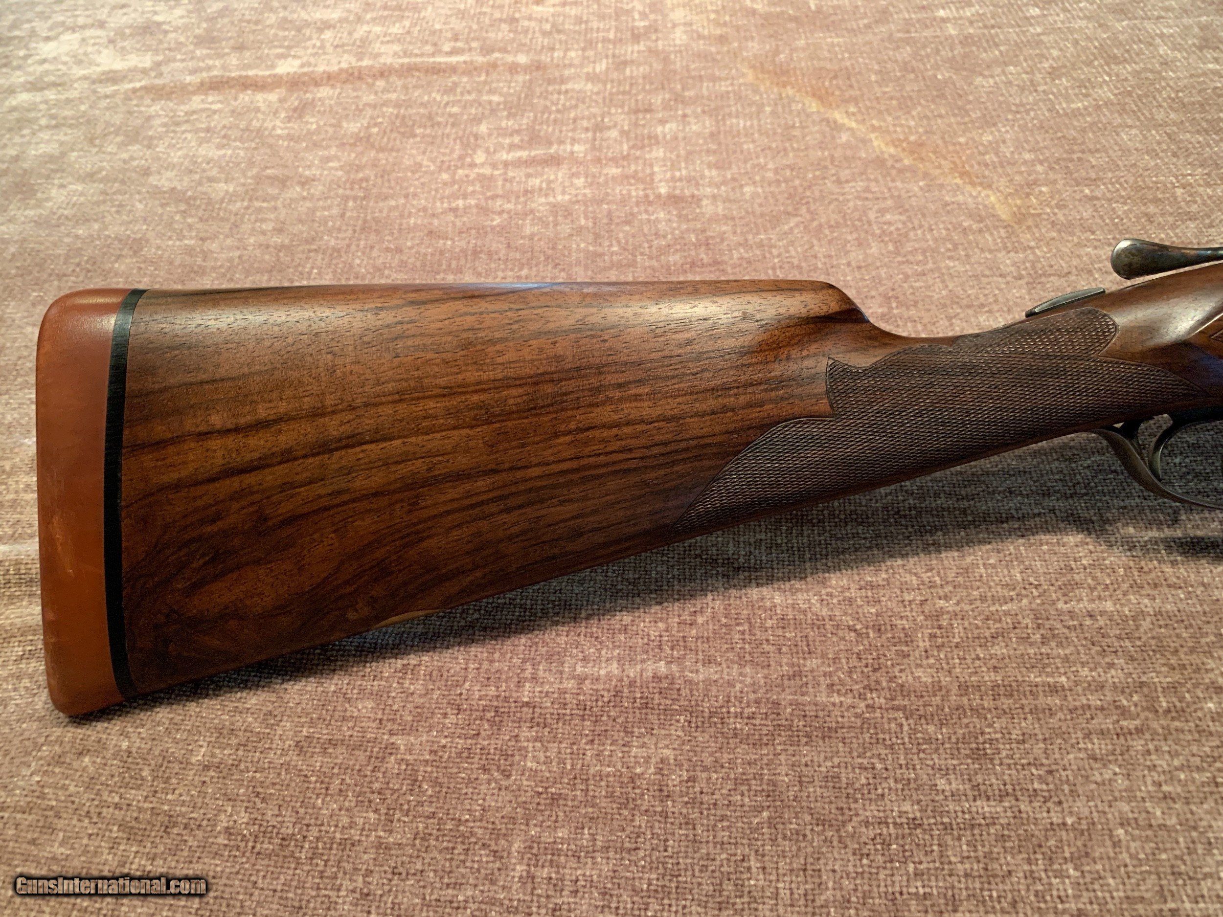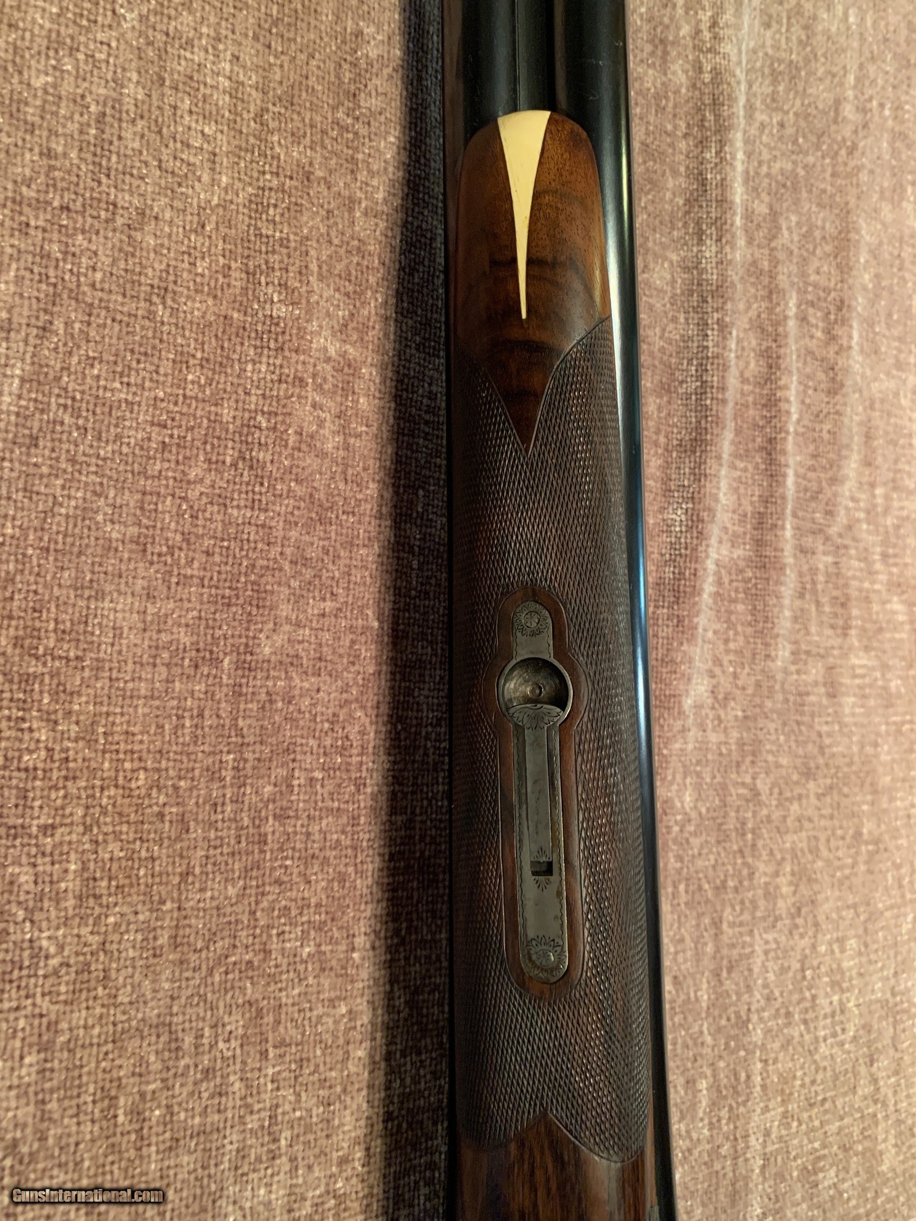 Description: AH FOX HE-12 W/32" F&F CROMOX BARRELS, 3" CHAMBERS, D/T, TWIN IVORY BEADS & IVORY FOREND INSERT, STRAIGHT STOCK TO PAD. 1 1/2" x 2 5/8" x 14 1/4", 50% ORIGINAL COLOR. PERFECT BORES #32531. $8600.00. JOHN 443-952-7165 PHONE ONLY PLEASE. FREE SHIPPING. SOLD |