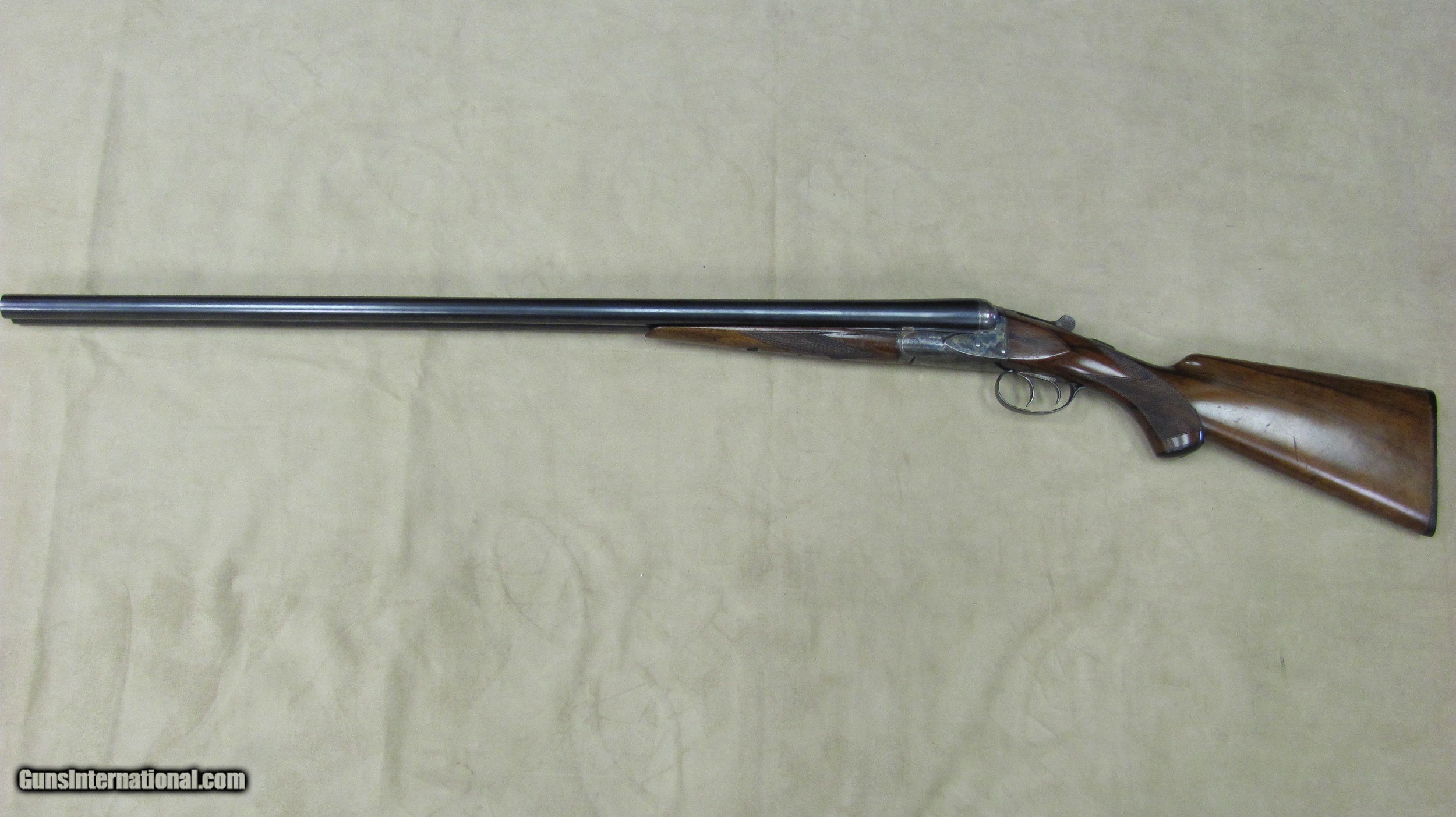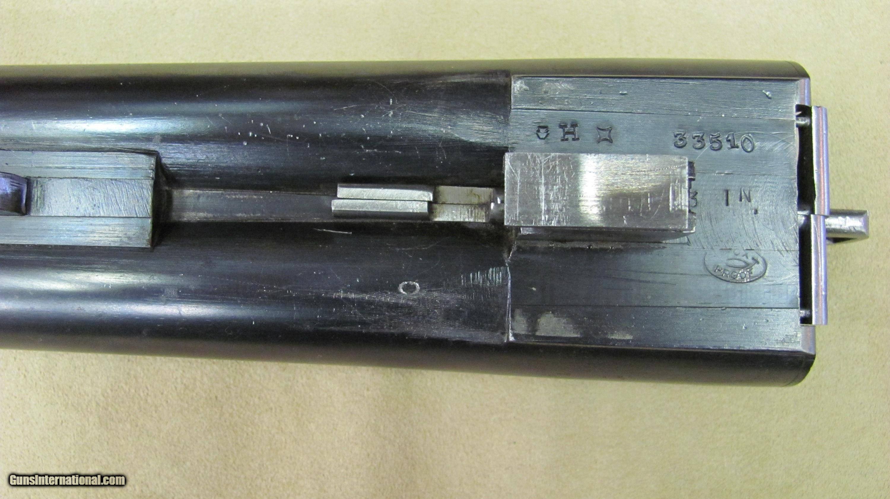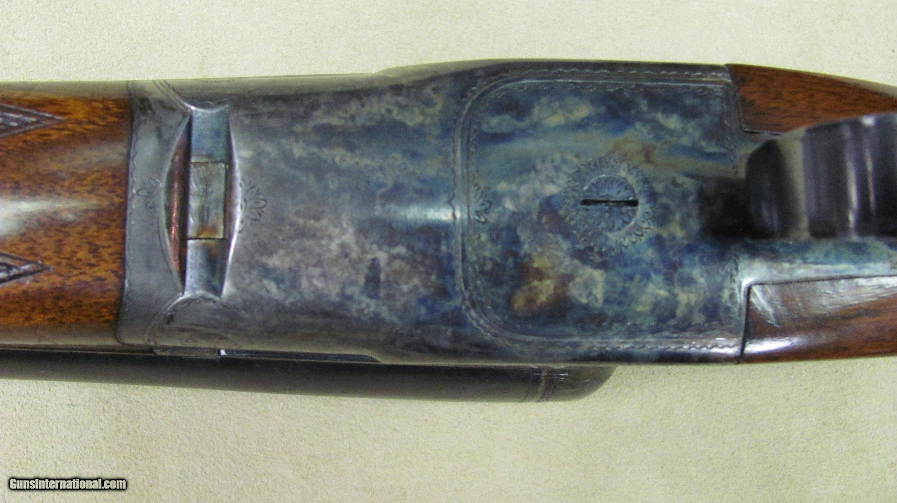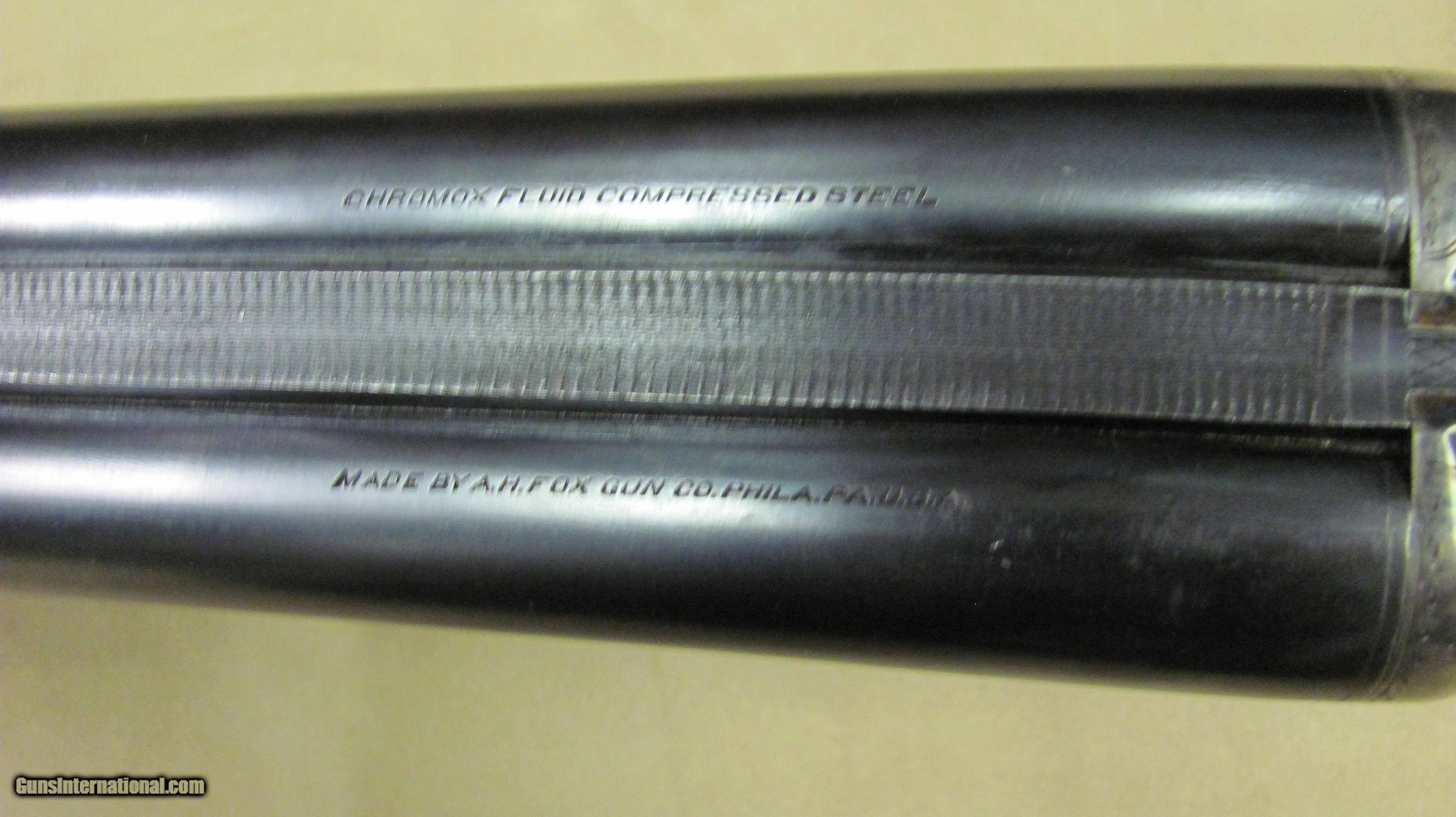 Description: AH Fox HE Superfox grade 12 gauge double barrel shotgun. This shotgun is in excellent condition with 32" barrels that have mirror bores. 3" chambers and auto ejectors. Weight is 8lbs. 9oz. LOP is 14 1/4", DC is 1 5/8" and DH is 2 5/8". Manufactured in 1929. Serial number is 33510. A high condition shotgun that still retains almost all original case colors, bluing and stock and forend finish. A rare gun in excellent condition. SOLD Curio/Relic: Yes Manufacturer: AH Fox Phil Model: HE Serial Number: 33510 Ejectors: Yes Condition: Excellent Metal Condition: Excellent Wood Condition: Excellent Bore Condition: Excellent Gauge Info: 12 Gauge Stock Comb: 1 5/8 Stock Heel: 2 5/8 Butt Pad: Original Butt Plate LOP: 14 1/4 Weight: 8lbs. 9oz. Manufacture Date: 1929 Choke Left: Full Choke Right: Full Proof:Nitro: Nitro |