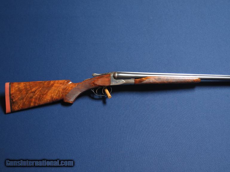 Description: AH Fox Sterlingworth 20ga. 30" barrels. Mod & Full. .013 & .023. Double triggers. Extractors. Custom stocked. Beavertail forearm. 60% case coloring. 96-97% blue. Beautiful grain in wood. Excellent bores. 1 3/8 comb 2" heel. 14 1/8 LOP pad. SOLD |