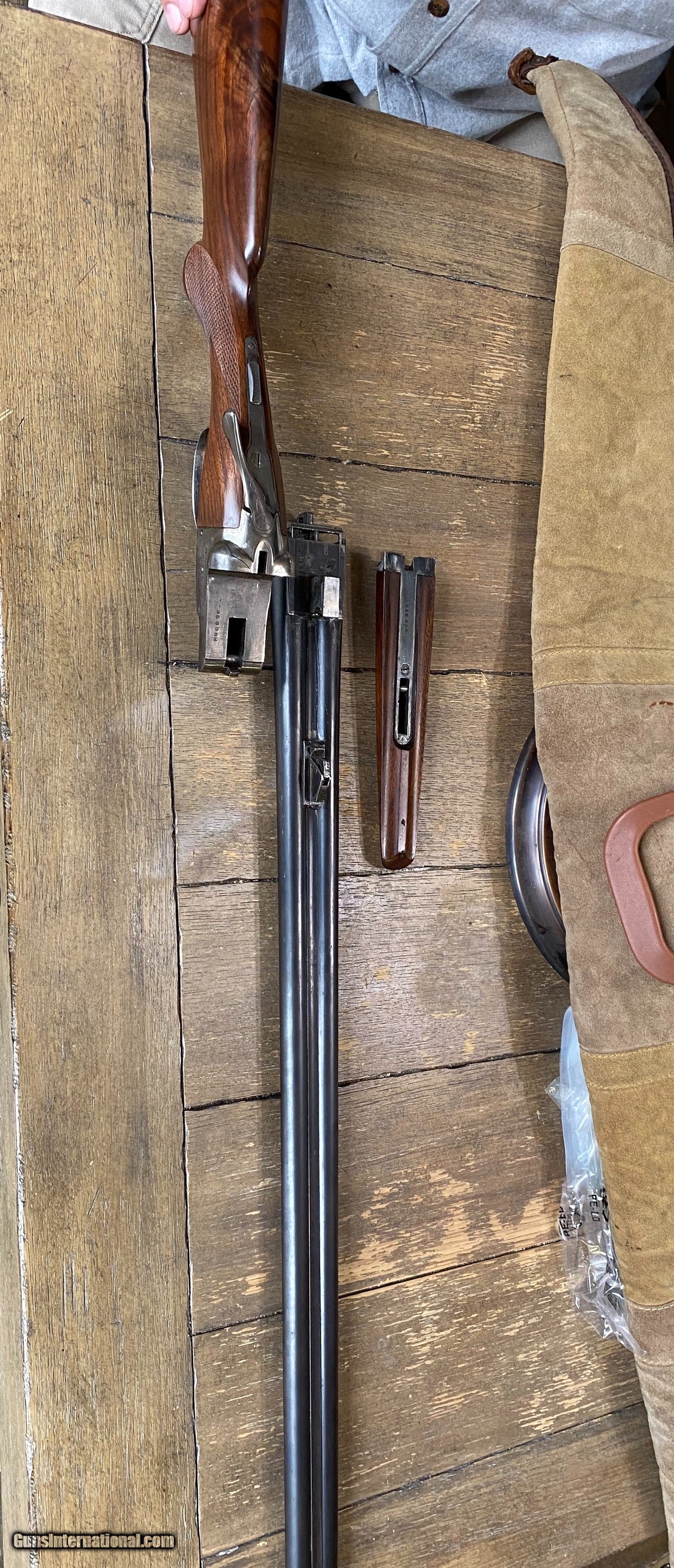 Description: Fox Philly 20 gage sterlingworth SOLD Shotgun Gauge: 20 Gauge Manufacturer: Fox Model: Sterlingworth Barrel Length: 28 in Bore: 20 gage Chambers: 2 3/4 Ejectors: No Condition: Very good Metal Condition: Very good Wood Condition: Excellent Bore Condition: Excellent Barrels: 28 in Barrel Type: Side by side Action: Box lock Triggers: two Stock: Pistol Grip Stock Dimensions: 1.75 x 2.75 x 14.25 Stock Comb: 1 3/4 Stock Heel: 2 3/4 Stock Cast: 0 Fore End: Splinter Butt Pad: yes LOP: 14 1/4 Rib: Matted Finish: Very Good Weight: 6.8 lbs Sights: Single Bead Chokes: Modified & Full Choke Left: Full Choke Right: Modified Engraving: None Item Location: Michigan |