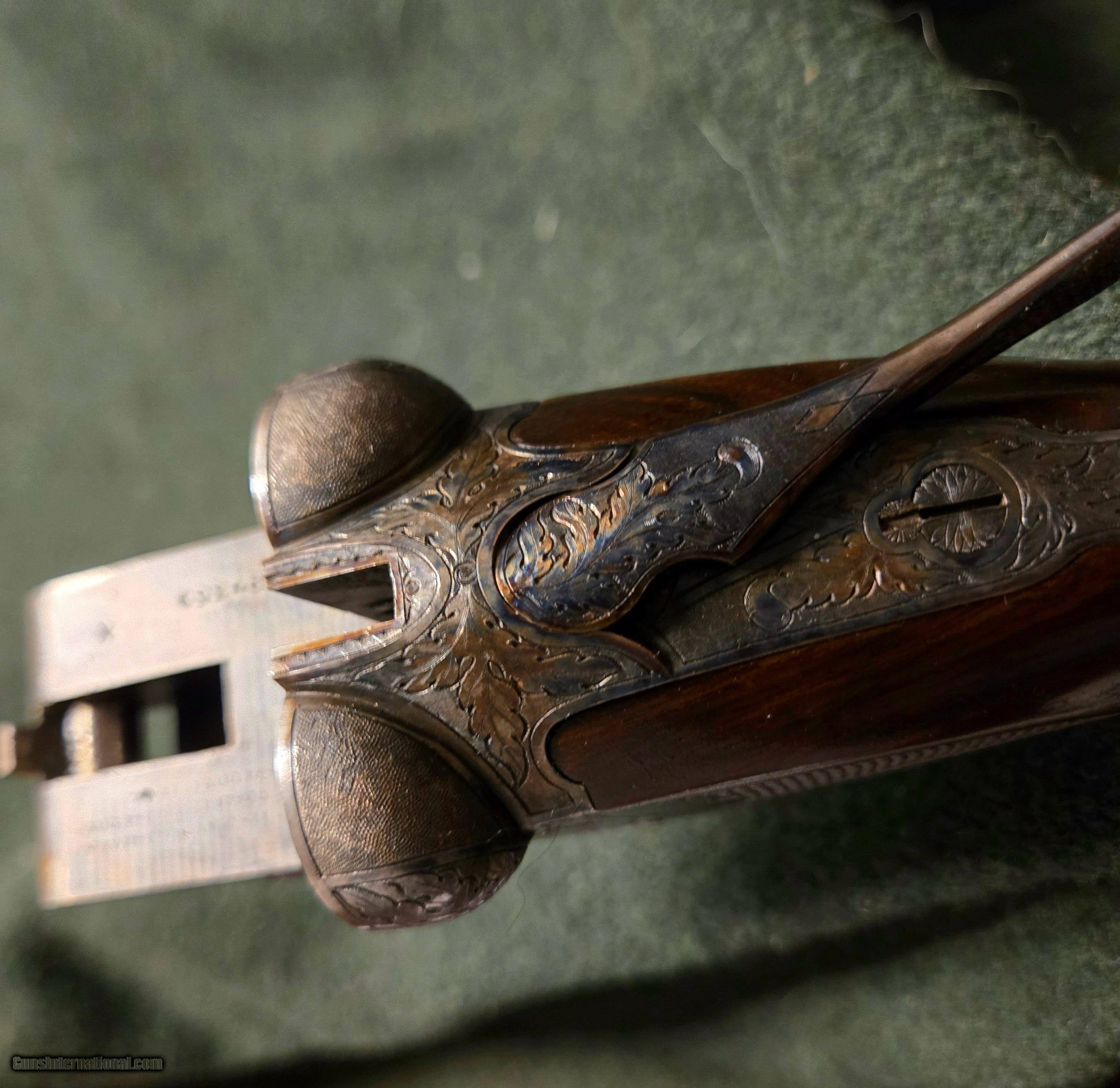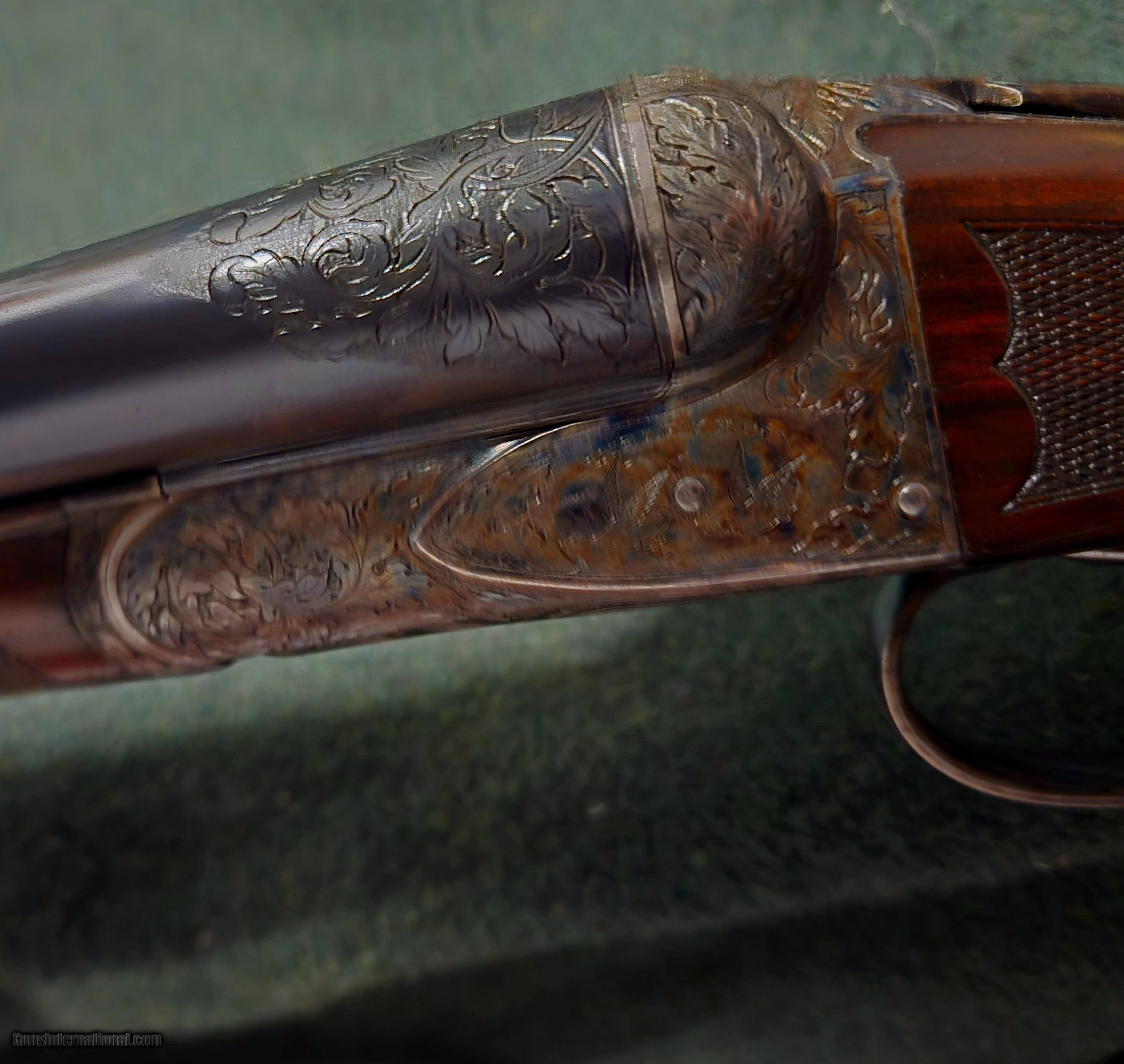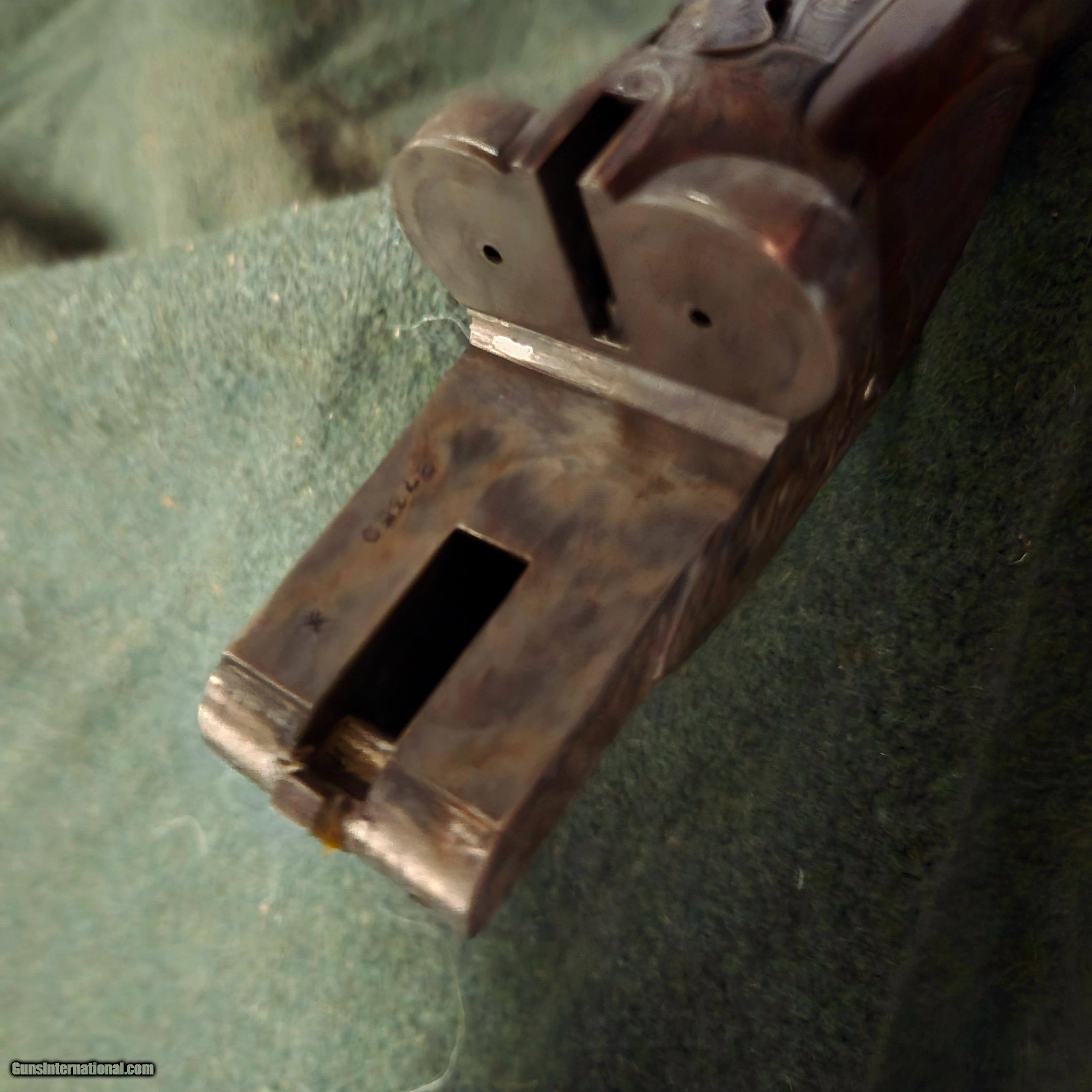 Description: Ansley H. FOX XE Grade Sn 27350. Savage, Fox Steven's Factory Certlfied (Cody Firearms Museum Records), Letter dated May 12, 2025, reflects A.H.FOX Factory features along with the work order tag 20647-39, dated July 13, 1939. All matching numbers. STOCK DIMENSIONS LOP = 14 3/8" over pad DAC = 1 1/4" DAH = 2 1/2" CAST = OFF 3/8" This fine A H Fox XE has a Single Select Factory Trigger, 2 barrel set:with dual Ivory beads: Set#1- 26in Choked R-Cy, L-Mod. Set#2- 32in R-F, Mod-Full. Factory original XE Engraving shows very sharp and Factory case hardened and correct timed screws. Both the action and barrels reflect 99% of vivid colors and mirror bores with ejectors being in time. Both the stock and forearm still retain factory checkering as sharp and on point. Given this guns age and very light use over the past 87 years reflects a high grade AH Fox in near mint condition. The only exceptions are the buttstock has had all light handling marks removed and now reflects the beautiful grain and feather crotch wood featuers. A new Silvers Pad has been added (orginal leather covered pad with leather covered matching plugs accompany this gun to buyer). This XE Grade will surely make a very fine addition to a Collectors investment or used to Duck hunt at daybreak and upland after lunch. Please feel free to call us should you have any questions, as we speak vintage and new shotguns. Curio/Relic: Yes Shotgun Gauge: 12 Gauge Price: $15,995.00 Shipping: $70.00 Buy Now Contact Seller |