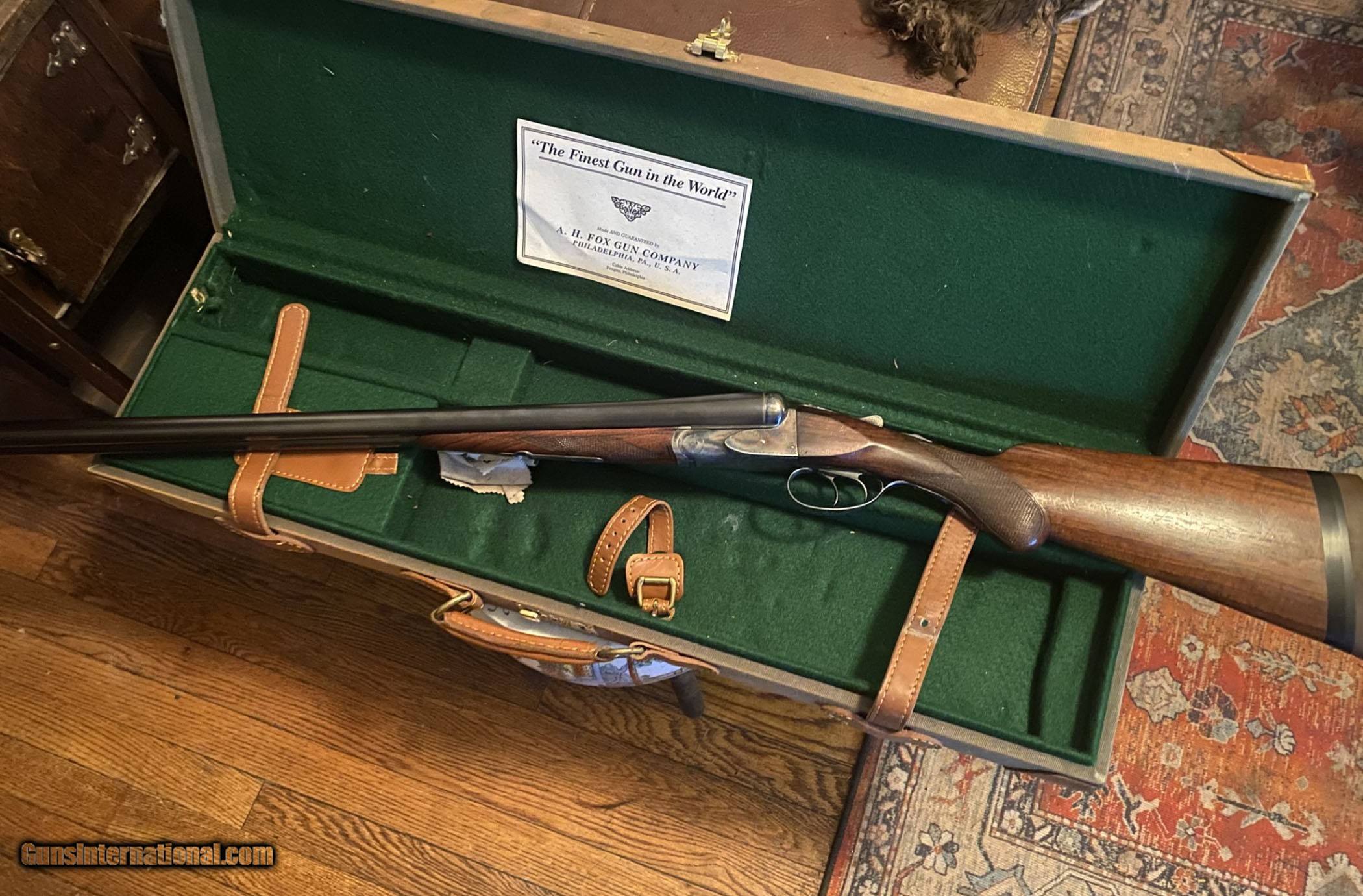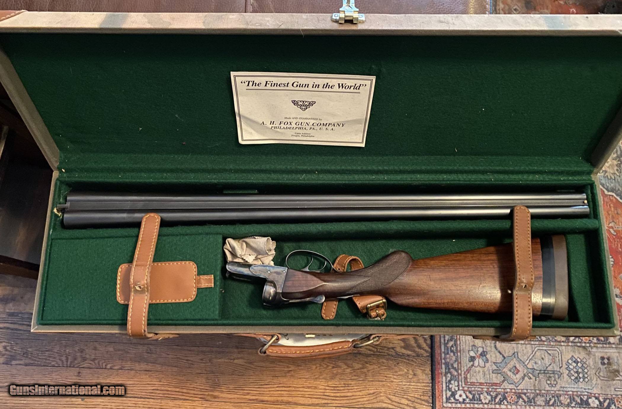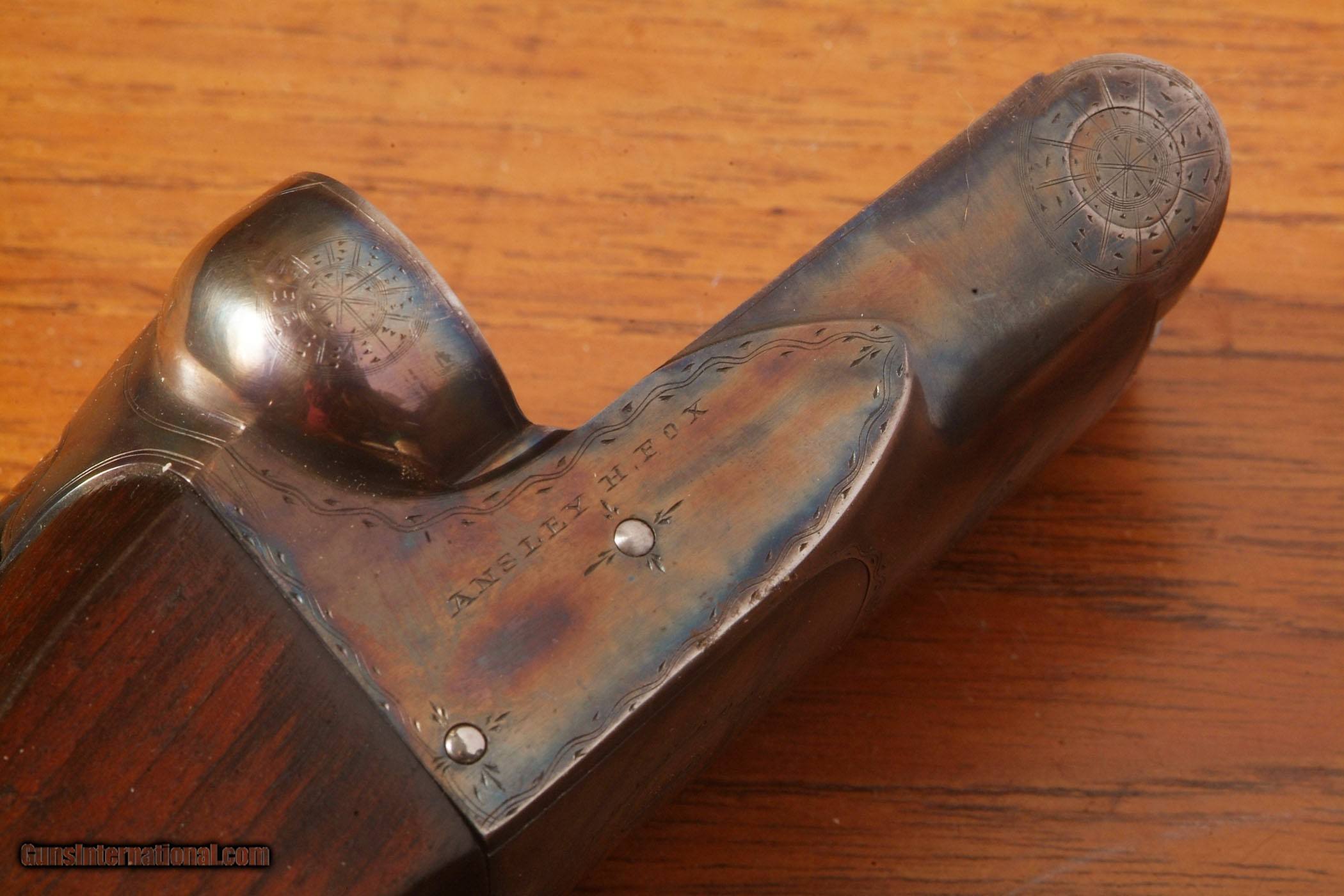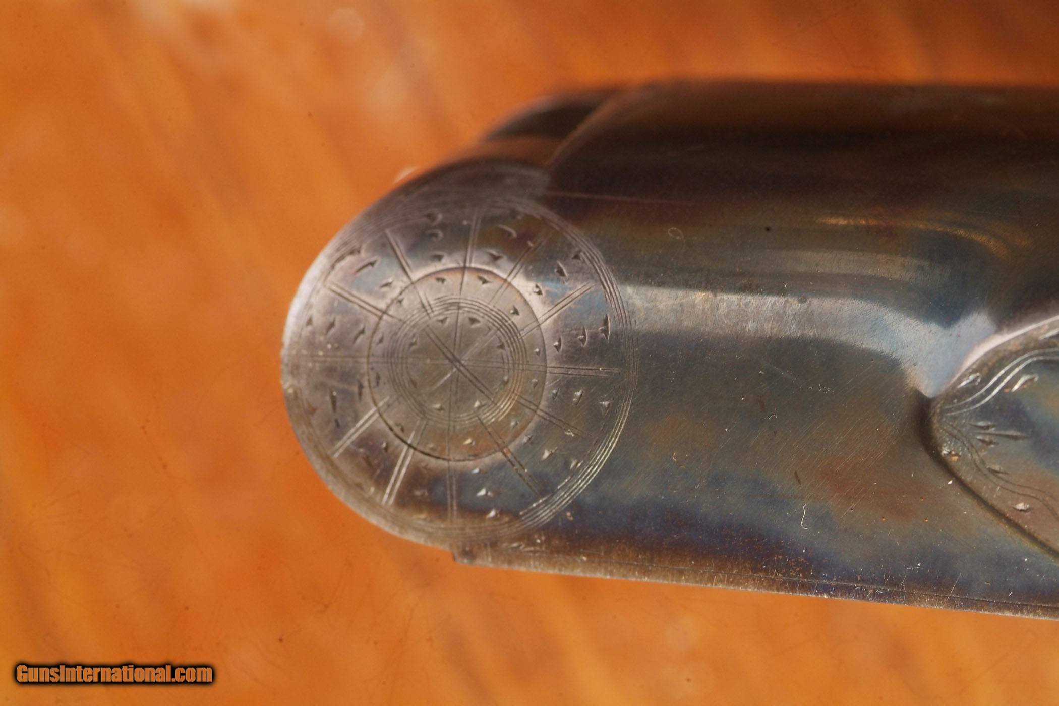 Description: This is an early style engraving, 12 ga. It has been ( almost ) totally redone. As new condition. Engraving has been recut, case color redone and barrels reblued. I did nothing to the stock except add a spacer and new recoil pad to match my long neck and monkey arms.This gun was in ex-fine condition when I bought it and had all the work done as a project for myself. No interior metal work was recommended when dissasembled for cleaning and case color. I bought a case and a repro Fox tag. Ive had this gun in this condition for 30+ years. It has been to the range 1 times and the field 2 times. It has been in the case unused for 22 years and taken out only to rub down or show off.. I was an avid bird hunter and collector for 45 years but now my Boykin is past his prime and maybe so am I. I have no plans for another dog The stock was not cut or replaced and the spacer can be removed if needed. The travel case is loosing color, I suspect dust, it has not been in sunlight. Also the is a rub on the felt in the case. See photo. My collection gets a rub down on the stocks every several years and a very light coat of linseed oil and wax before the season but this gun has never needed it.If your looking for a premier example of this type this is it. Make offer SOLD Curio/Relic: Yes Shotgun Gauge: 12 Gauge Manufacturer: Ansley H Fox Model: A Serial Number: 2107 Barrel Length: 30 Bore: 12 Chambers: 2.75 Ejectors: No Condition: Ex+ Metal Condition: EX+ Wood Condition: VF Bore Condition: EX+ Barrels: double Barrel Type: Krupp Fluid Steel Action: boxlock Triggers: double Stock: walnut Stock Drop: 3 Stock Comb: 1.75 Stock Heel: 3 Stock Cast: 0 Fore End: splinter Butt Pad: English decelerator LOP: 14.75 Rib: matted Finish: blue Weight: 7lb 12 oz Sights: ivory bead Manufacture Date: unknown Chokes: MF Choke Left: F Choke Right: M Engraving: EX+ Extras: Reblue and case color Case: EX+ Item Location: MD |